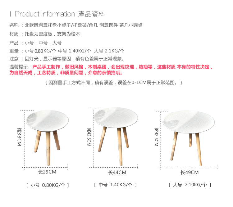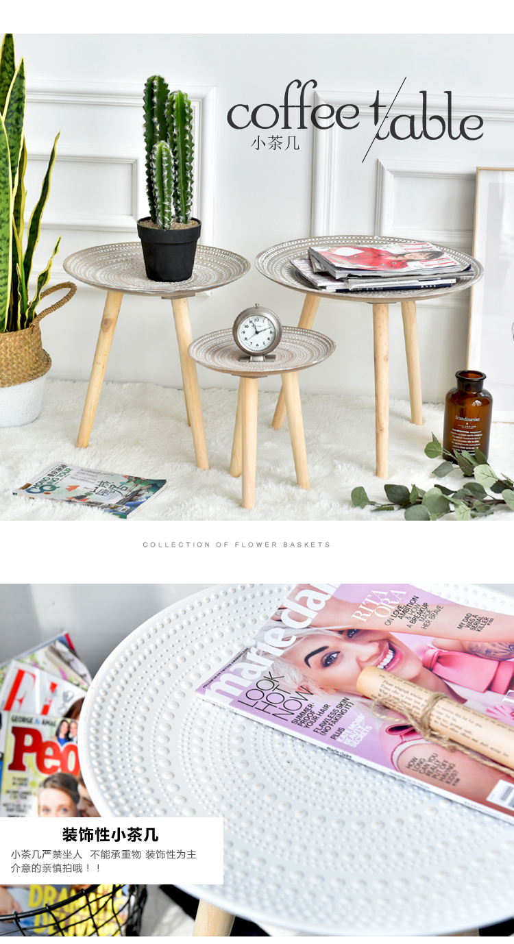 北歐簡約文藝創意家居客廳床頭桌組合裝飾小茶幾小邊桌圓桌托盤架1入