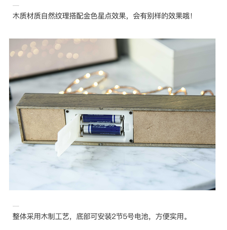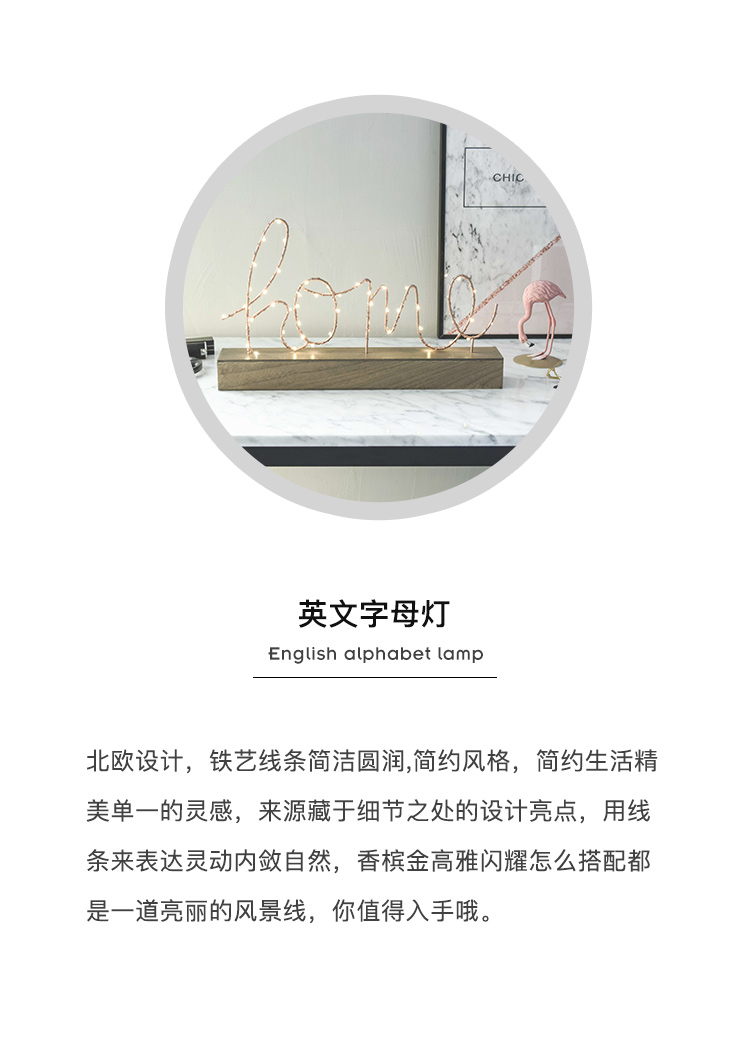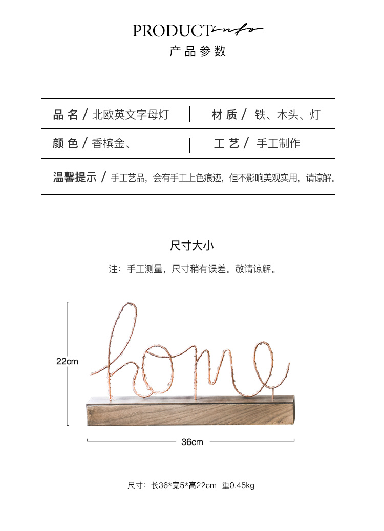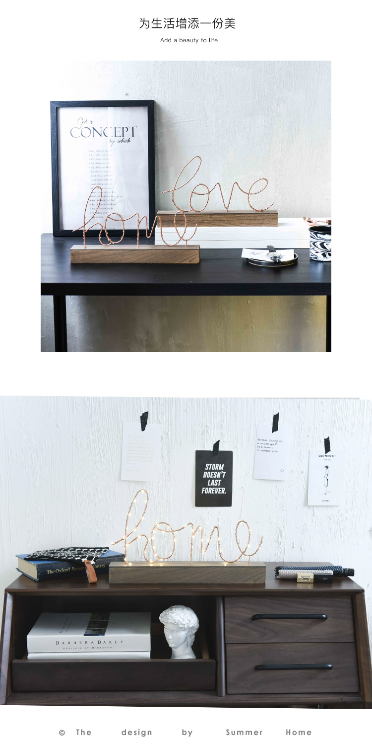 北歐INS創意家居擺件臥室床頭鐵藝木底字母小夜燈圣誕節生日禮物1入