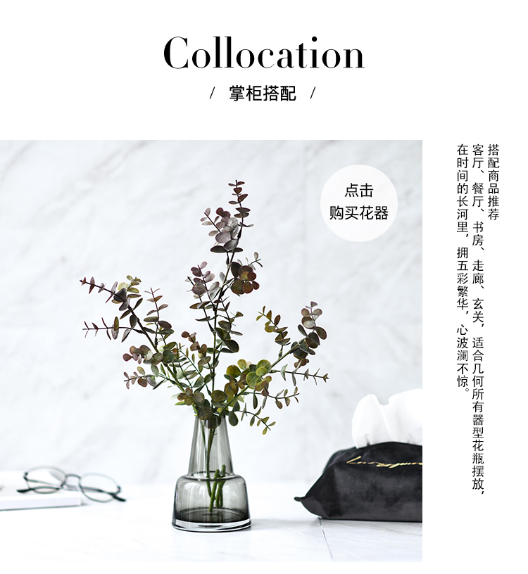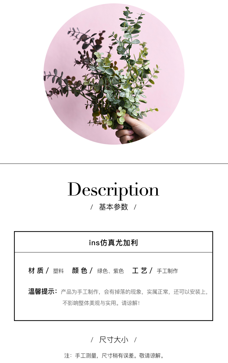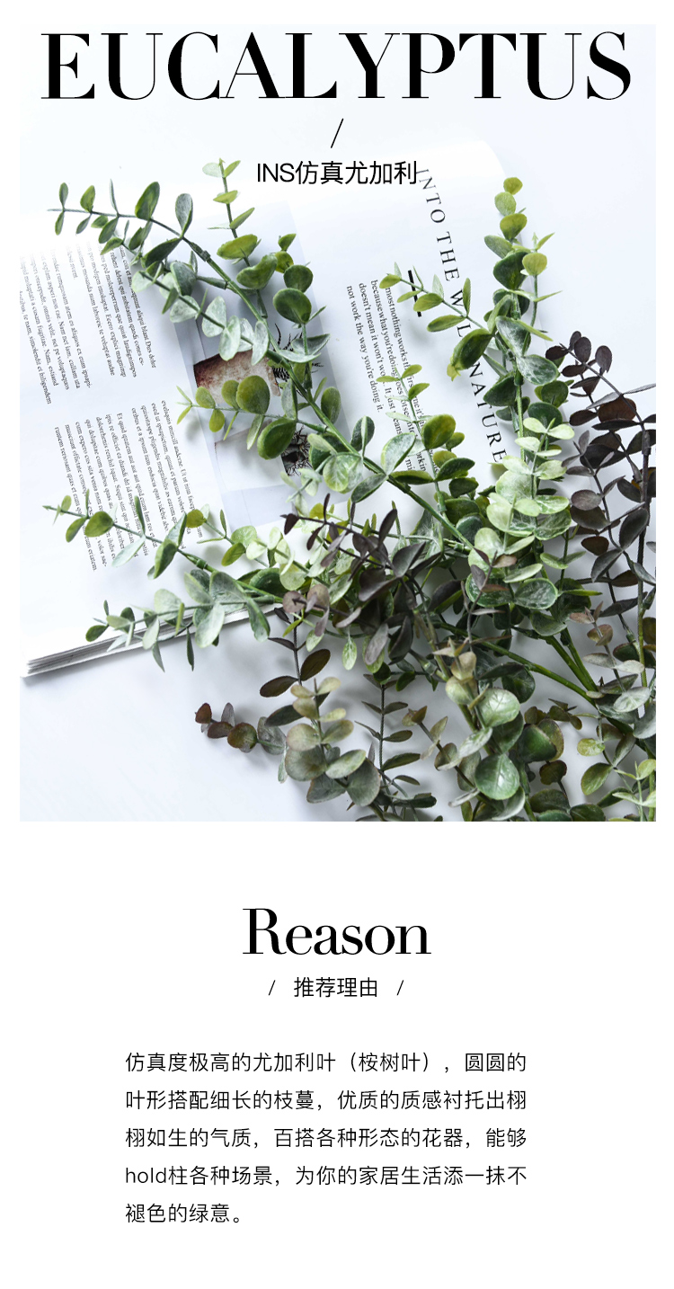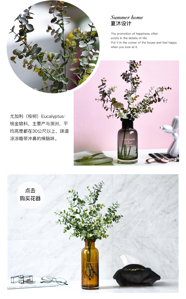 北歐仿真手感植物綠植 尤加利葉 花瓶客廳室內裝飾餐桌花藝擺件1入