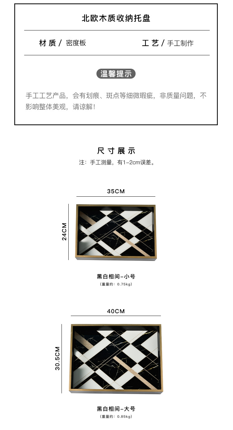 北歐輕奢風水墨紋木質托盤家用桌面茶幾收納置物盤水杯茶盤擺件1入