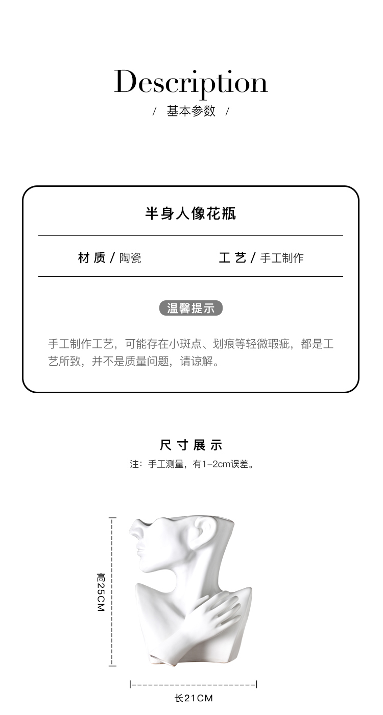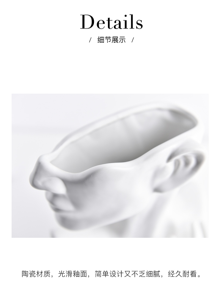 現代簡約半身人像陶瓷花盆室內花器白色人臉水培花器家居創意擺件1入