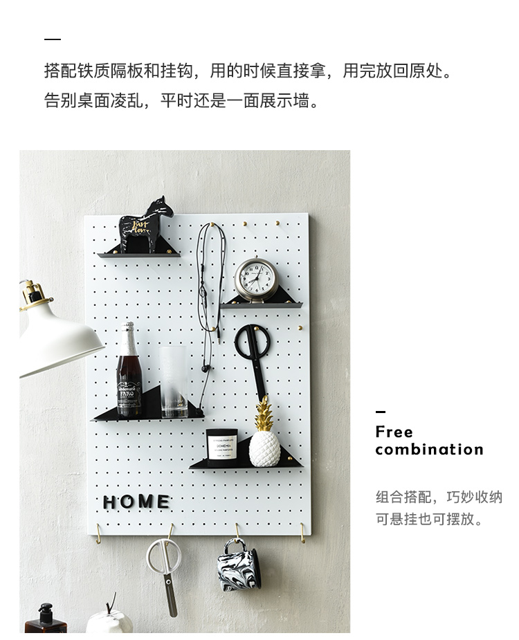 INS文藝金屬留言洞洞板北歐客廳臥室壁飾壁掛墻上收納置物架 可擺1入
