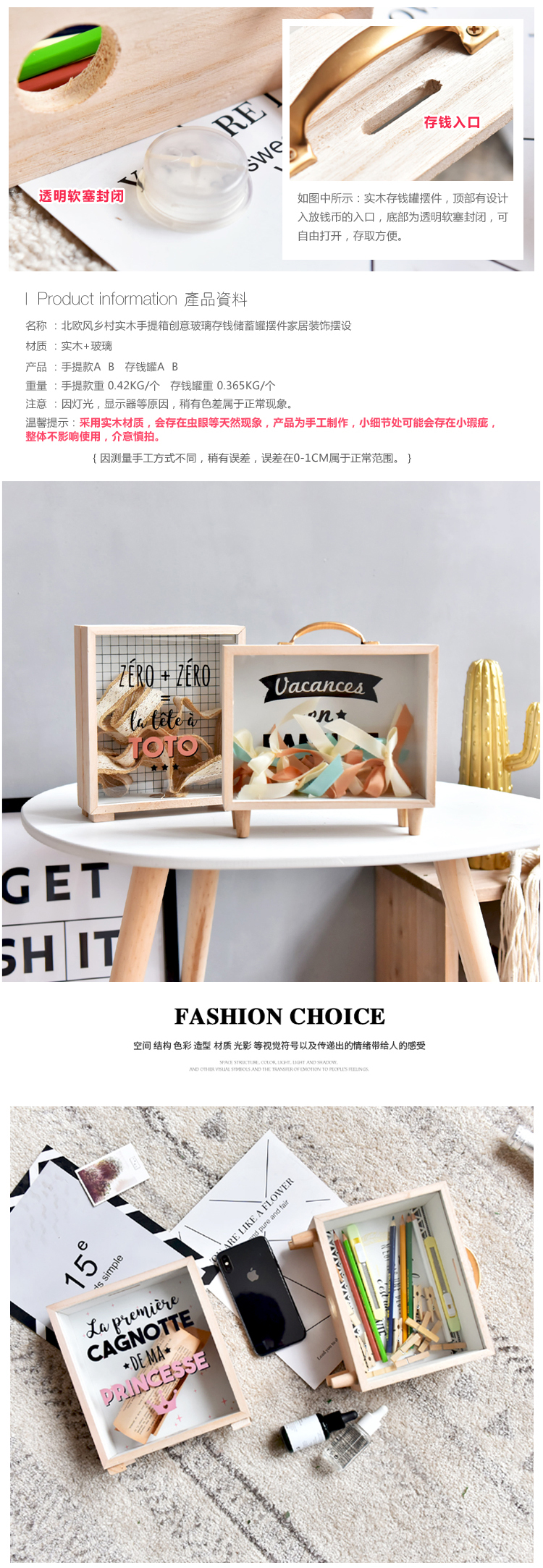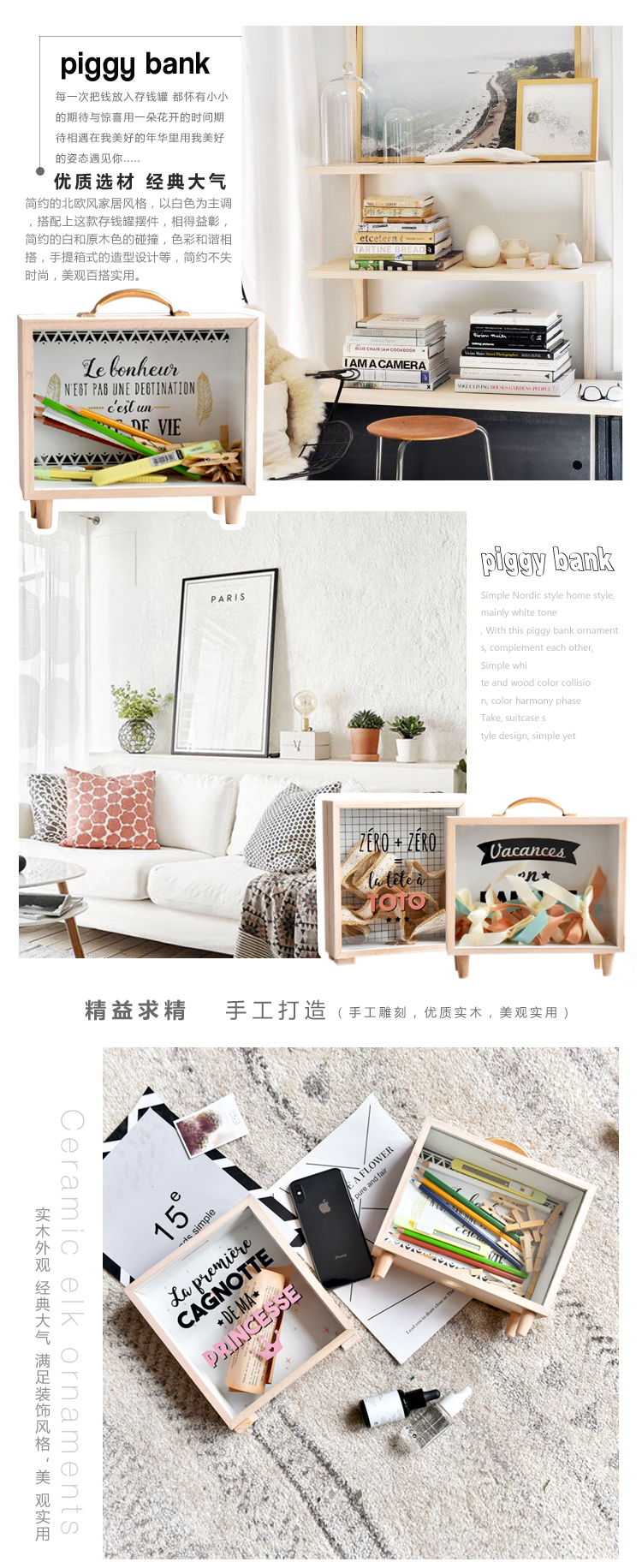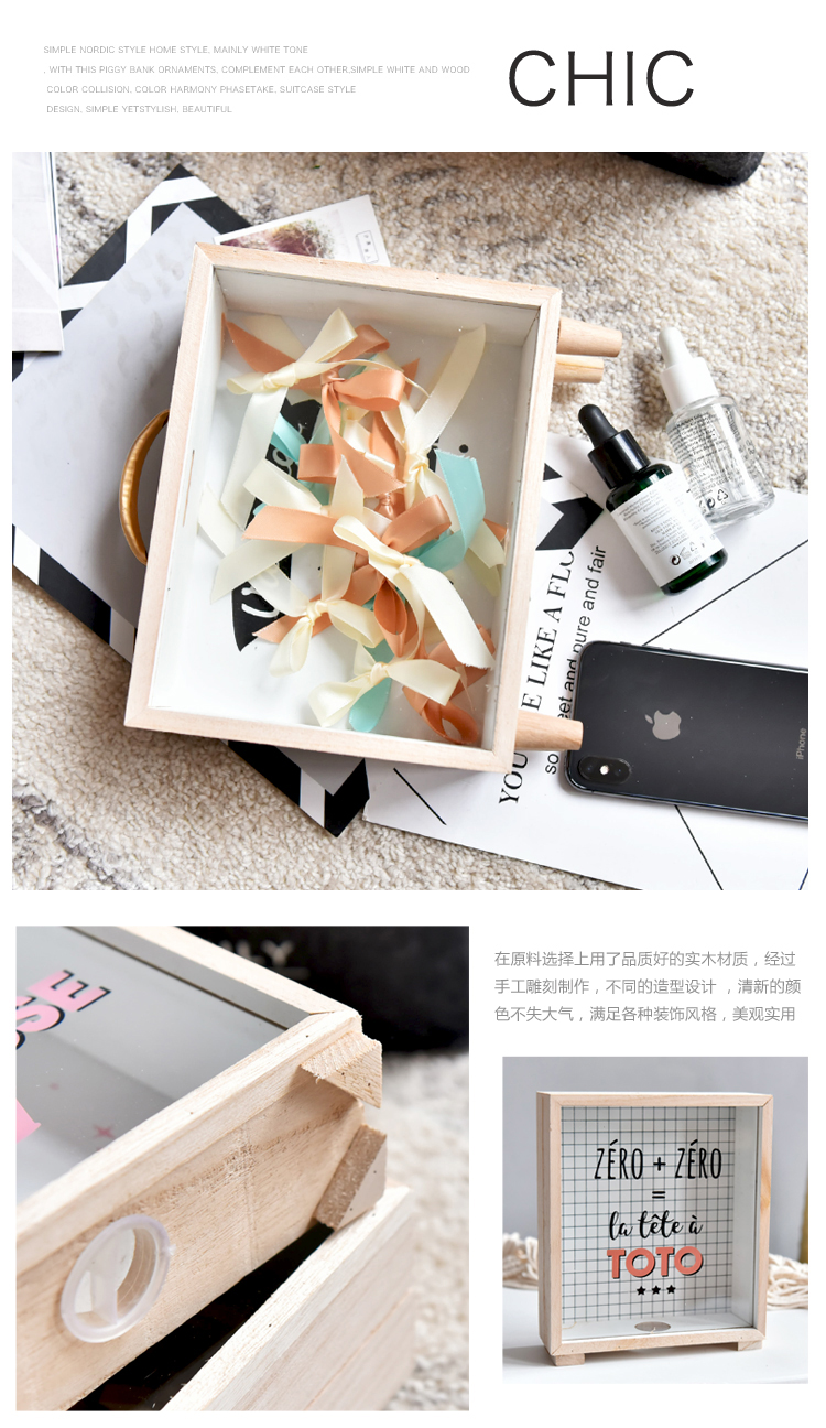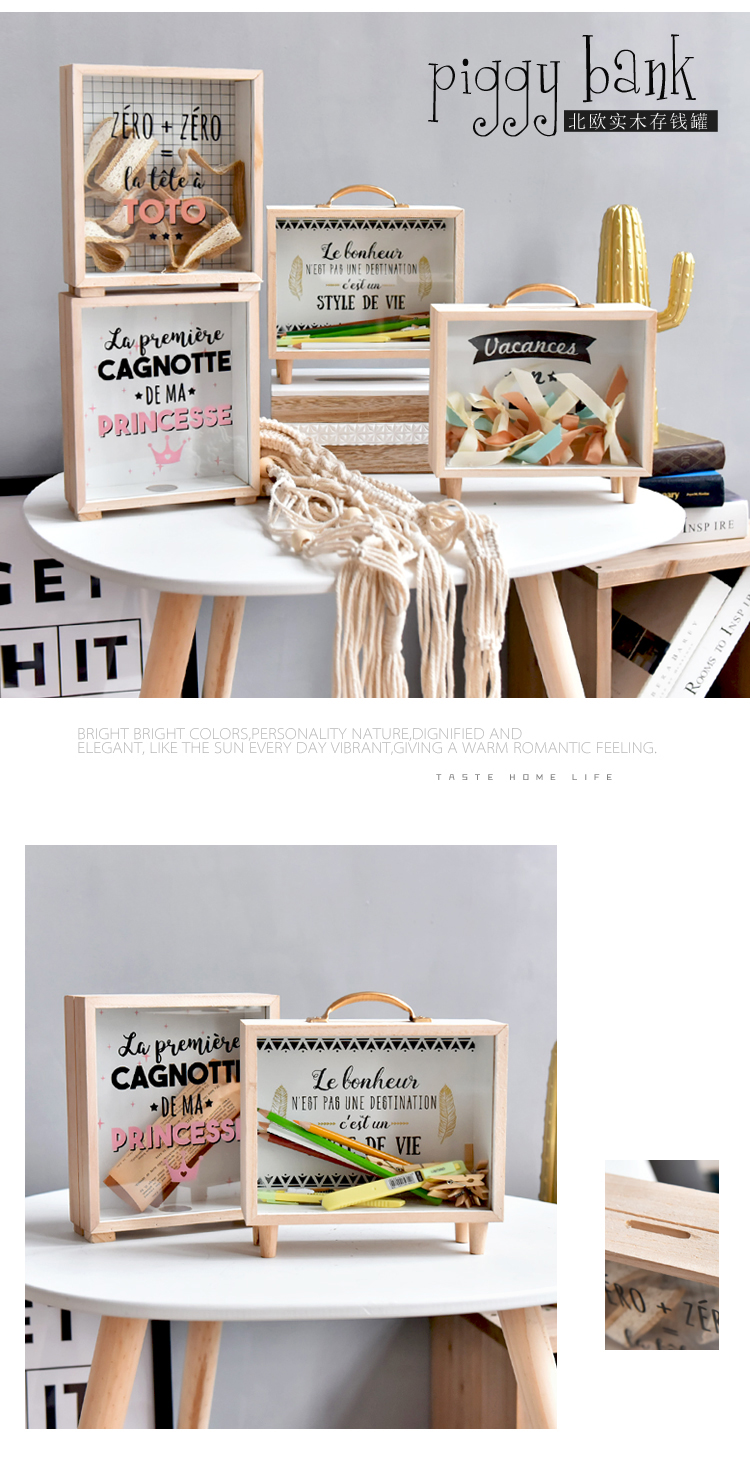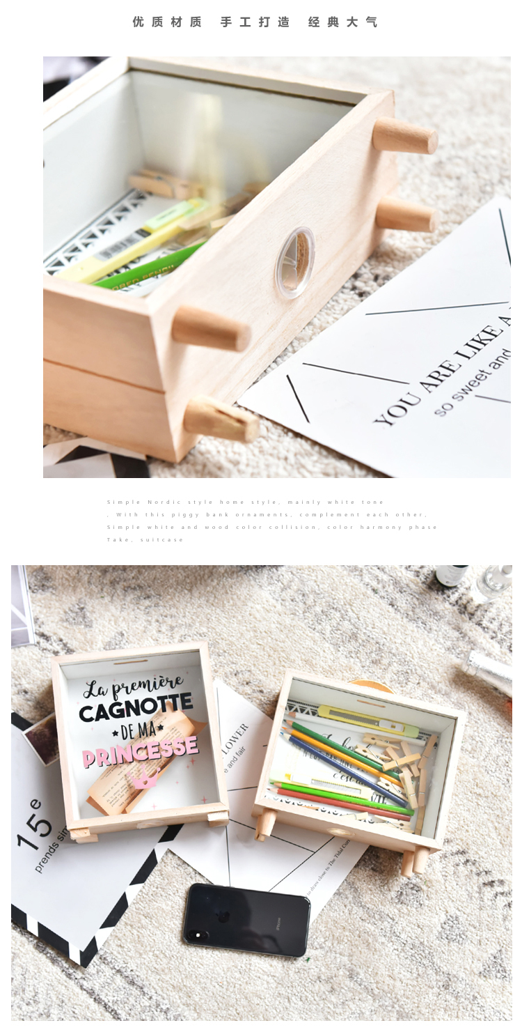 北歐ins創意木質文藝清新存錢罐臥室桌面裝飾擺件雜物收納盒道具1入