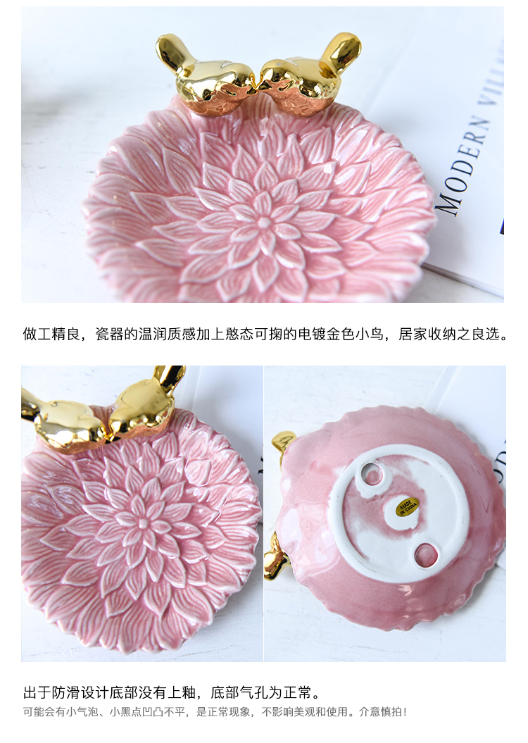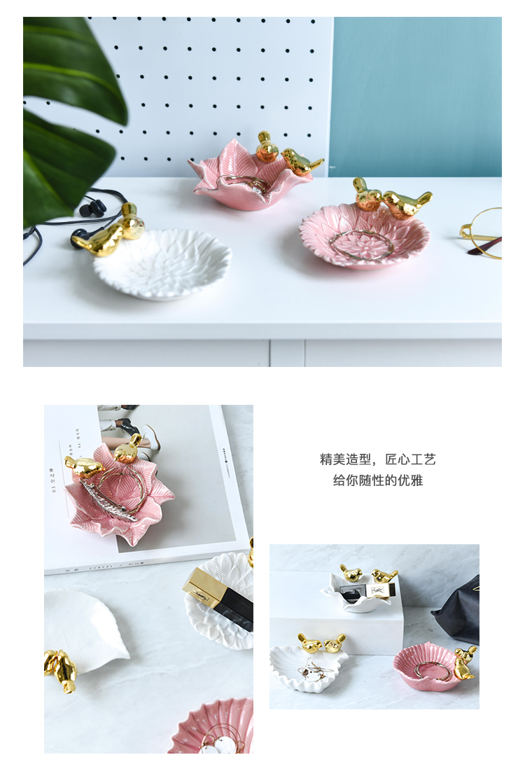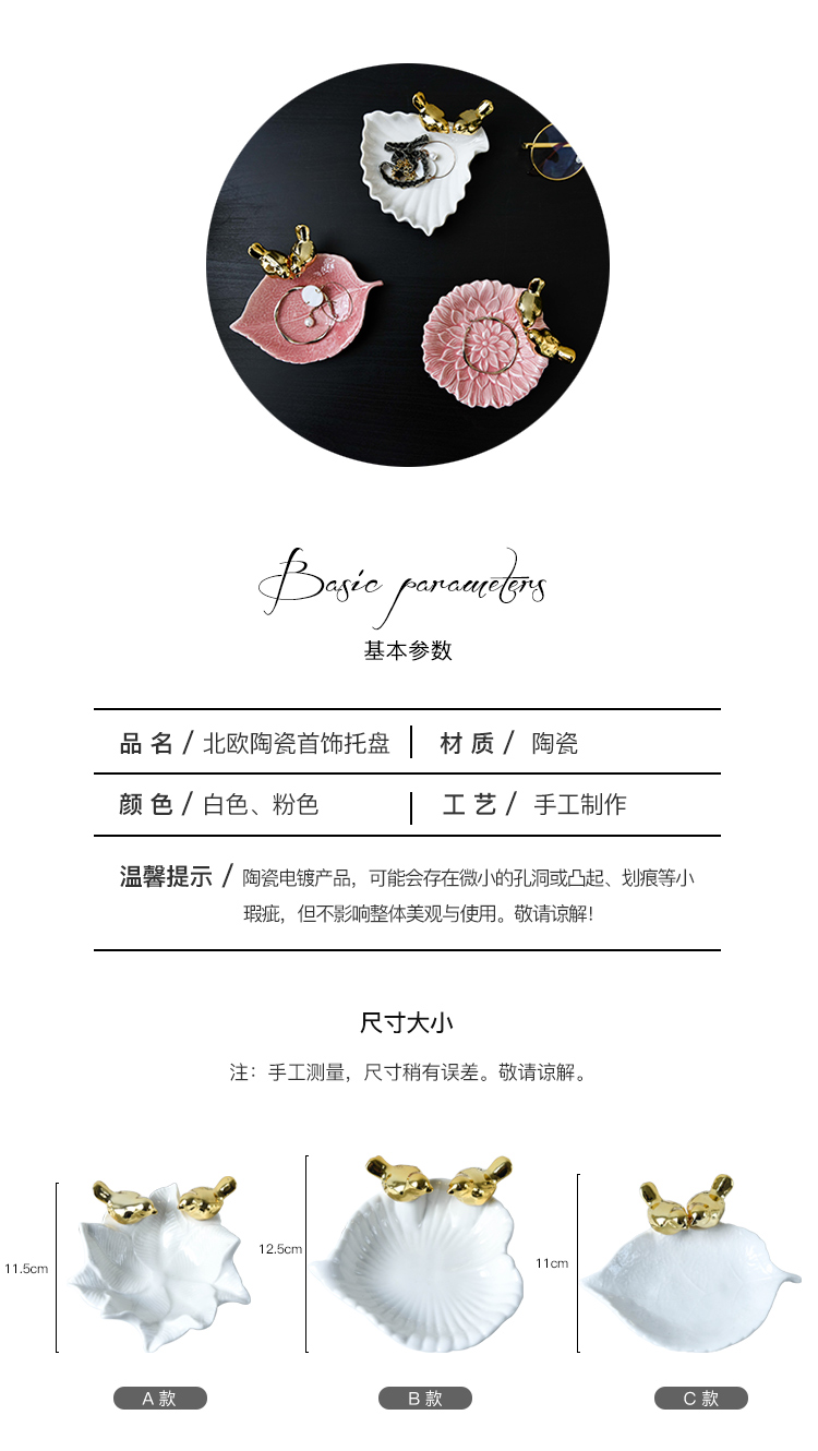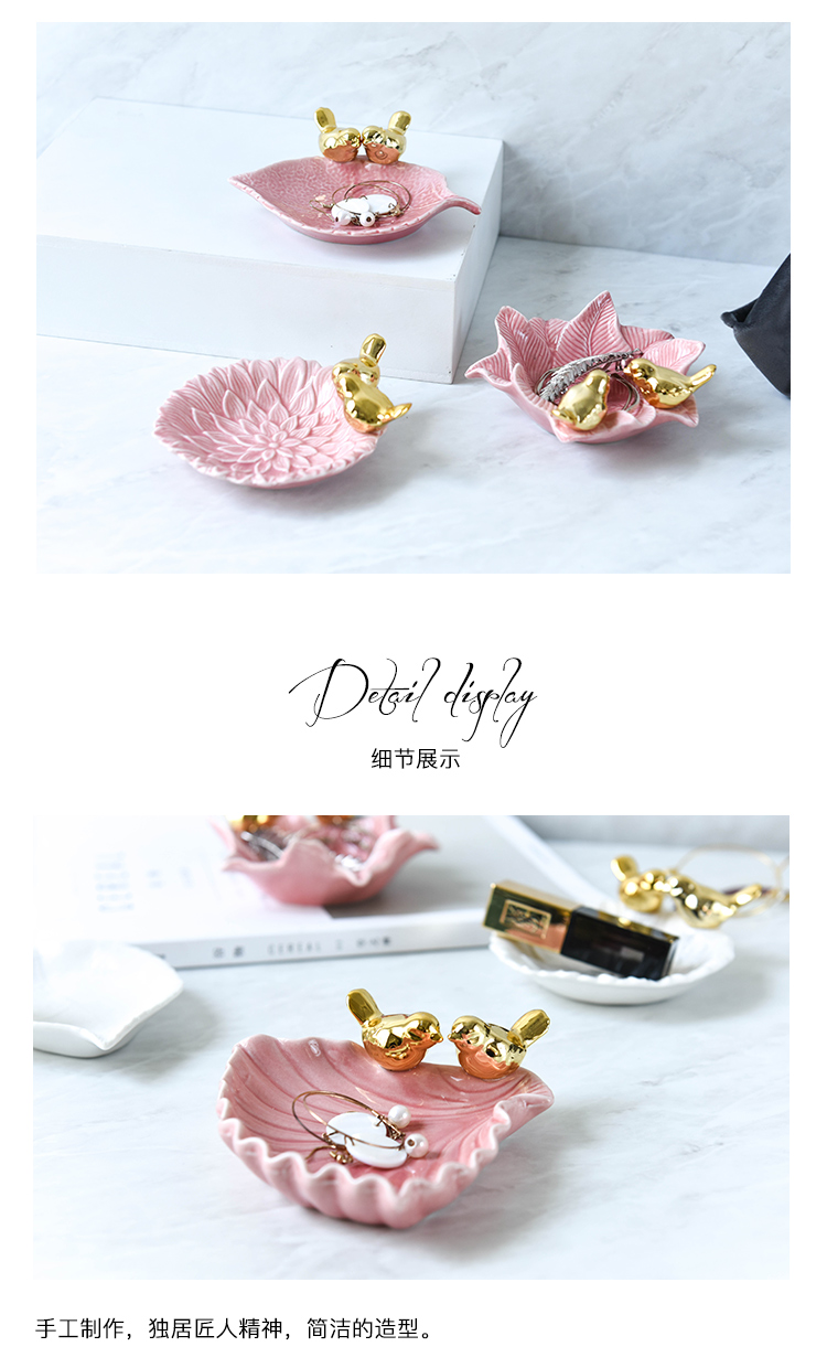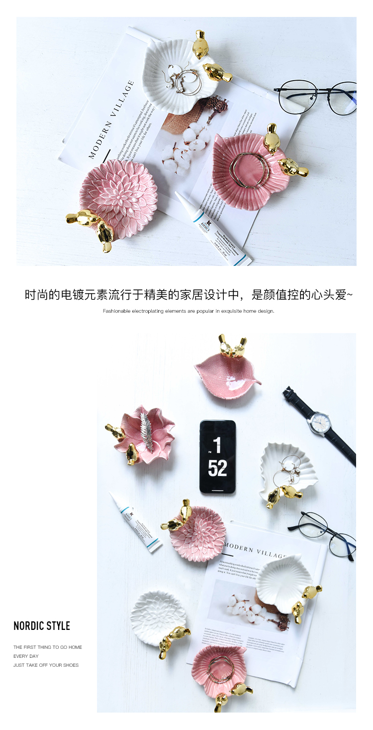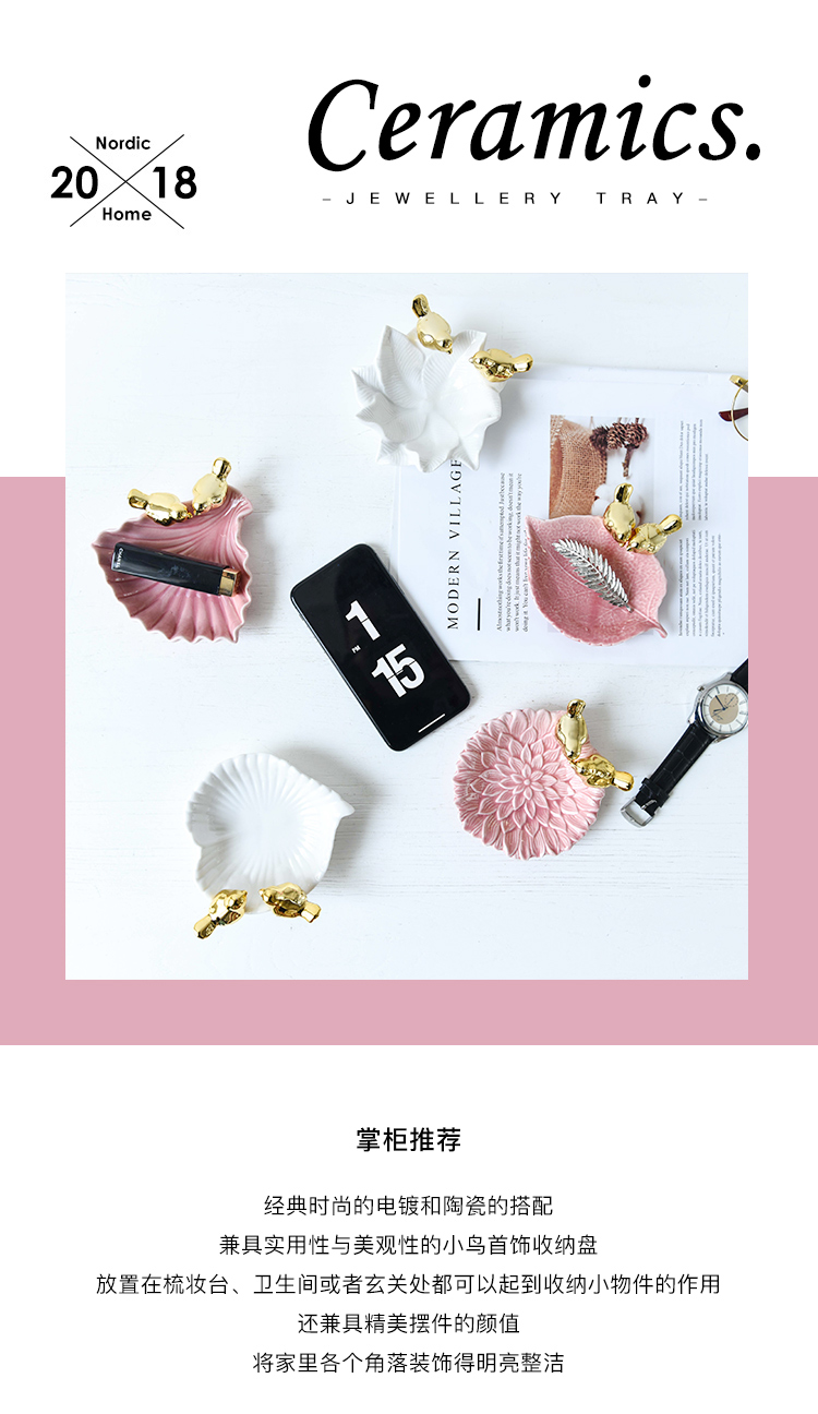 北歐INS簡約粉色陶瓷首飾盤梳妝臺收納珠寶托盤創意煙缸衛浴擺件1入