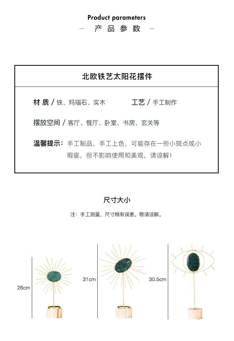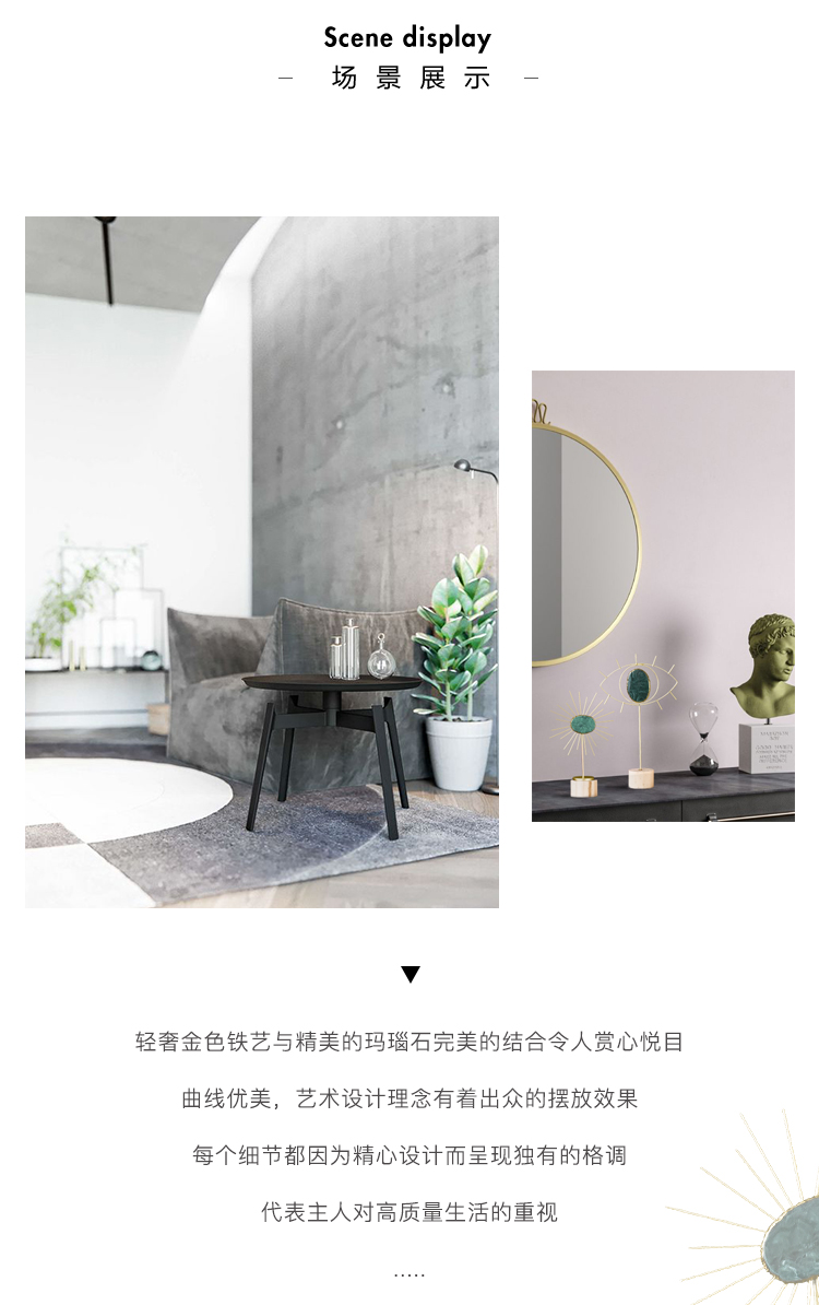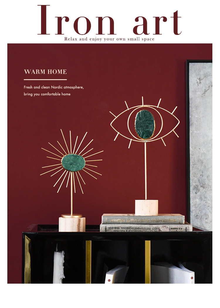 創意金屬輕奢瑪瑙石設計師樣板間客廳櫥窗裝飾品擺設家居工藝擺件1入
