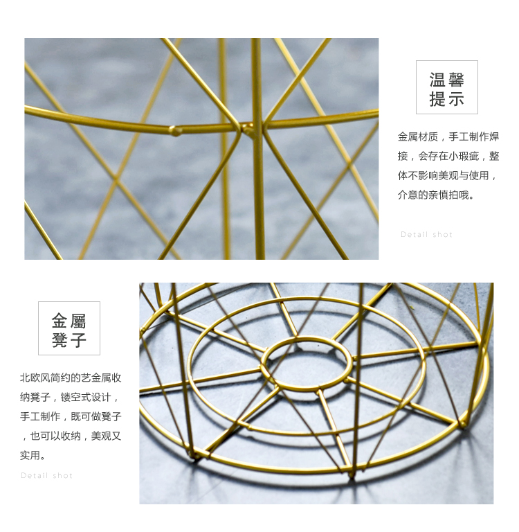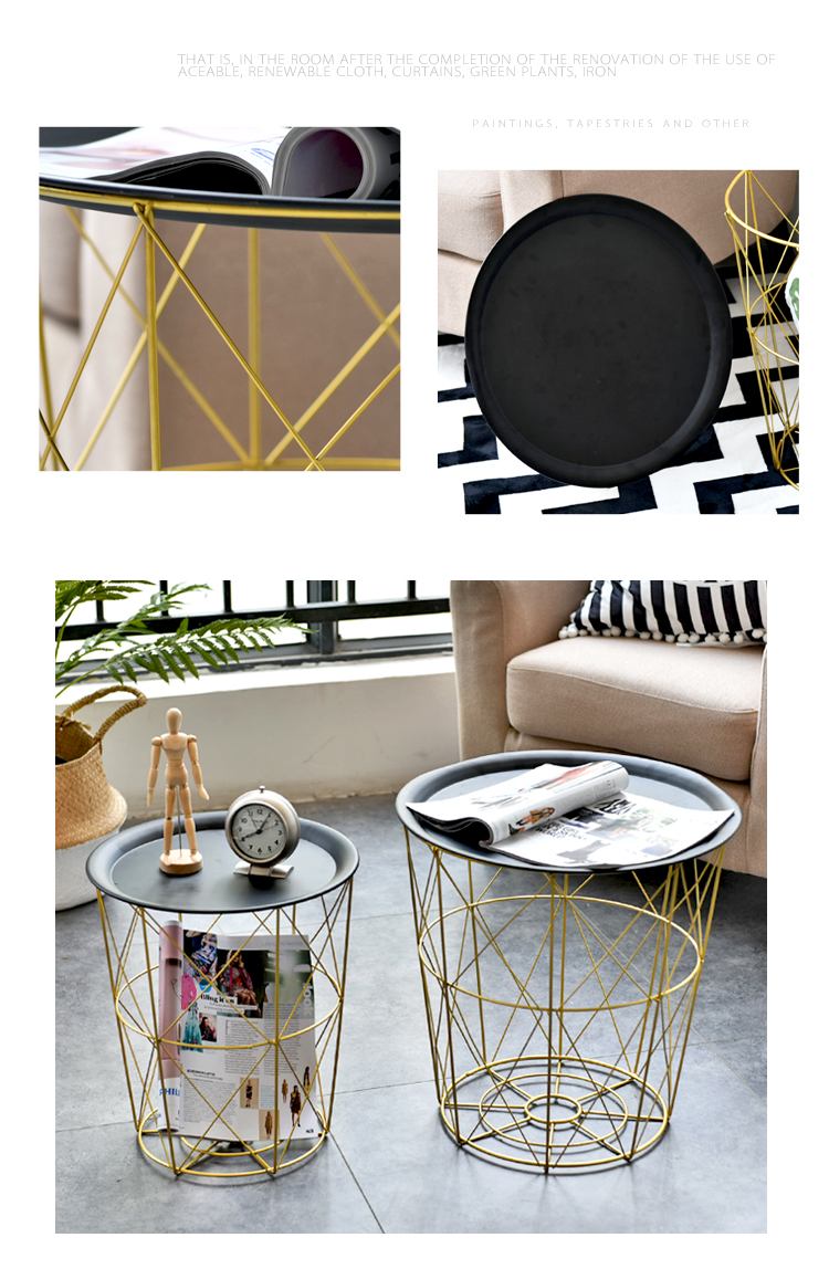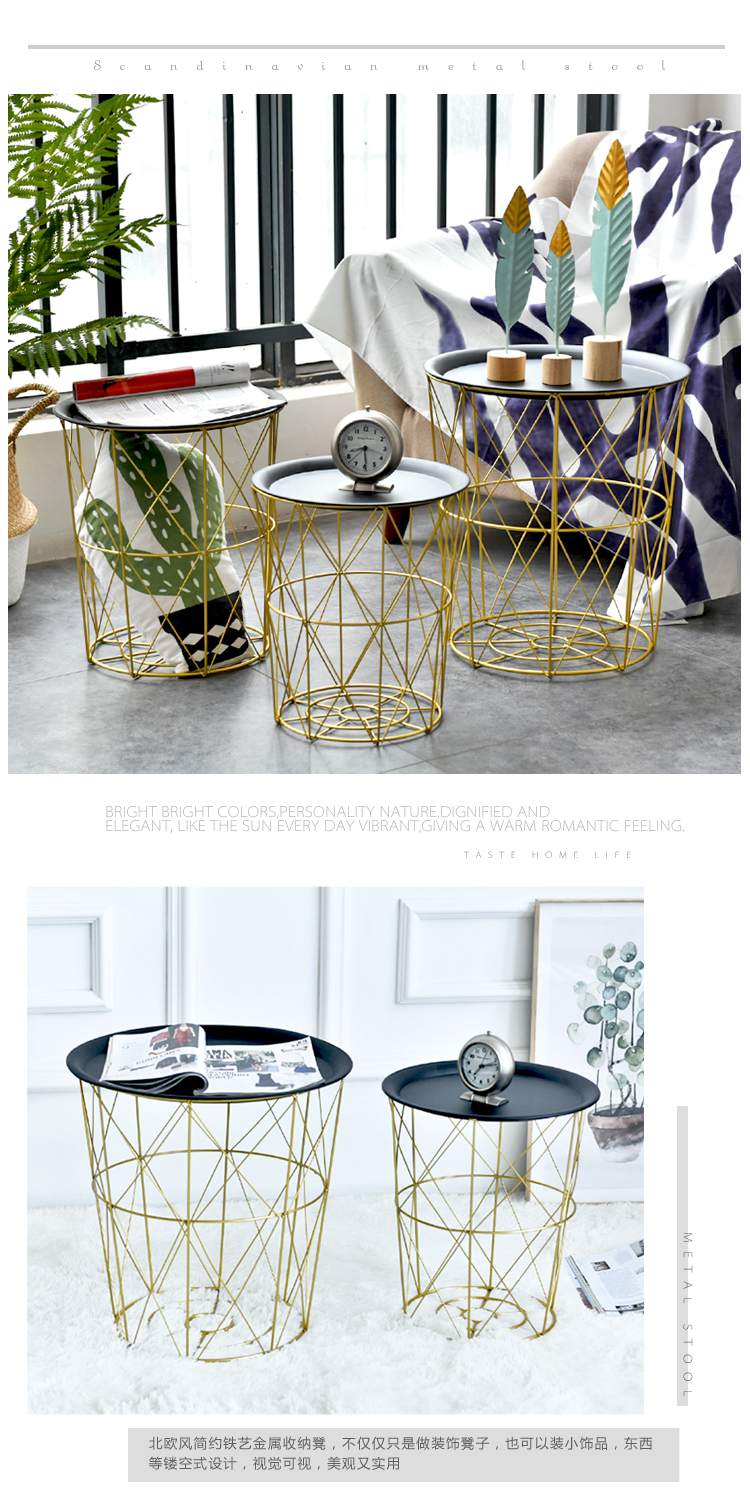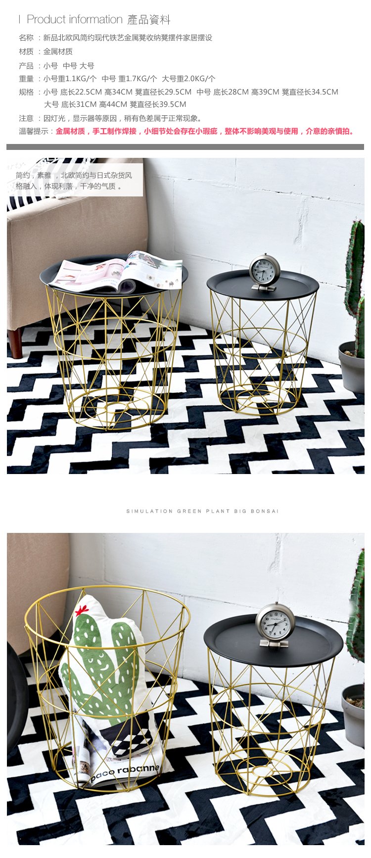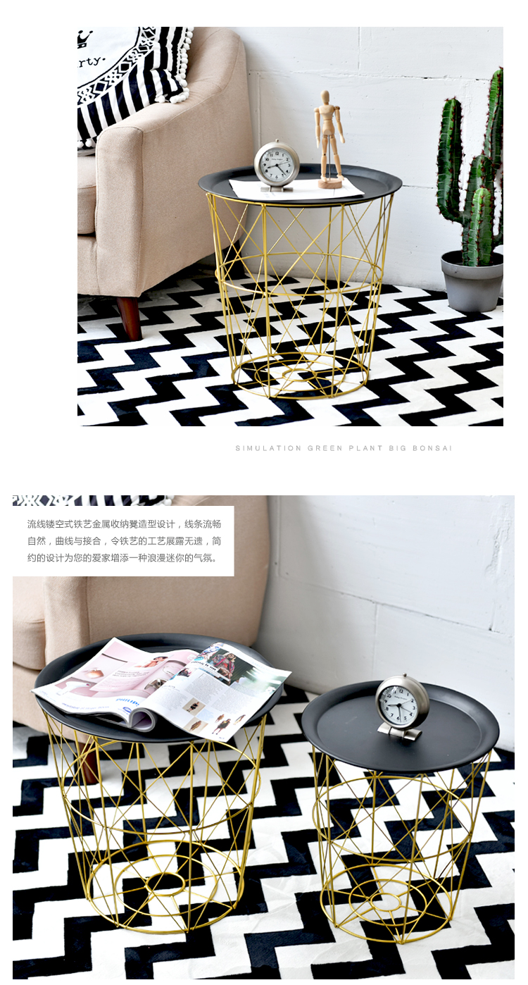 ins北歐鐵藝幾何金屬現代簡約客廳臥室小茶邊幾圓桌邊幾儲物籃1入