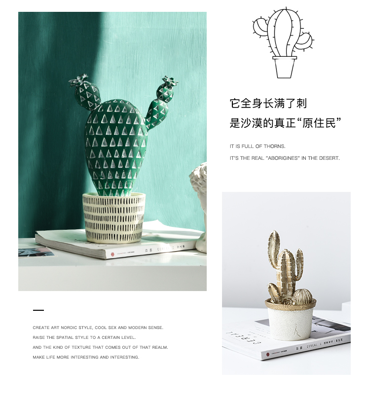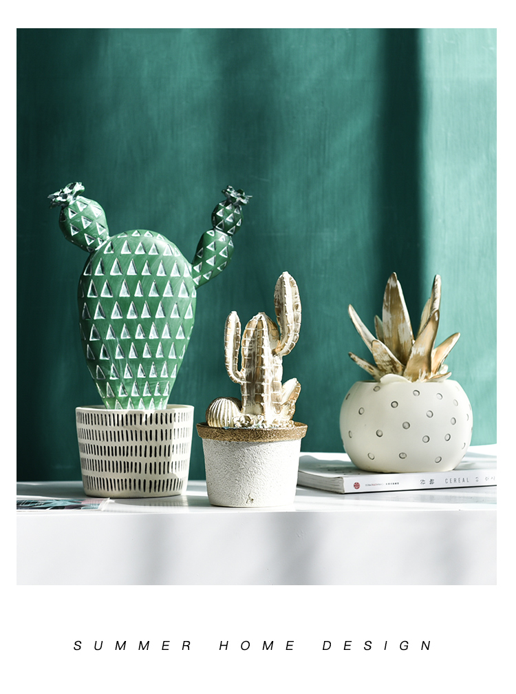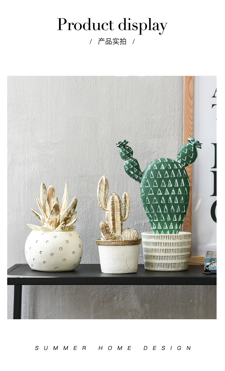 創意北歐仙人掌盆栽擺件樣板間家居客廳電視機柜擺設裝飾1入