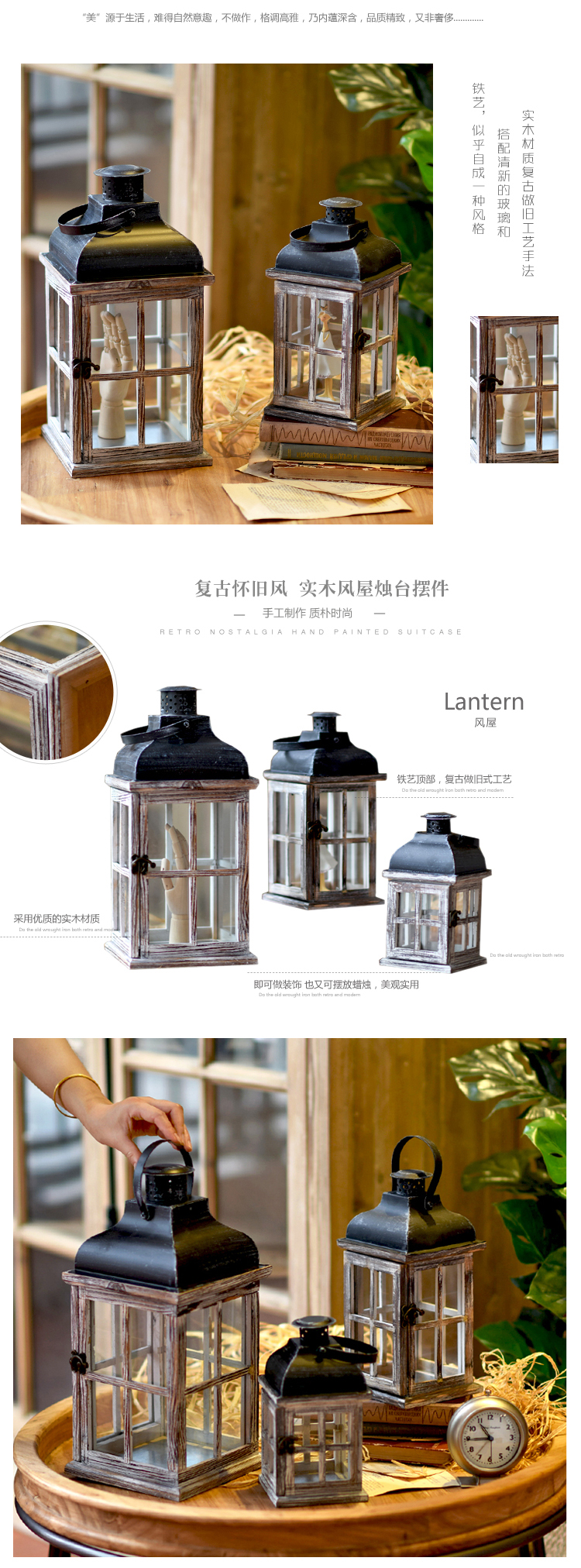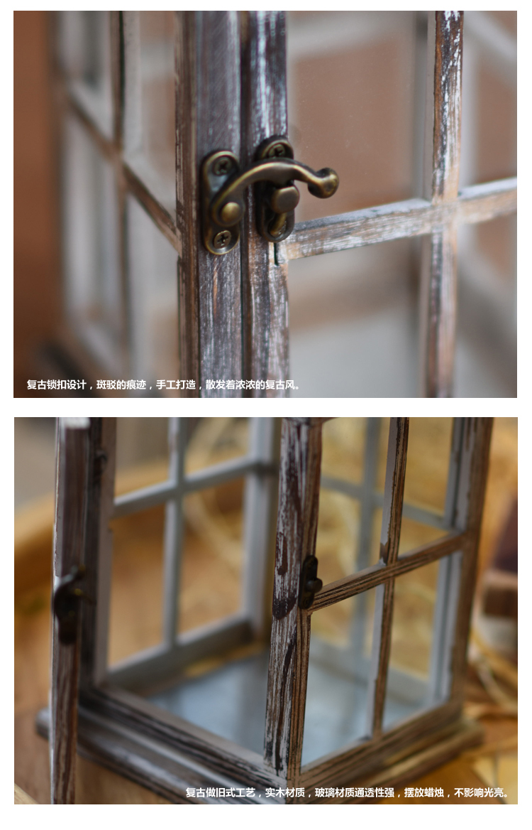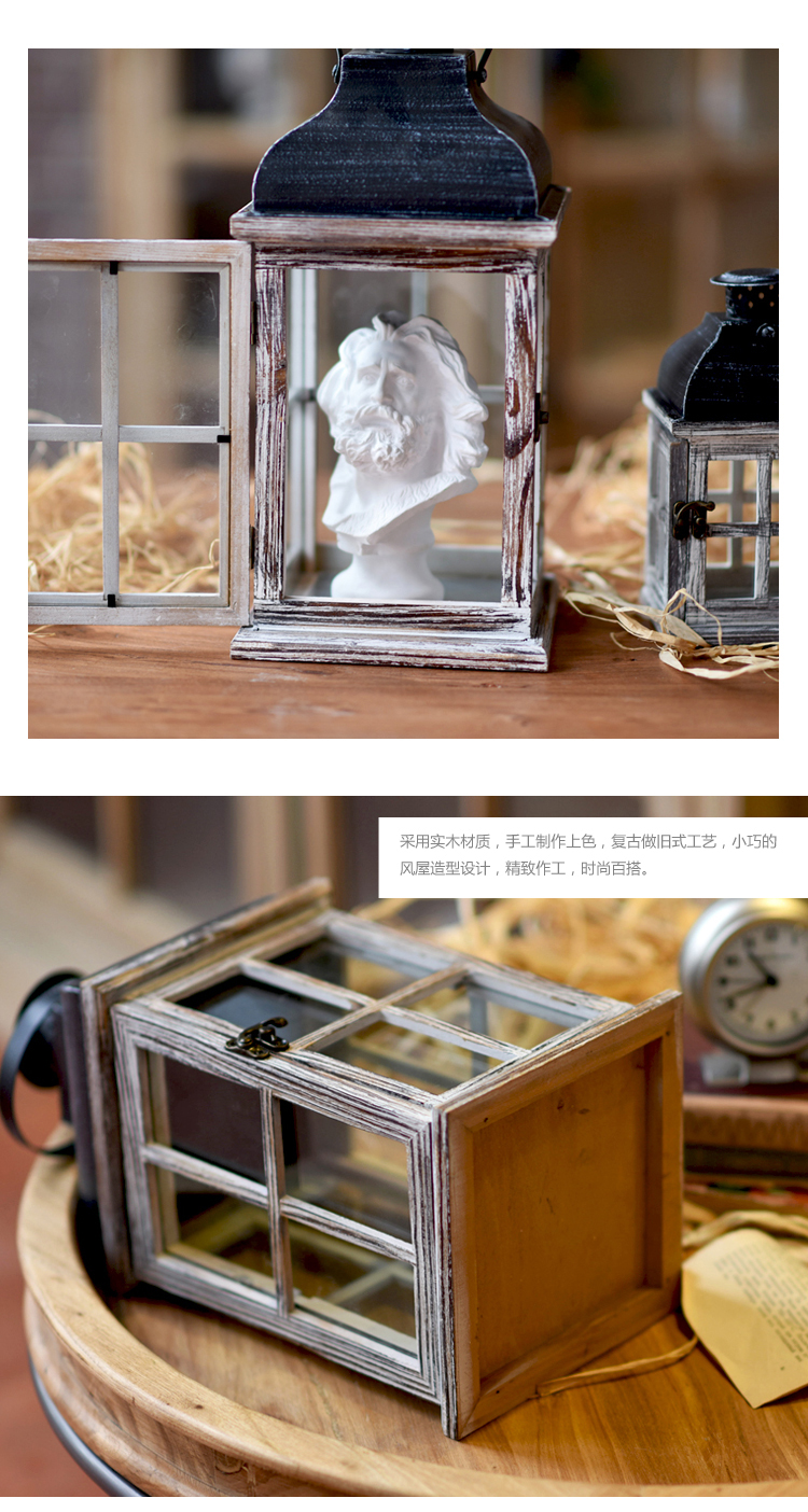 北歐復古實木風屋燭臺可儲物收納桌面小風燈酒吧店鋪客廳裝飾擺件1入