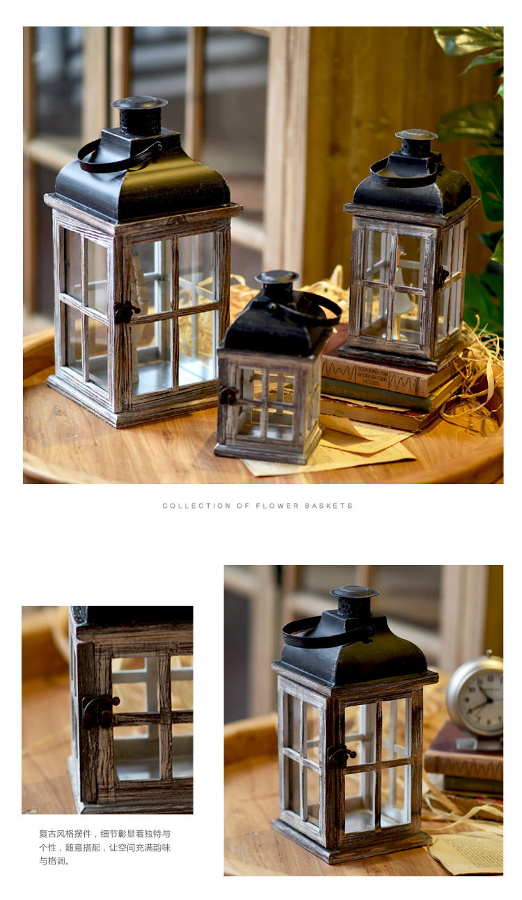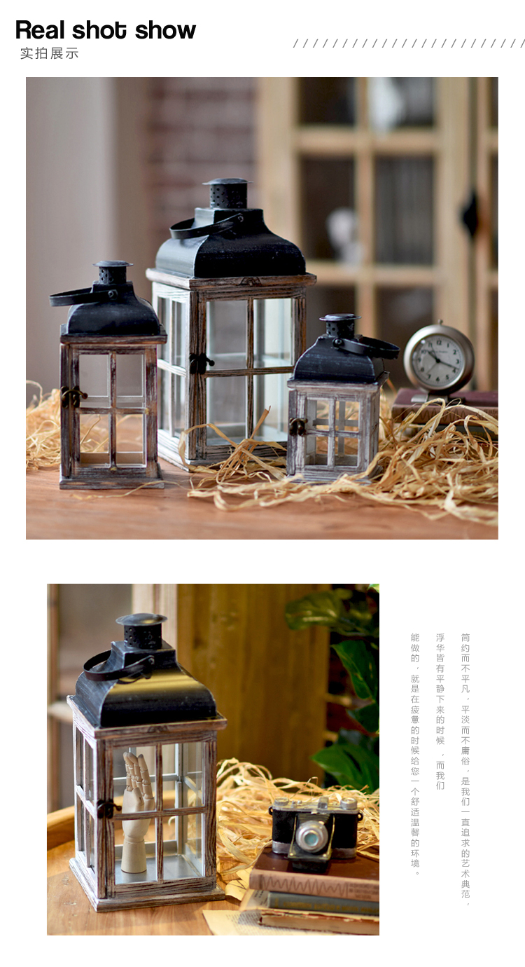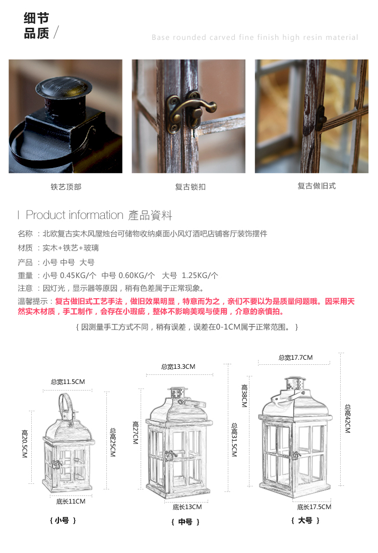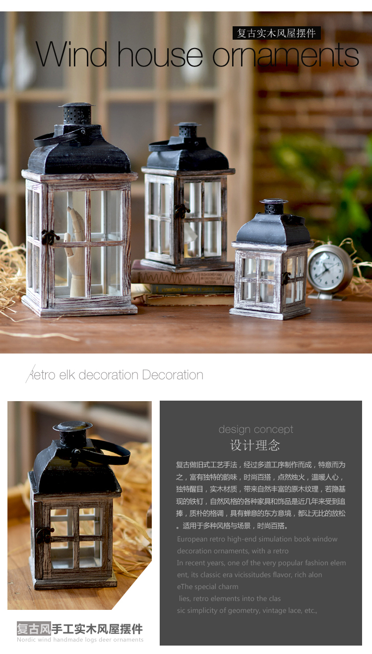 北歐復古實木風屋燭臺可儲物收納桌面小風燈酒吧店鋪客廳裝飾擺件1入