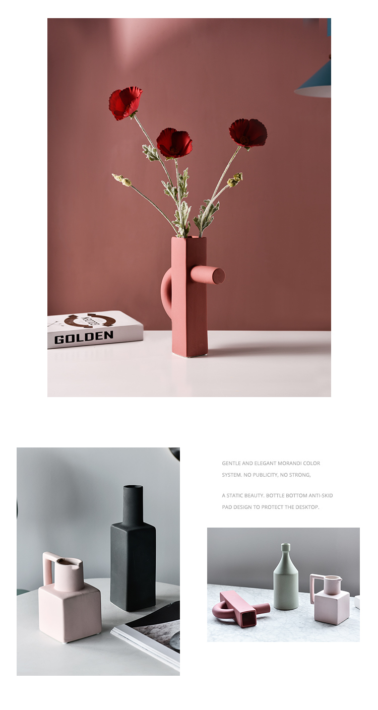 北歐幾何不規則莫蘭迪花瓶客廳插花花瓶家居電視柜樣板間裝飾擺件1入