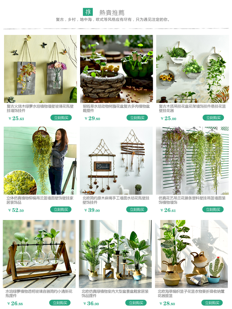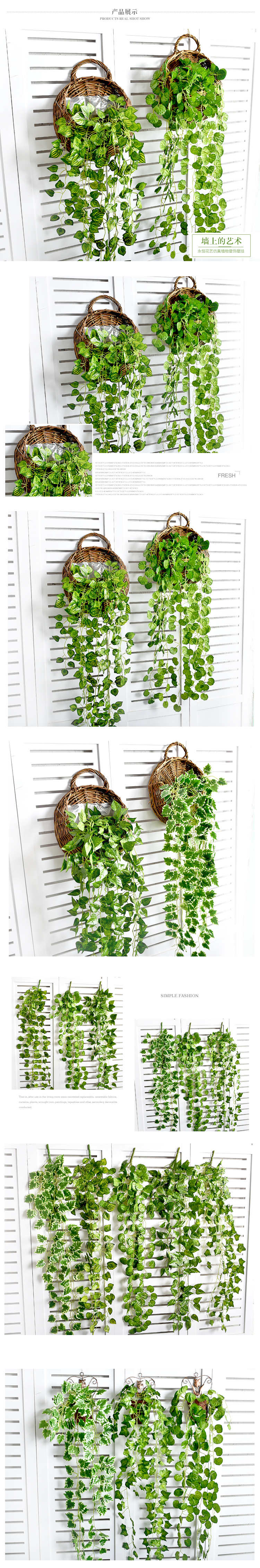 創意仿真藤條植物綠蘿假花客廳壁飾個性墻上墻壁掛店鋪酒吧裝飾品1入