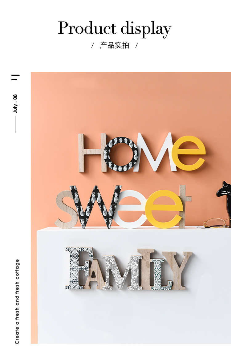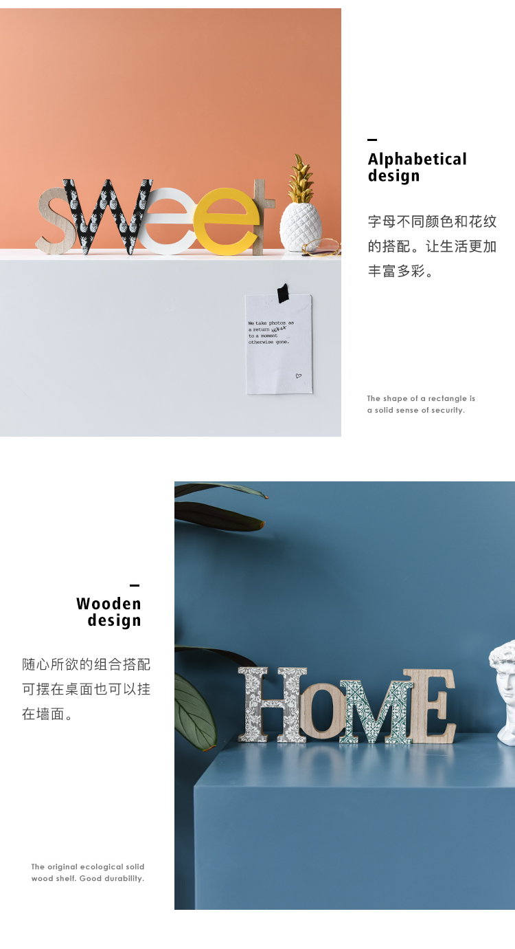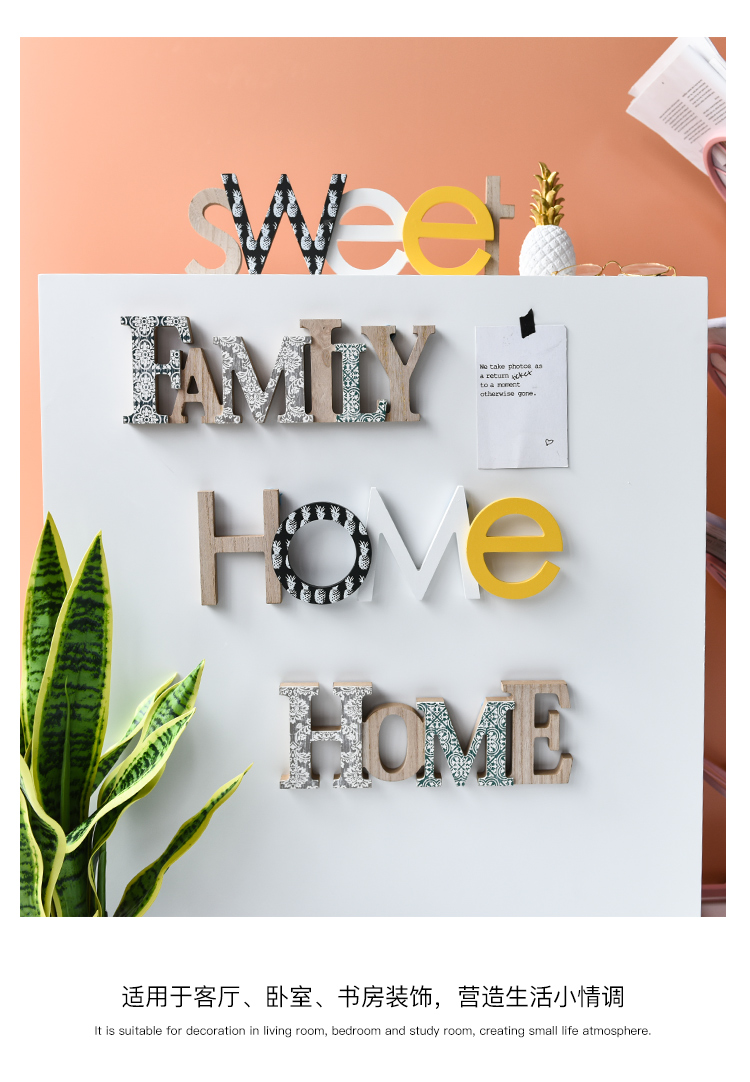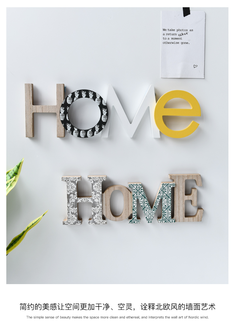北歐ins創意文藝清新木質英文字母HOME櫥窗電視機柜裝飾擺件壁掛1入