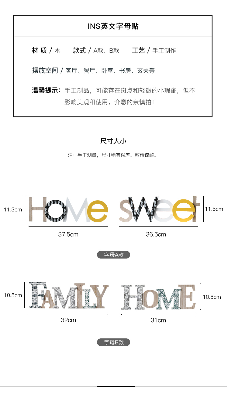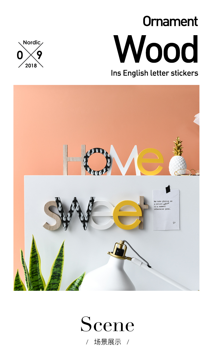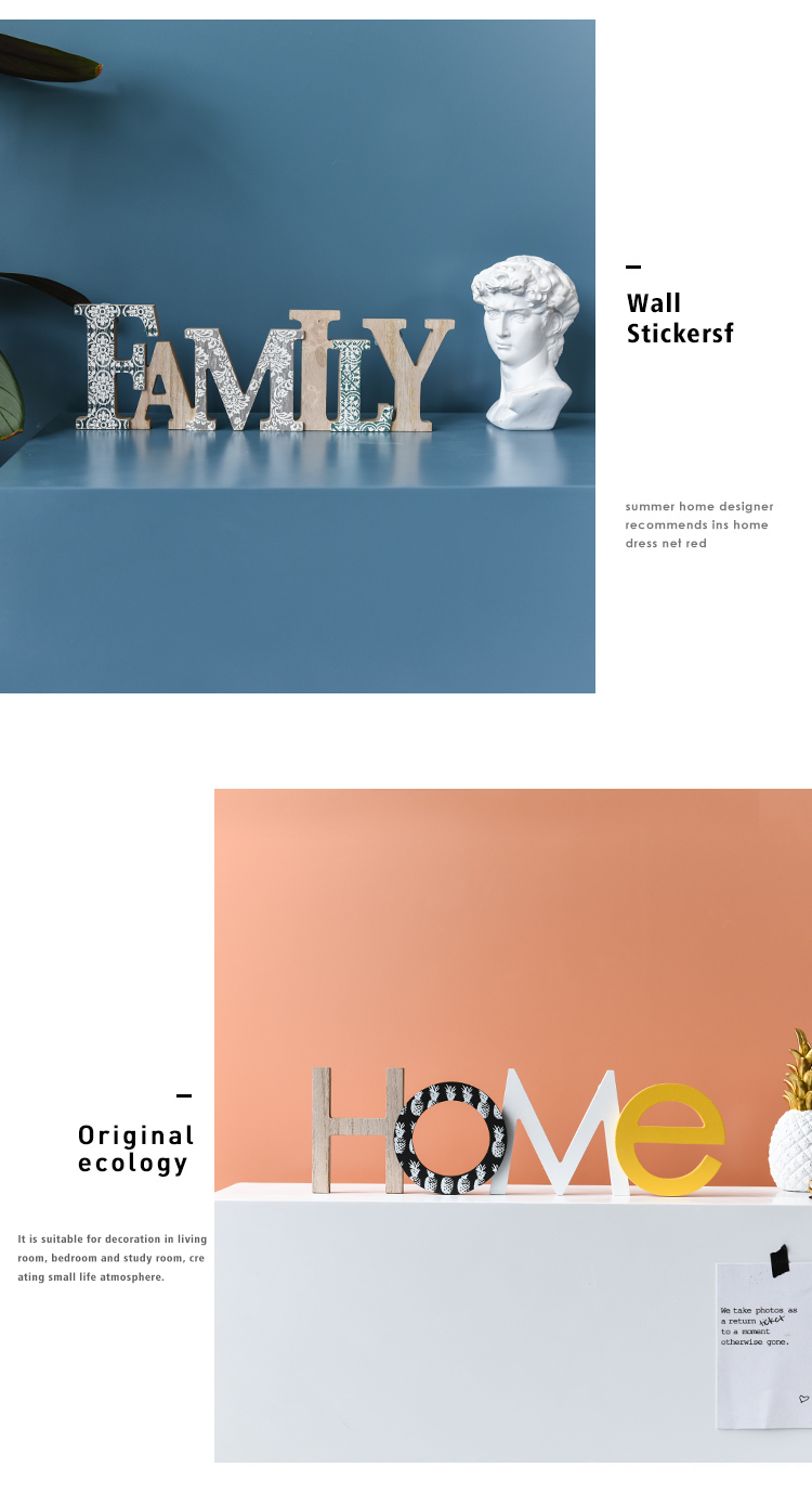 北歐ins創意文藝清新木質英文字母HOME櫥窗電視機柜裝飾擺件壁掛1入