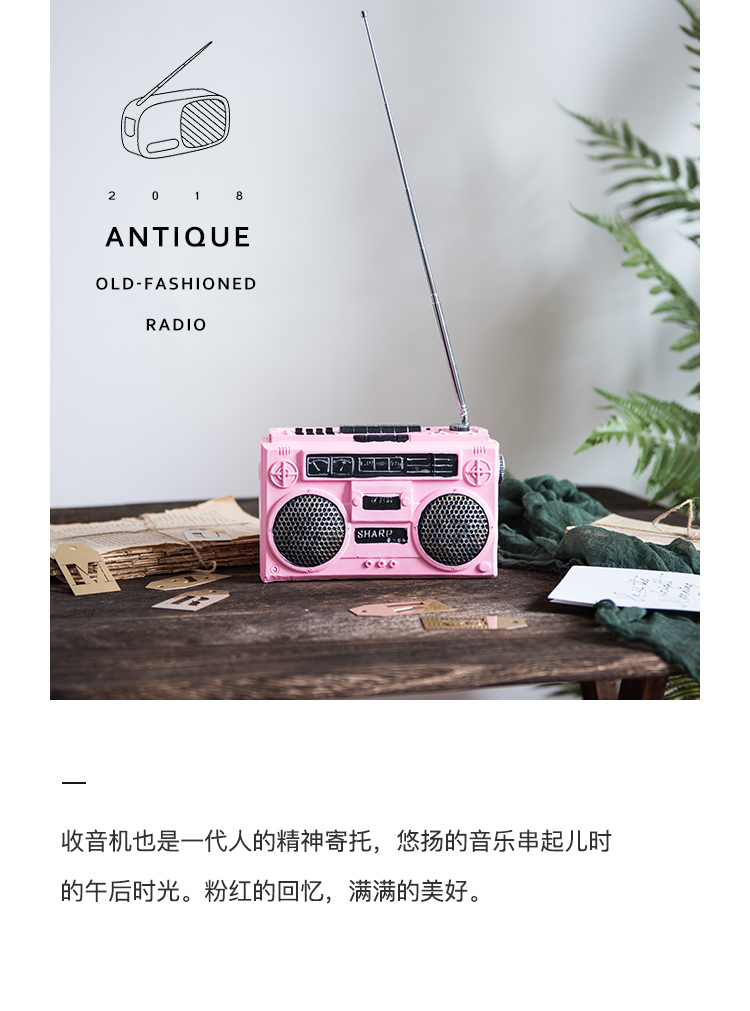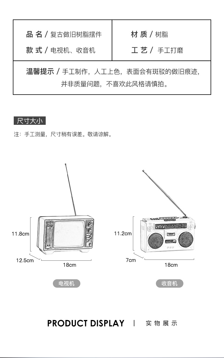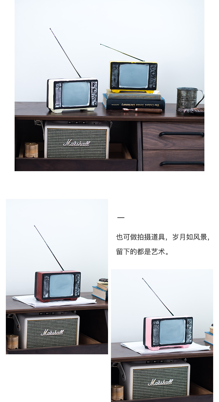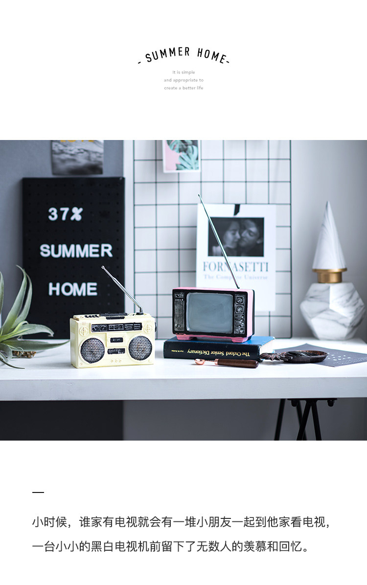 北歐創意復古老式收音機電視機擺件櫥窗客廳酒柜咖啡館裝飾品道具1入