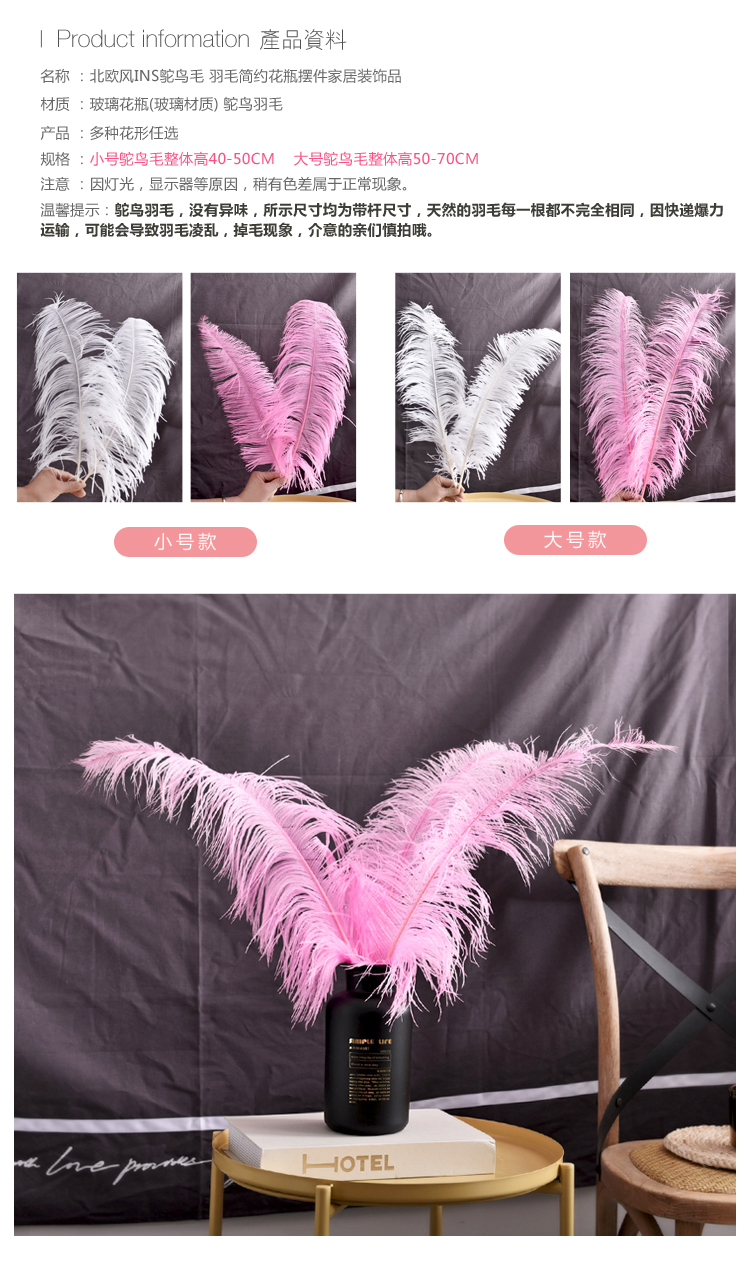 INS北歐風鴕鳥毛羽毛DIY配件個性擺設婚慶擺件臥室道具家居裝飾1入