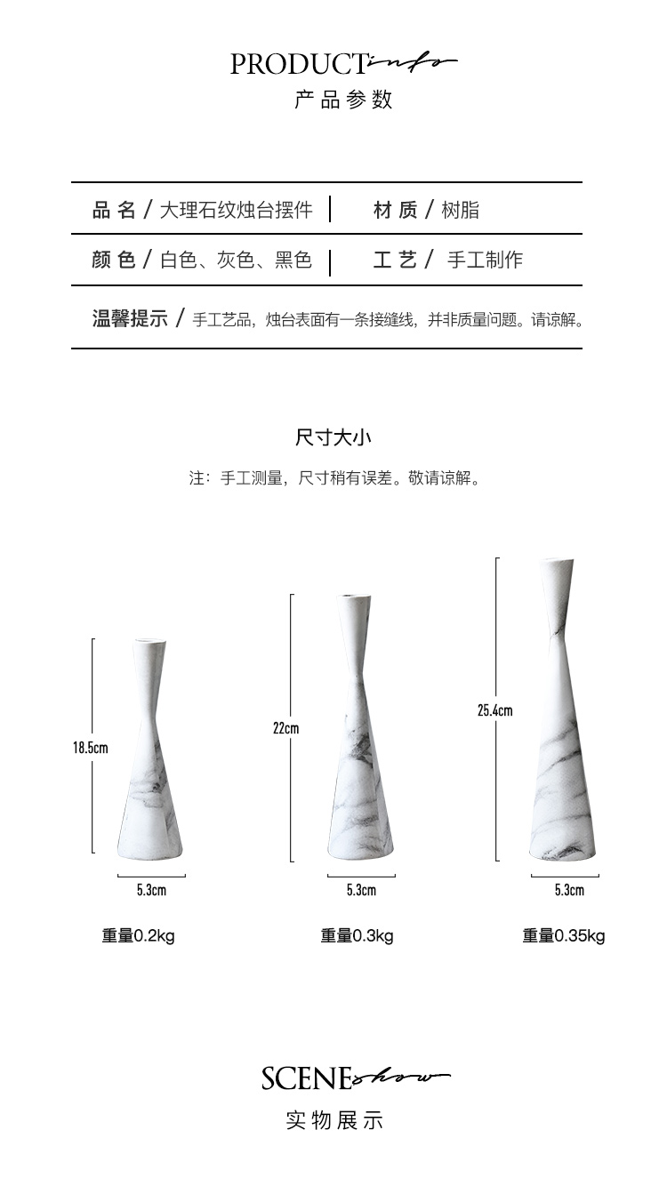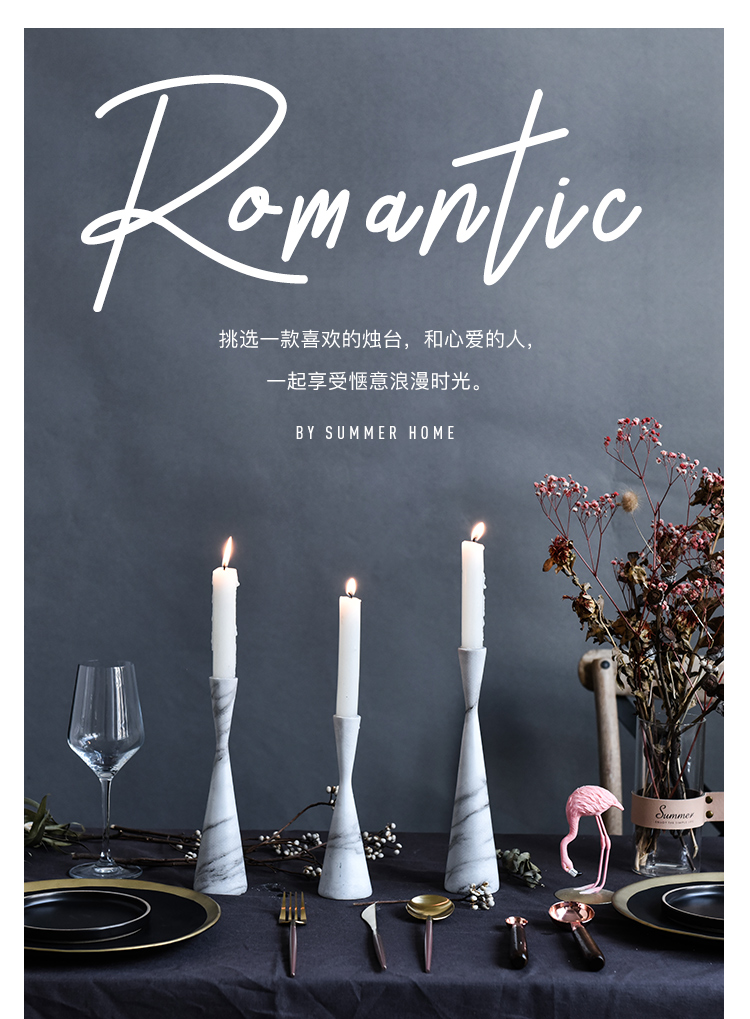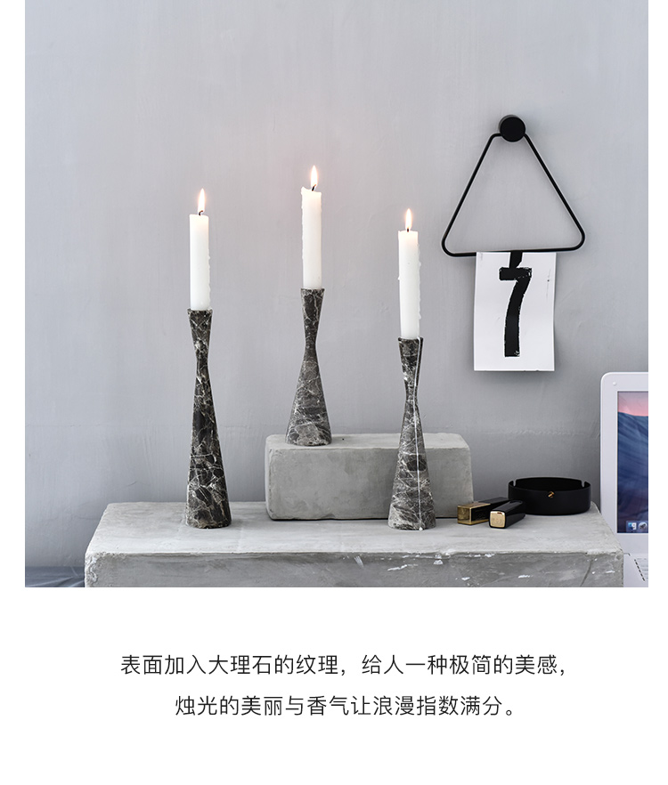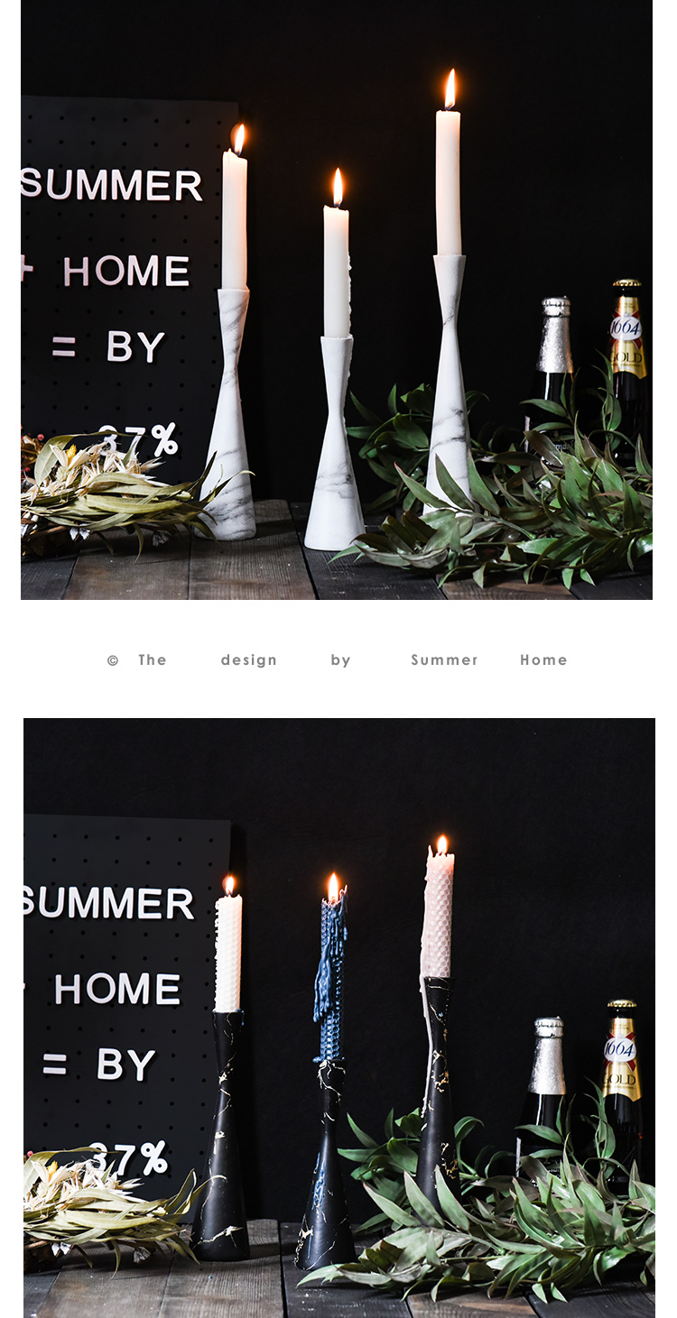INS創意大理石紋北歐輕奢蠟燭臺餐桌客廳樣板房櫥窗裝飾擺件道具1入