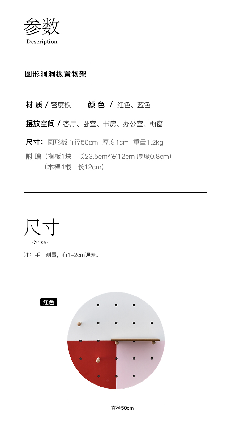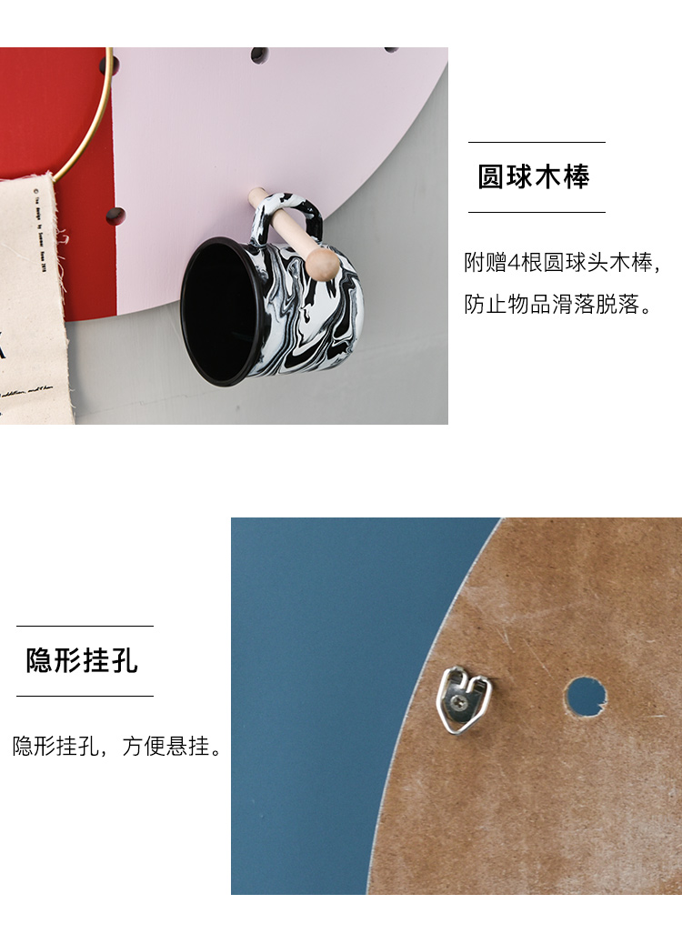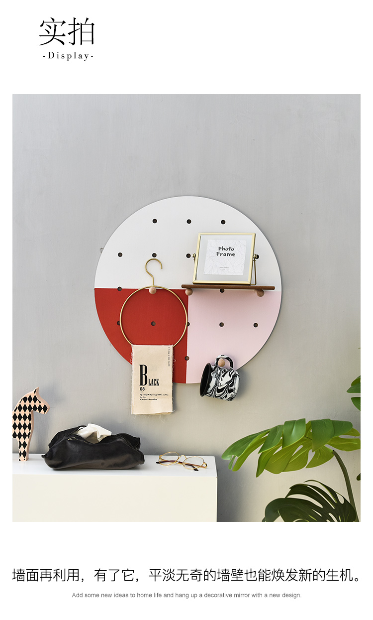 北歐風創意ins文藝圓形洞洞板簡約客廳墻面裝飾收納壁掛壁飾1入