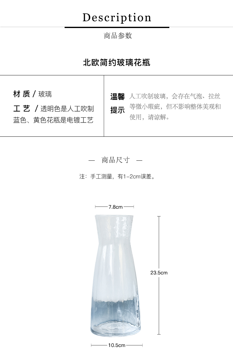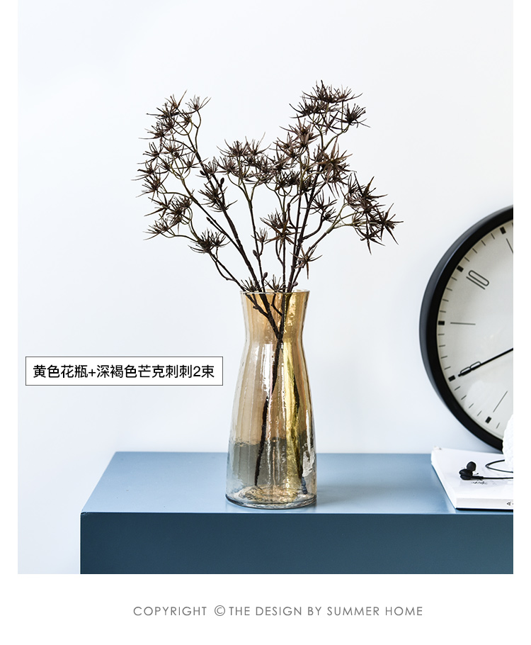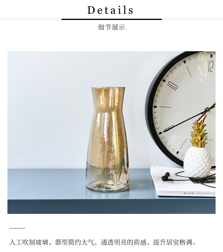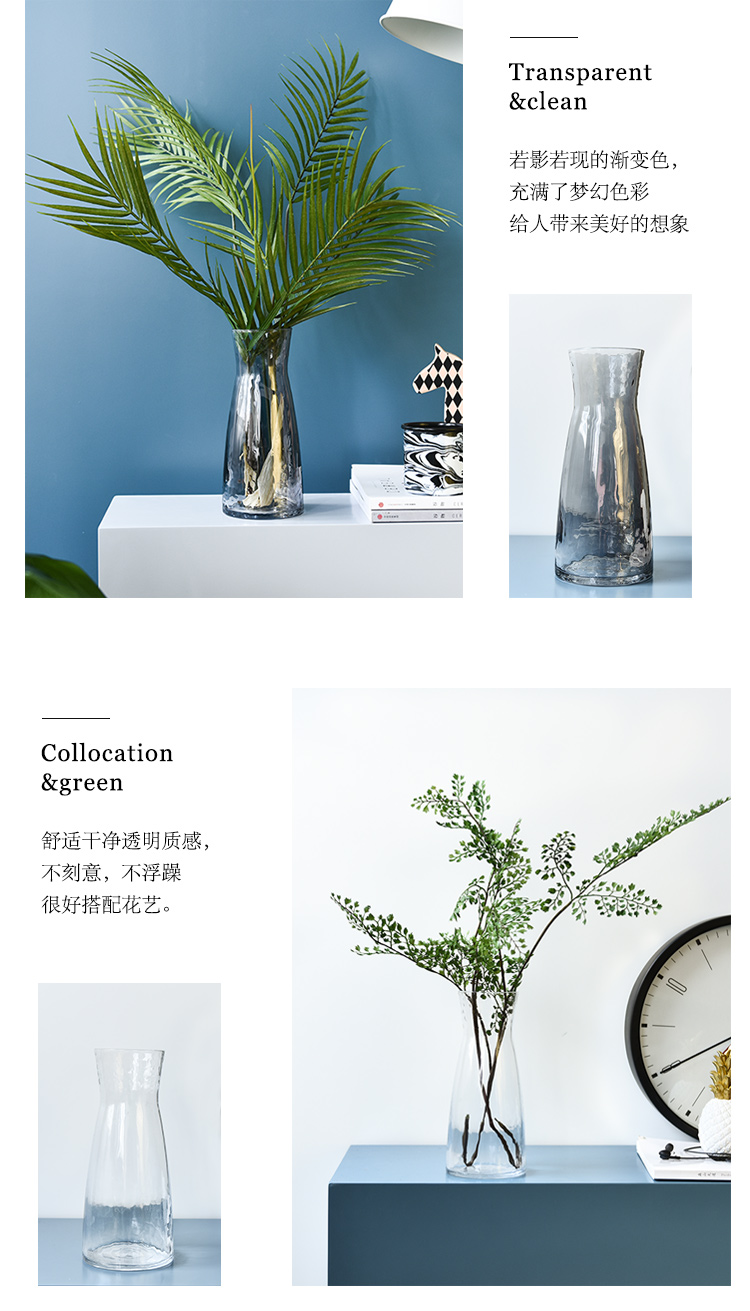 北歐現代簡約錫箔質感透明電鍍玻璃花瓶家居櫥窗餐桌裝飾擺件1入