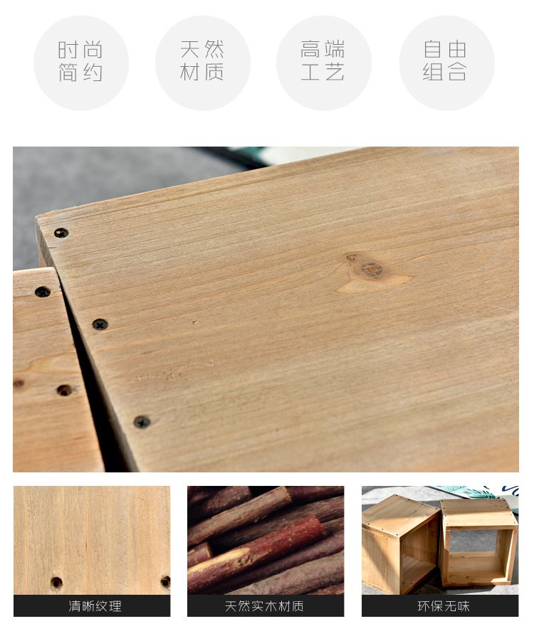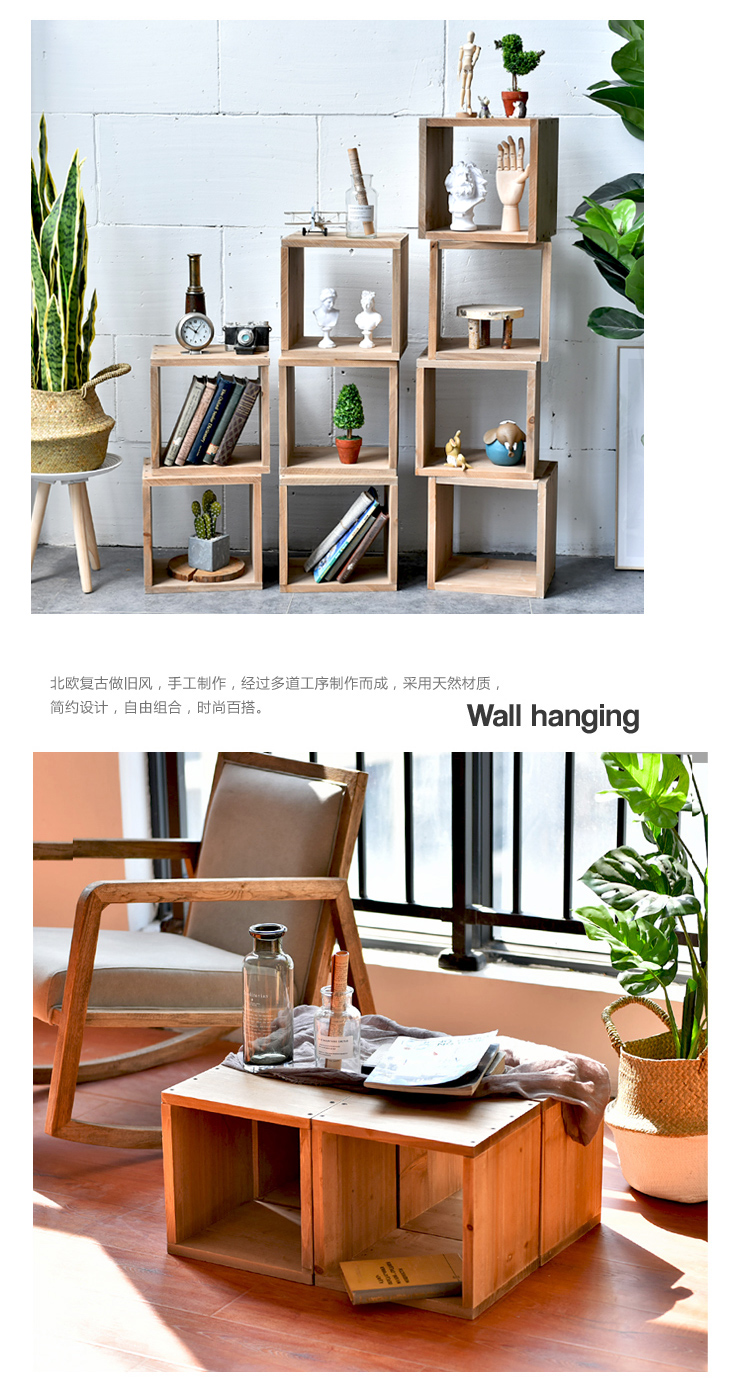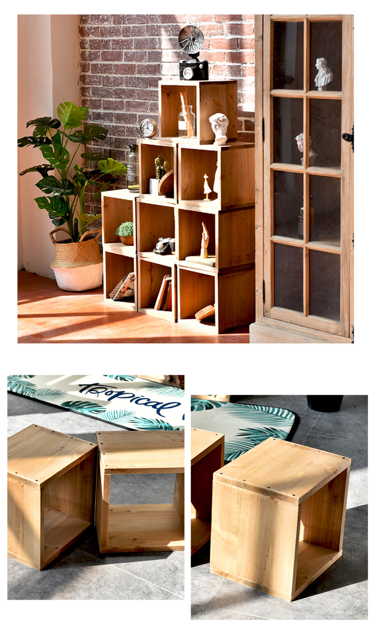 復古做舊實木自由組合臥室客廳置物架儲物收納柜子裝飾書架茶幾1入