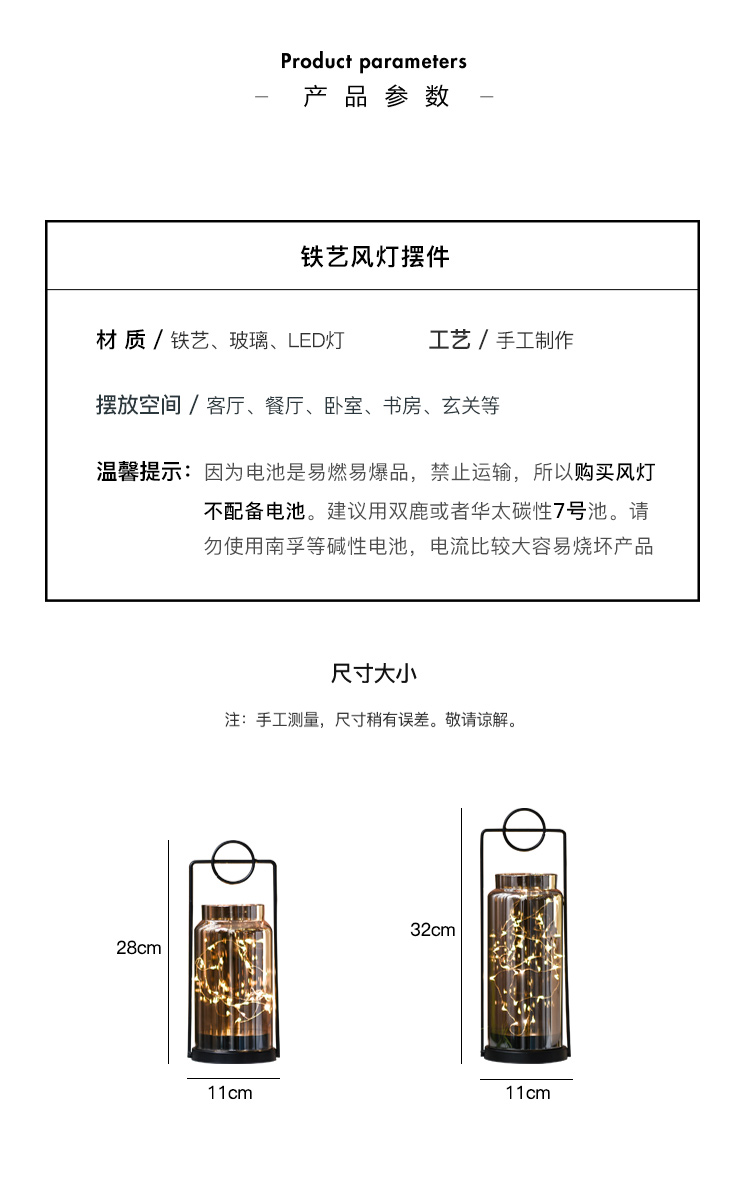 創意簡約北歐風ins鐵藝風燈酒柜客廳櫥窗裝飾擺件桌面夜燈道具1入