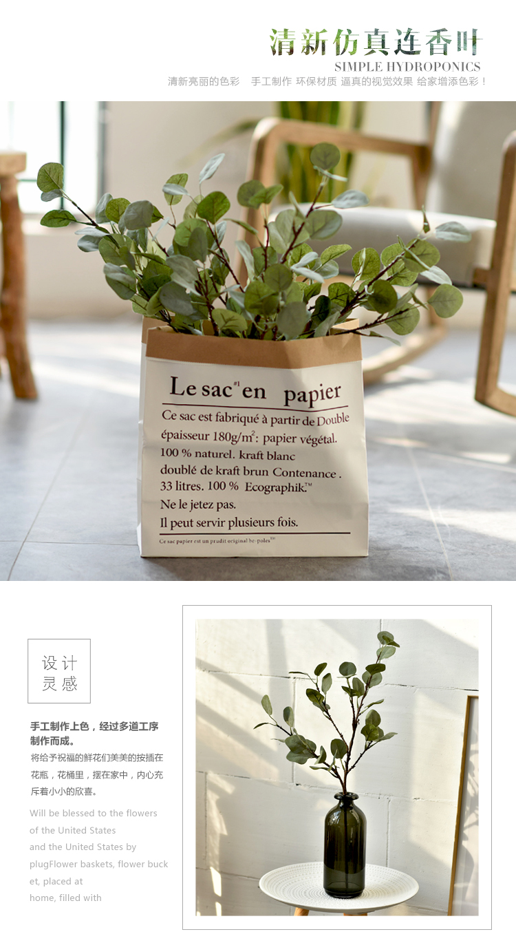 北歐ins尤加利單支插花家居客廳店鋪仿真植物裝飾花道具花瓶套裝1入