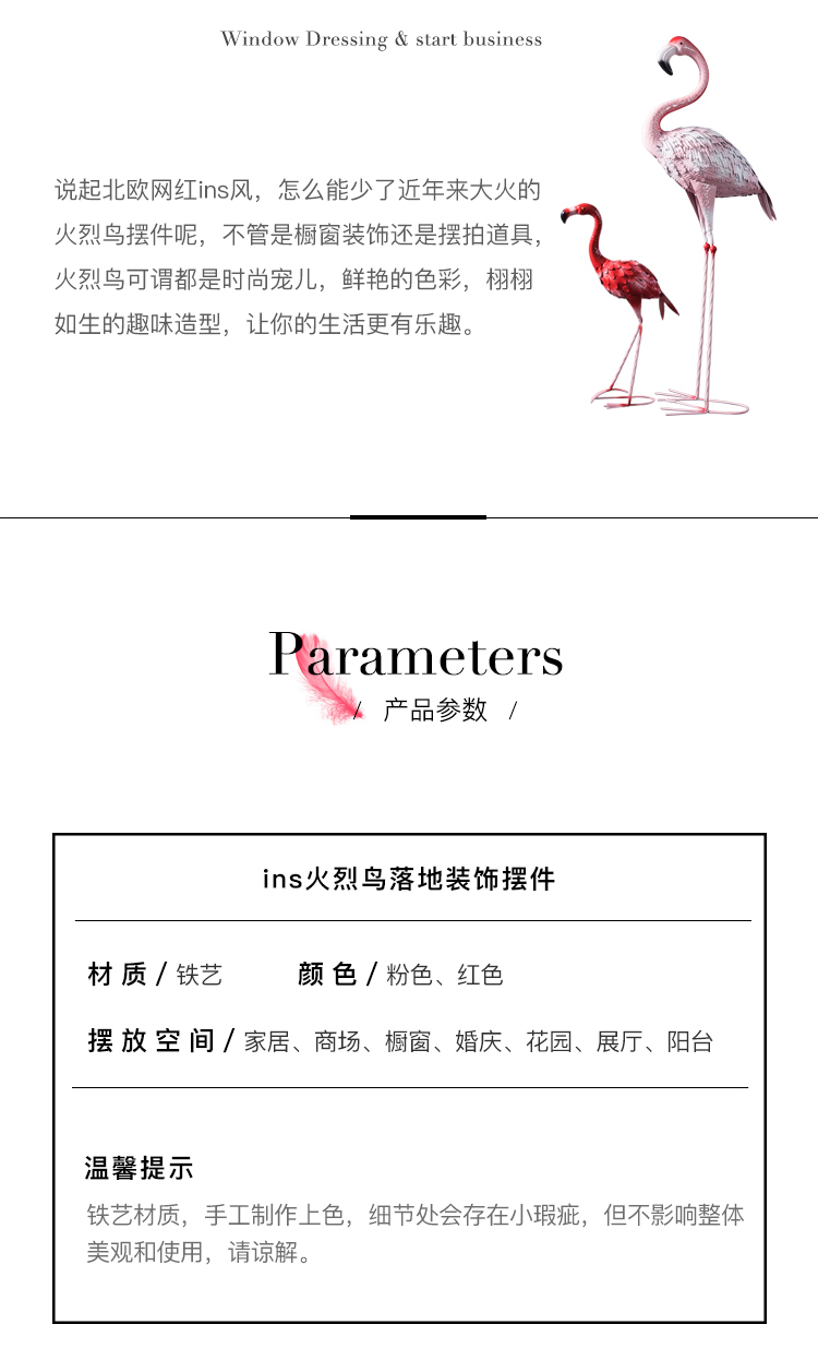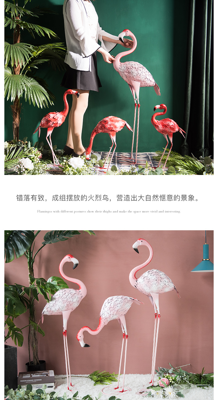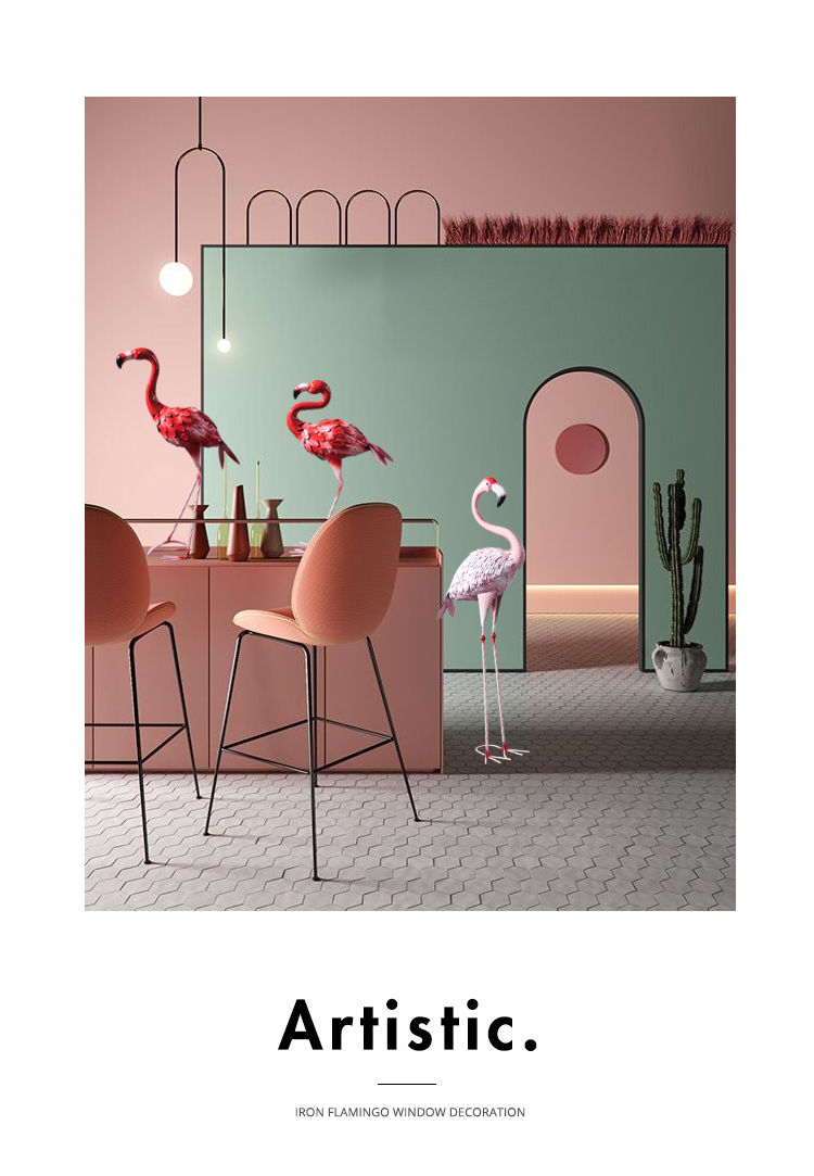 北歐ins網紅鐵藝火烈鳥櫥窗商場婚慶大型落地花園餐廳道具擺件1入