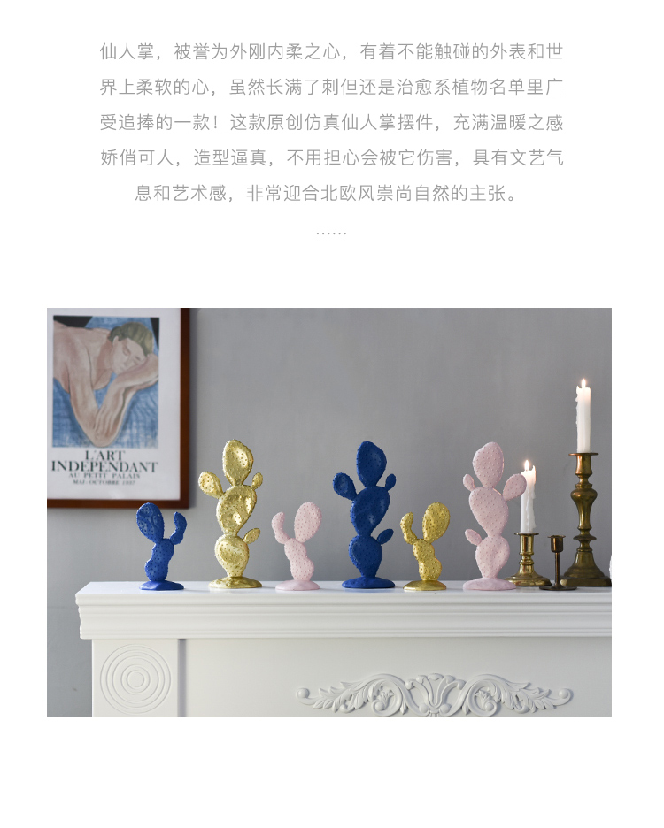 北歐創意莫蘭迪仙人掌擺件客廳酒柜樣板間餐桌電視柜軟裝飾品道具1入