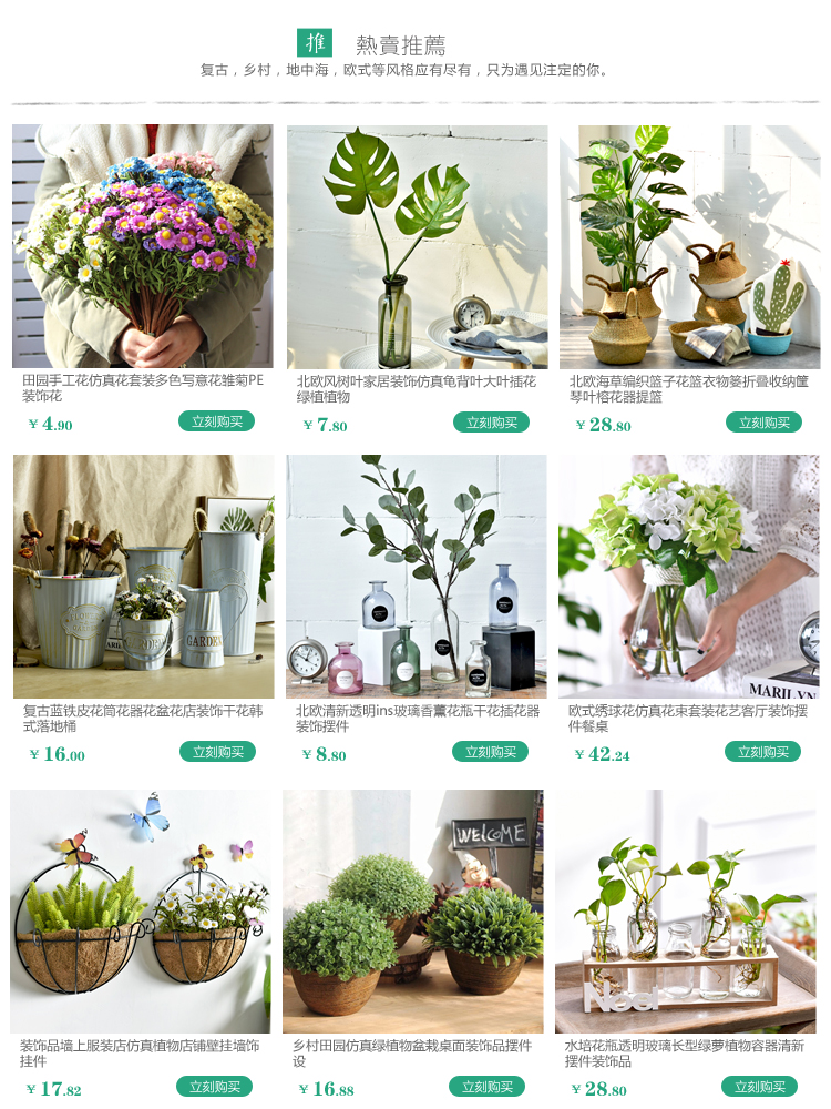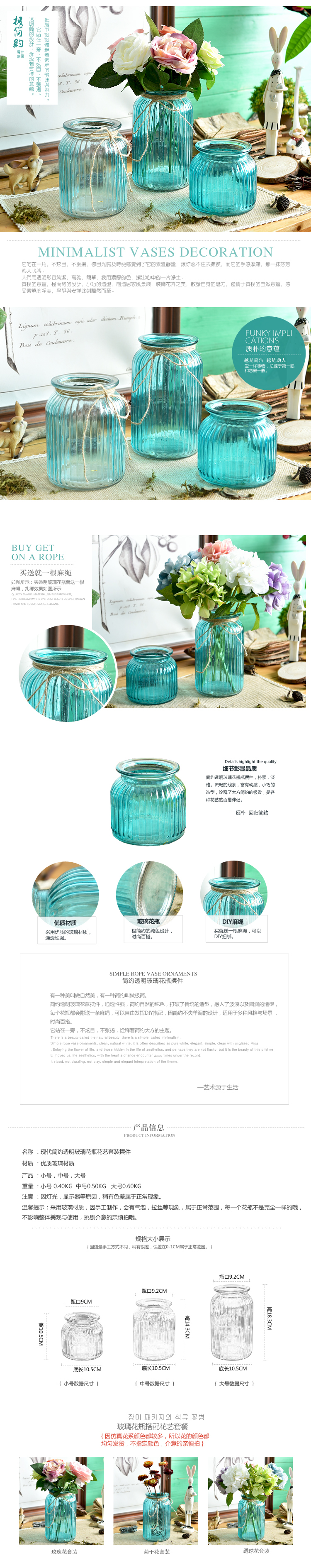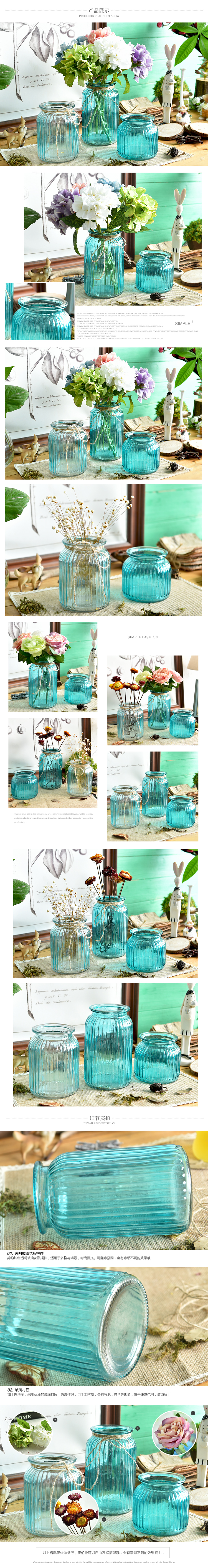 法式鄉村地中海創意藍色透明玻璃花瓶水培花瓶花藝套裝 家居擺件1入