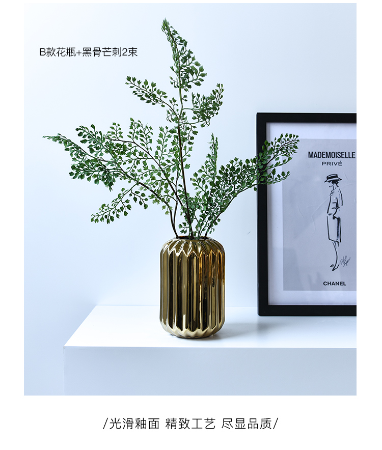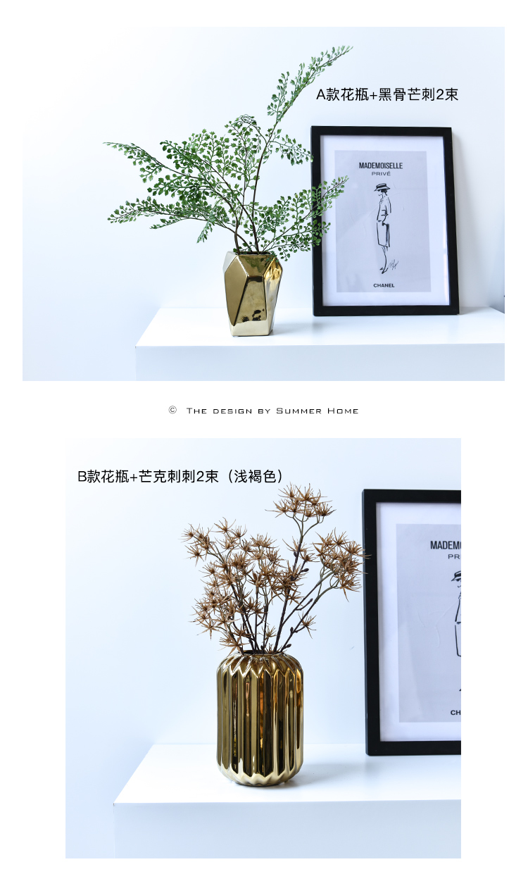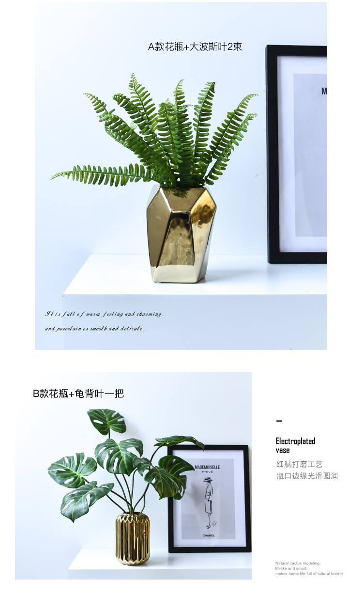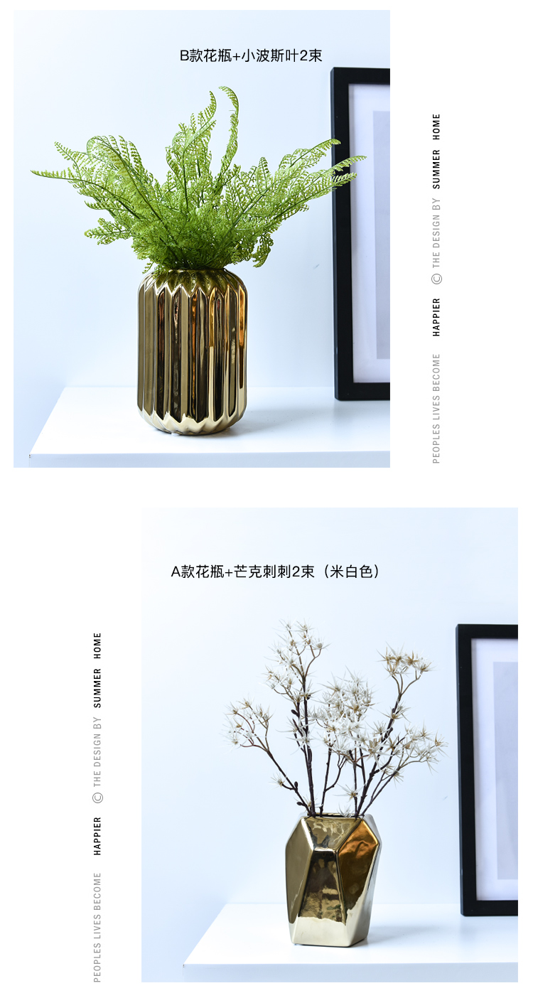 北歐風簡約時尚電鍍陶瓷花瓶餐廳桌面客廳假花裝飾擺設花器套裝1入