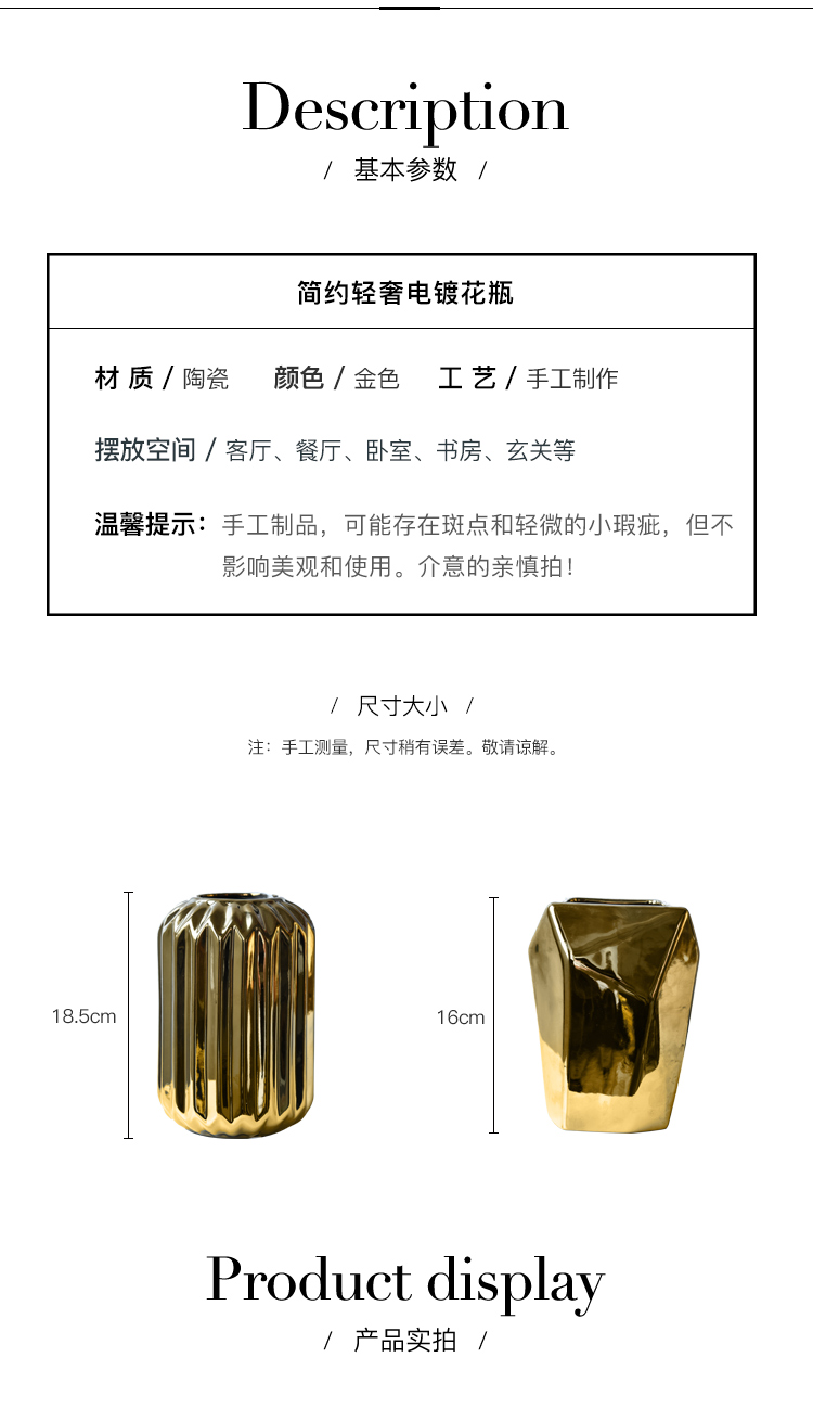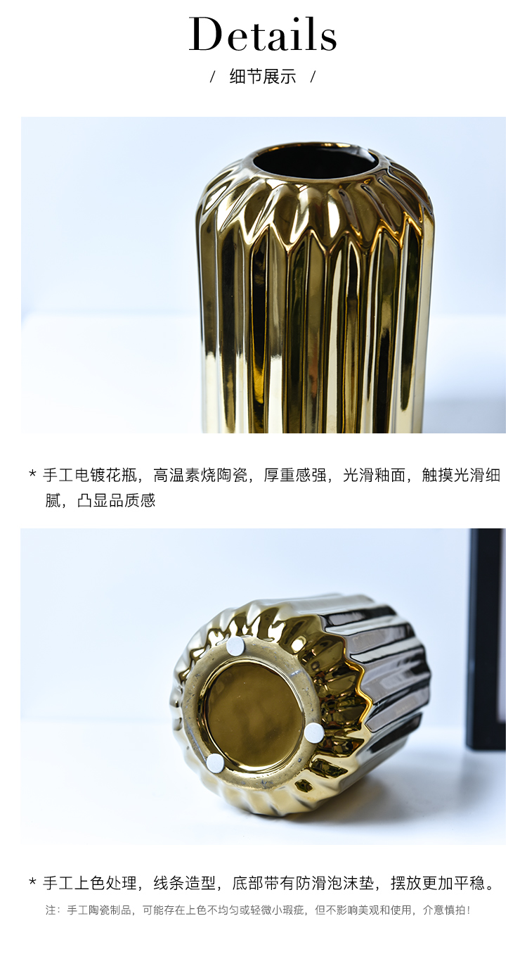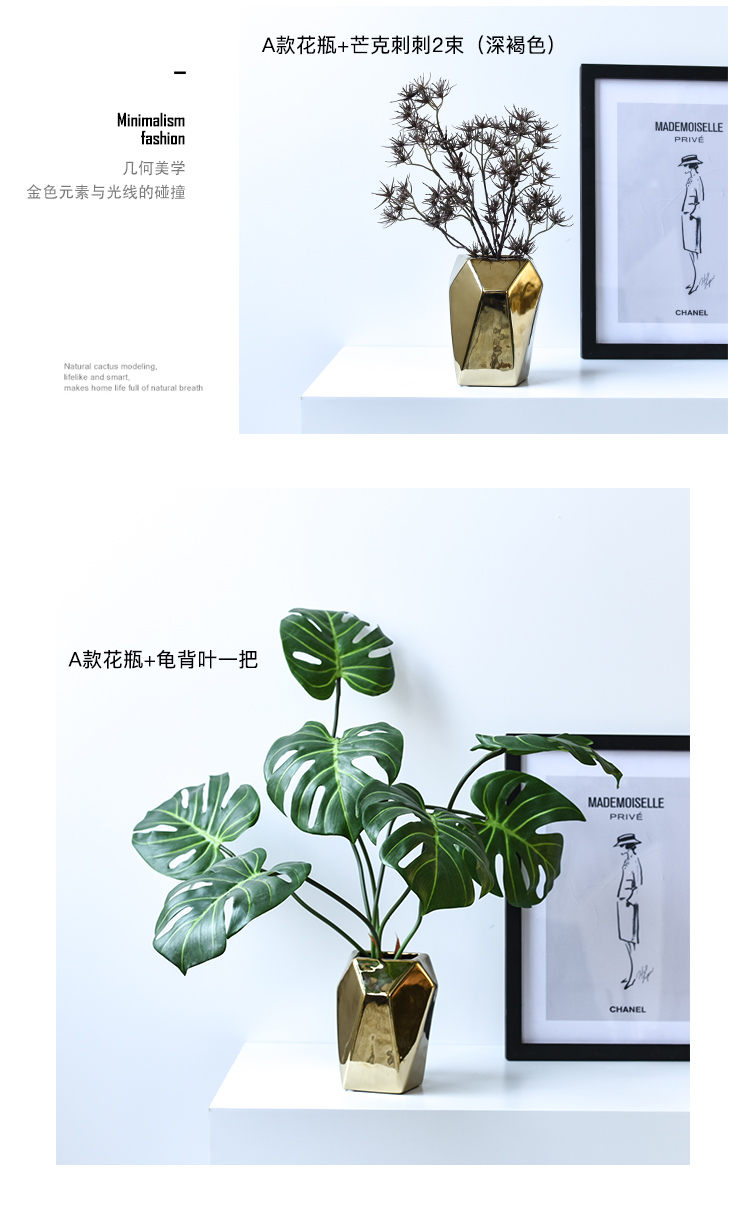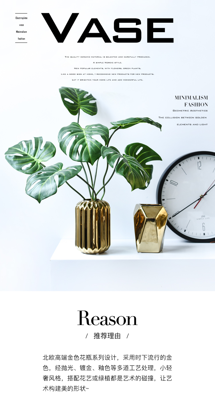 北歐風簡約時尚電鍍陶瓷花瓶餐廳桌面客廳假花裝飾擺設花器套裝1入