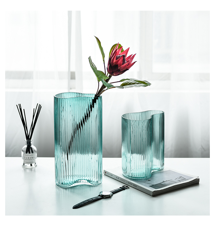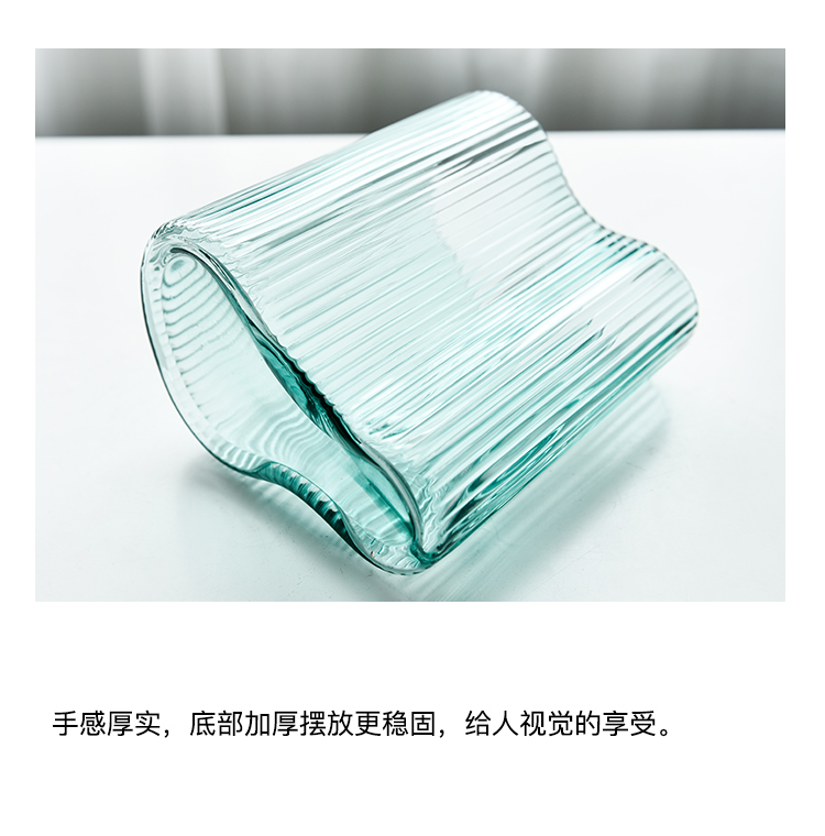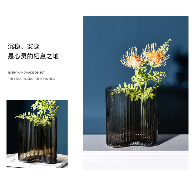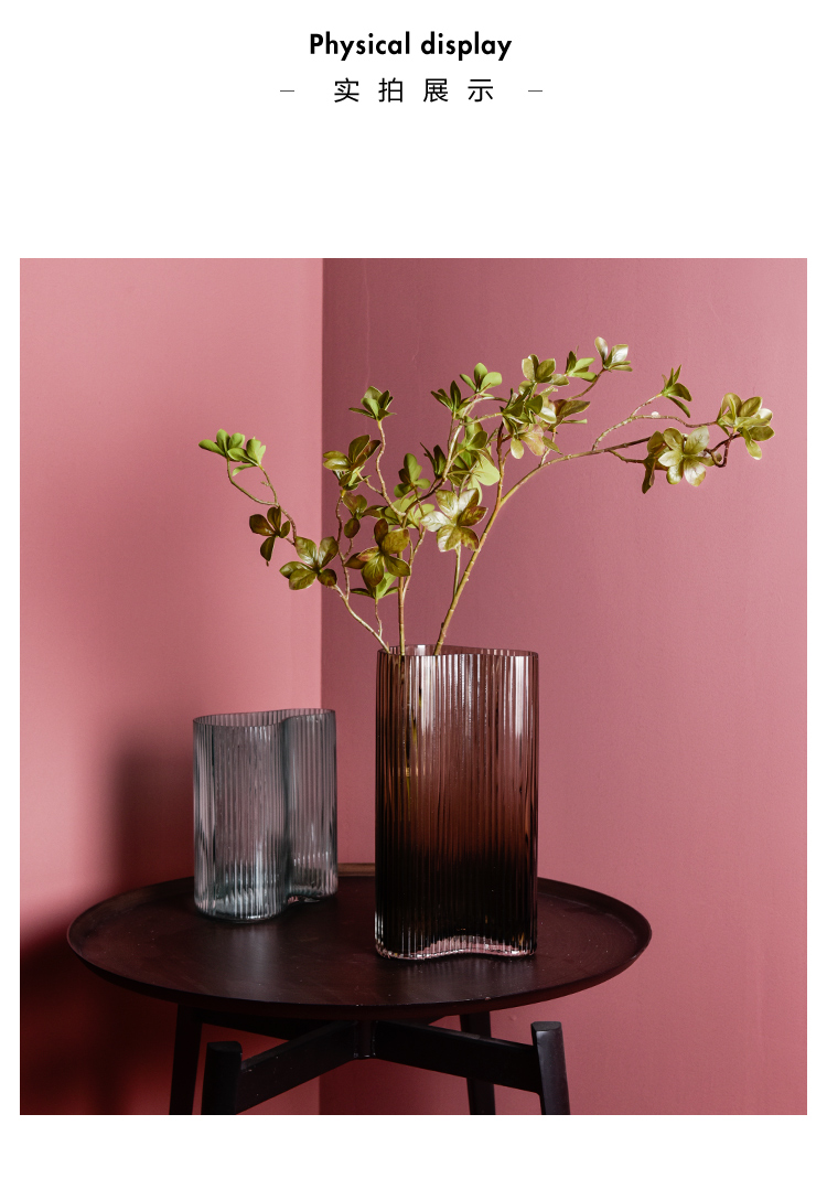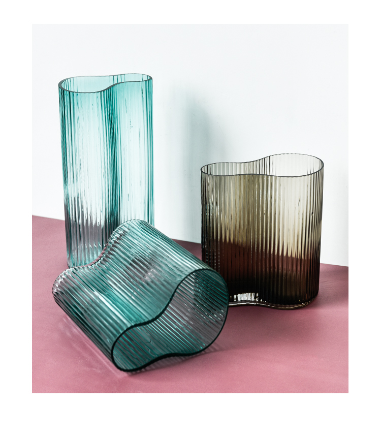 北歐現代簡約不規則曲型水波紋琥珀色玻璃花瓶插花花器家居創意擺1入