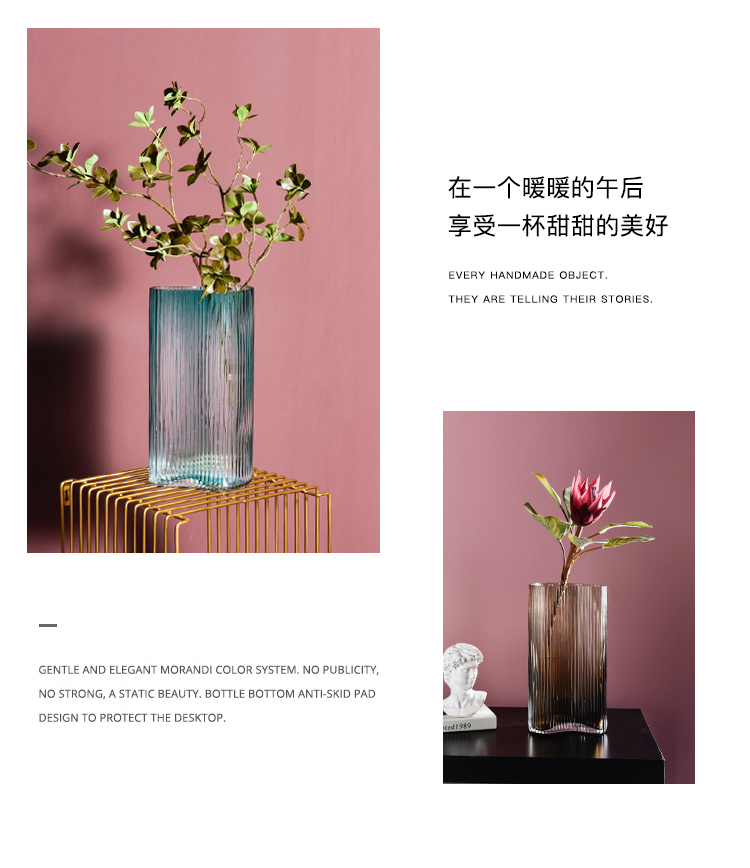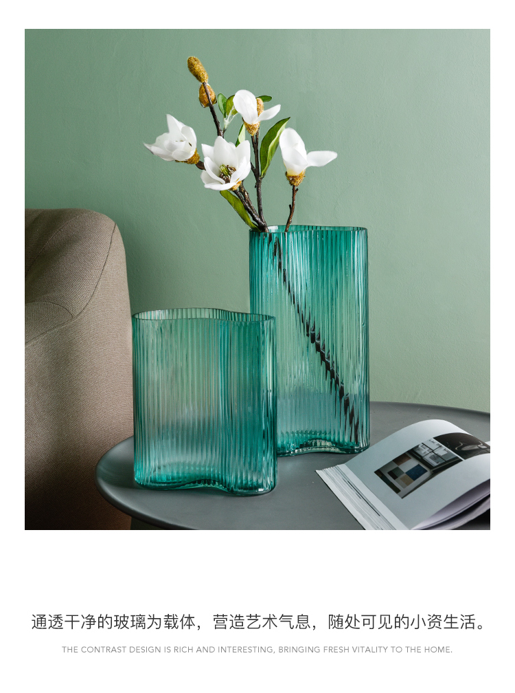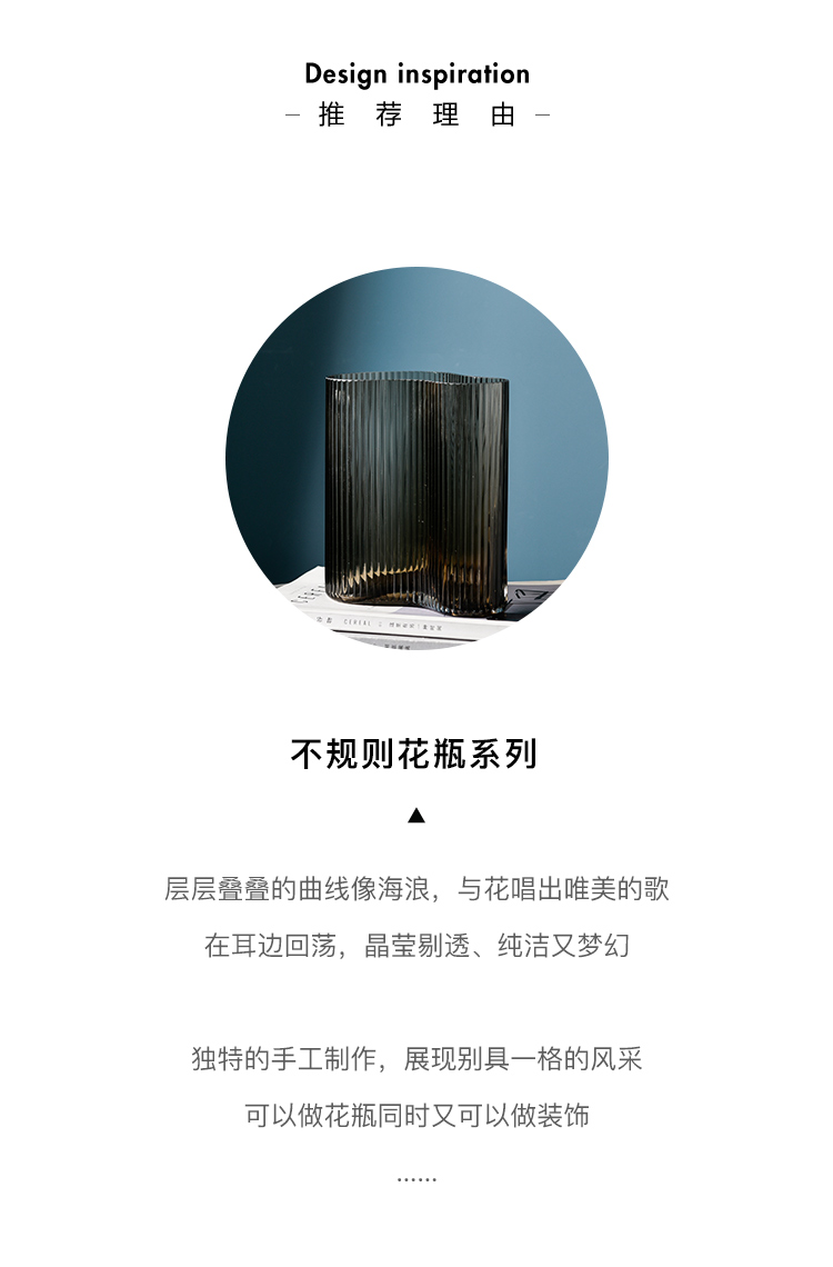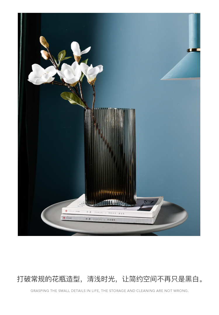 北歐現代簡約不規則曲型水波紋琥珀色玻璃花瓶插花花器家居創意擺1入