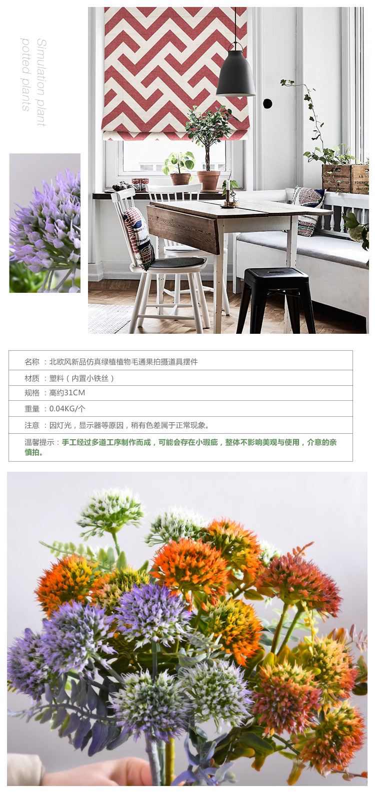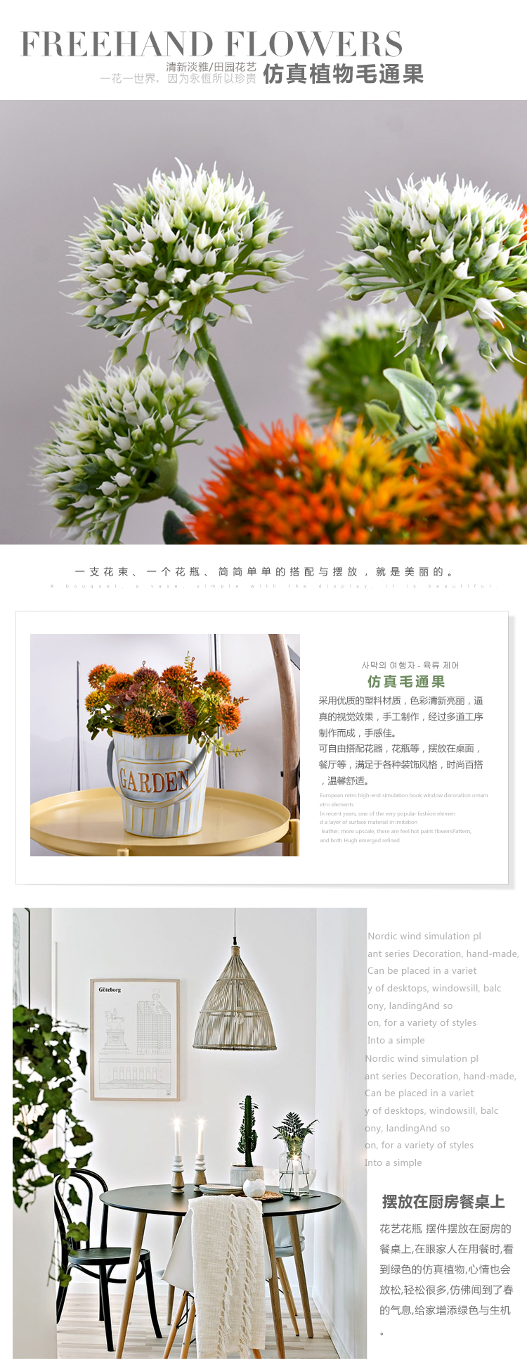 仿真花植物多頭毛通果花瓶餐桌裝飾擺件塑料手感較花簇花束綠植1入