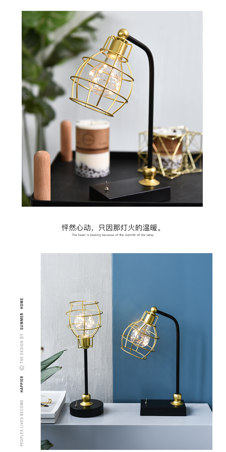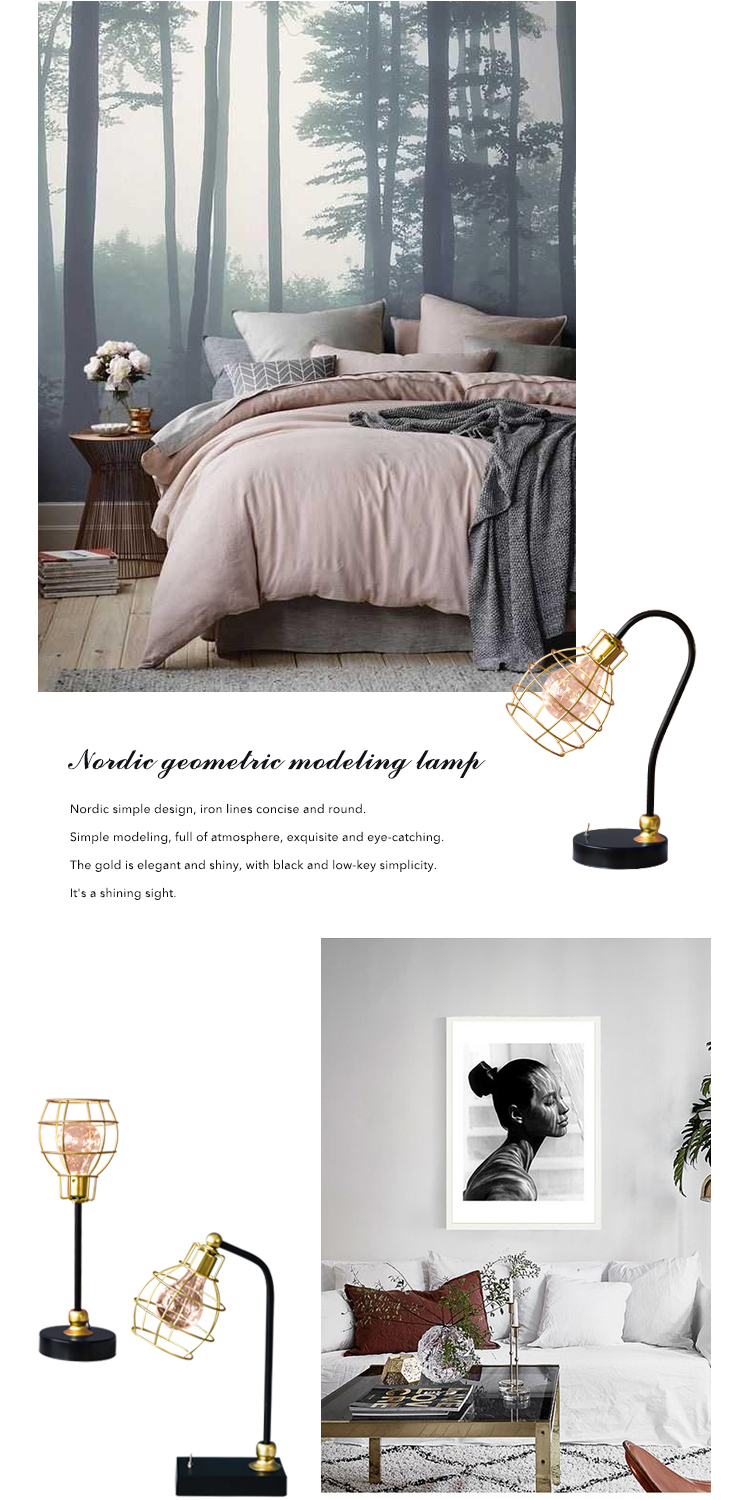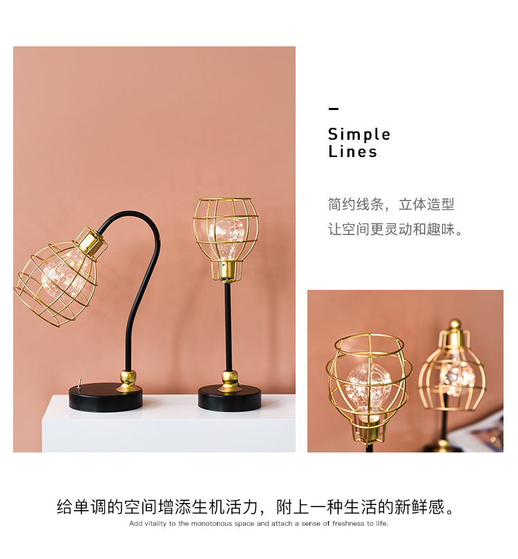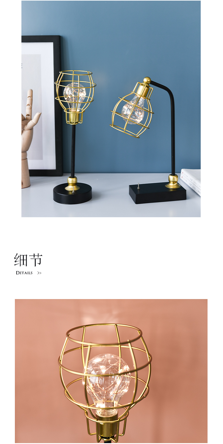創意鐵藝幾何ins北歐鐵藝鉆石燈小夜燈家居飾品擺件臥室床頭臺燈1入