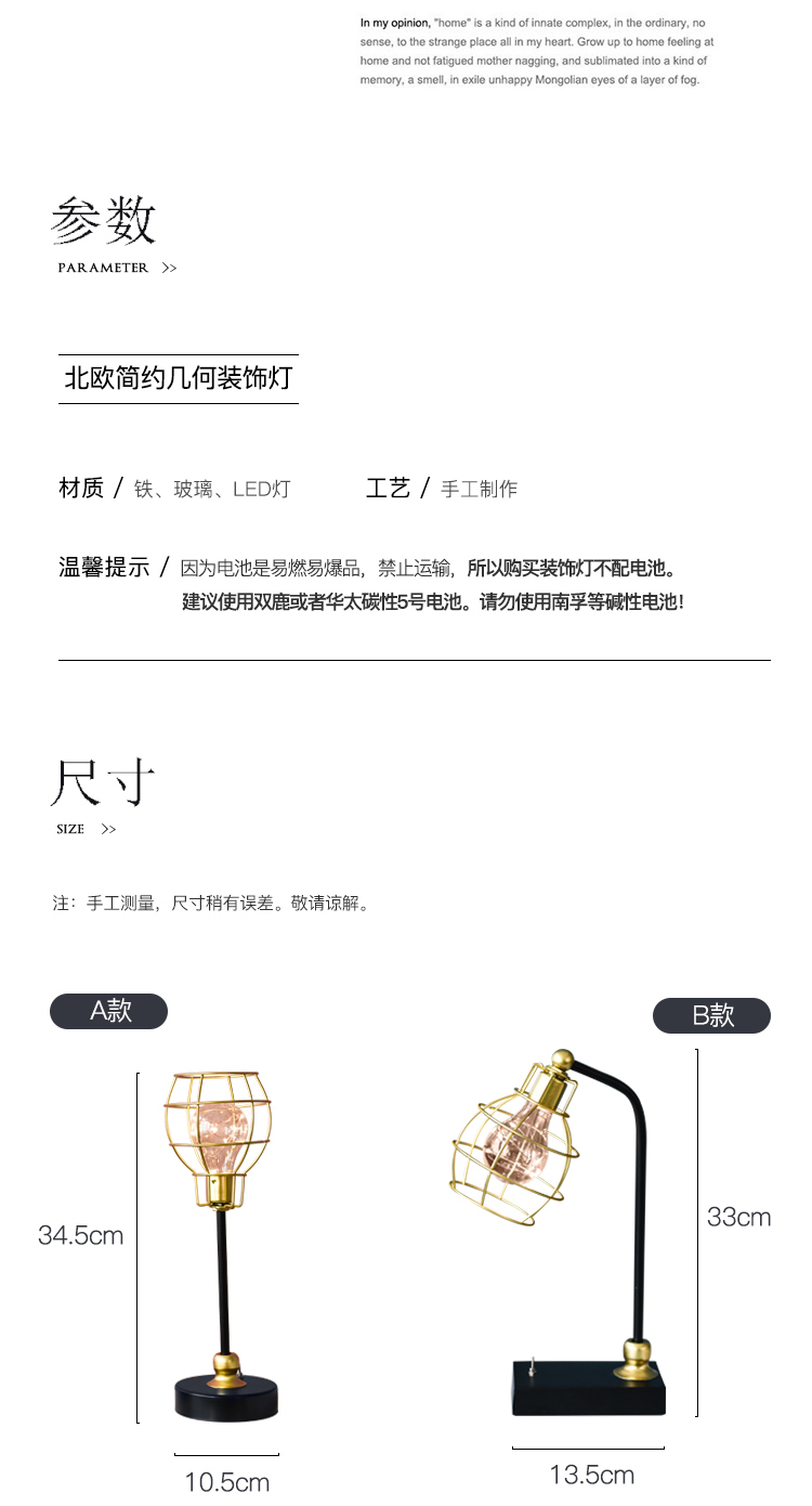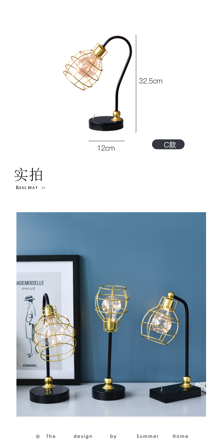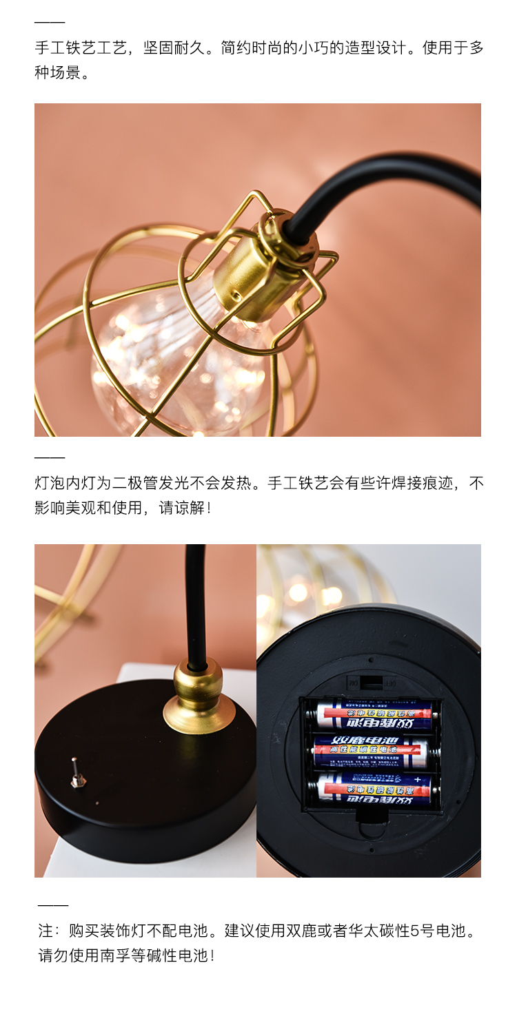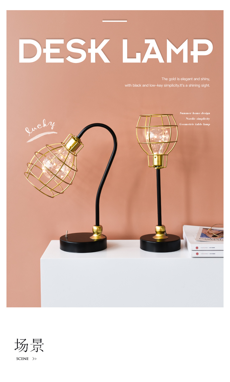 創意鐵藝幾何ins北歐鐵藝鉆石燈小夜燈家居飾品擺件臥室床頭臺燈1入