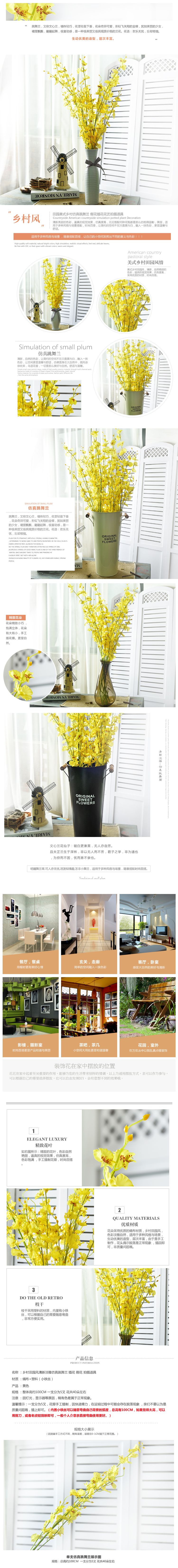 客廳臥室高仿真裝飾絹花假花蘭花插花 黃色跳舞蘭套裝婚慶飾品1入