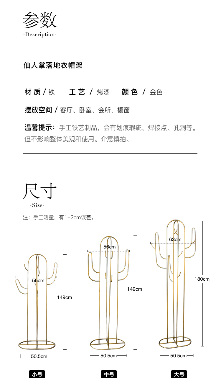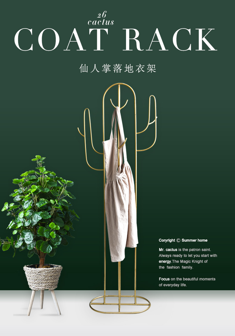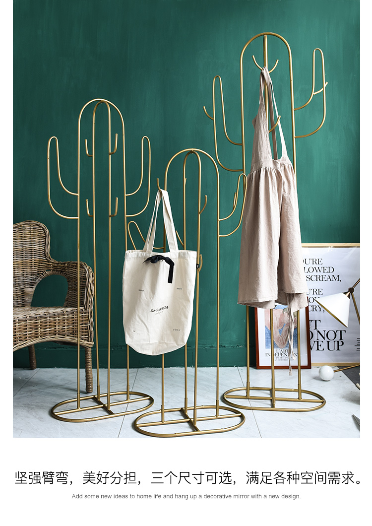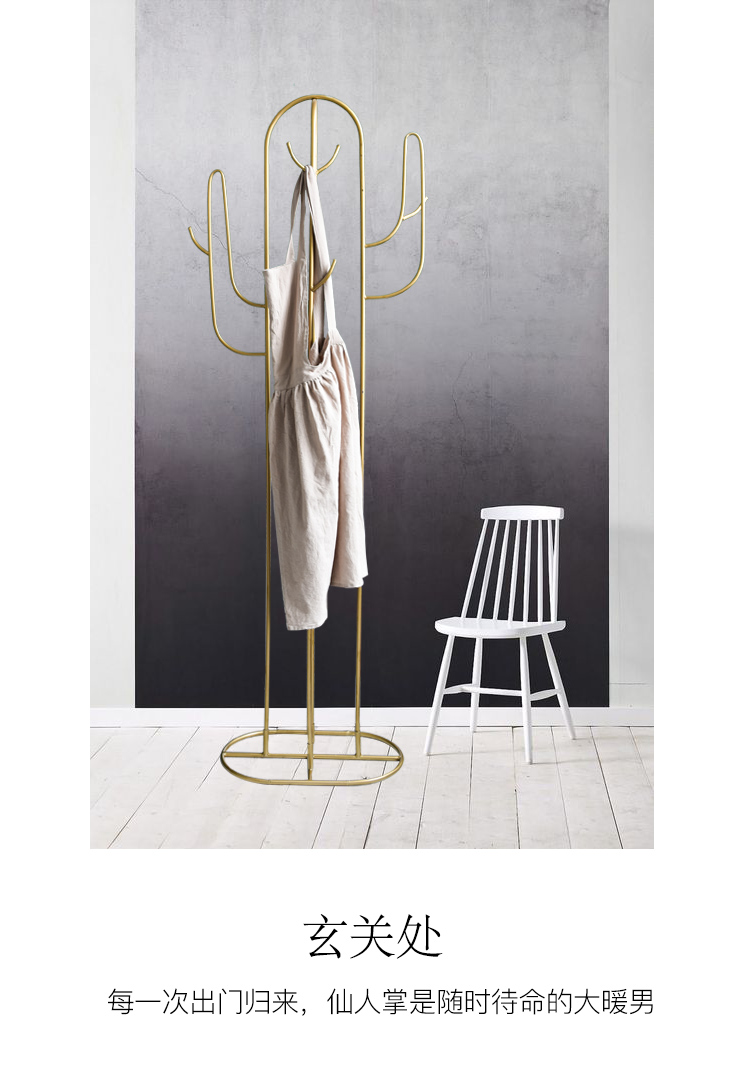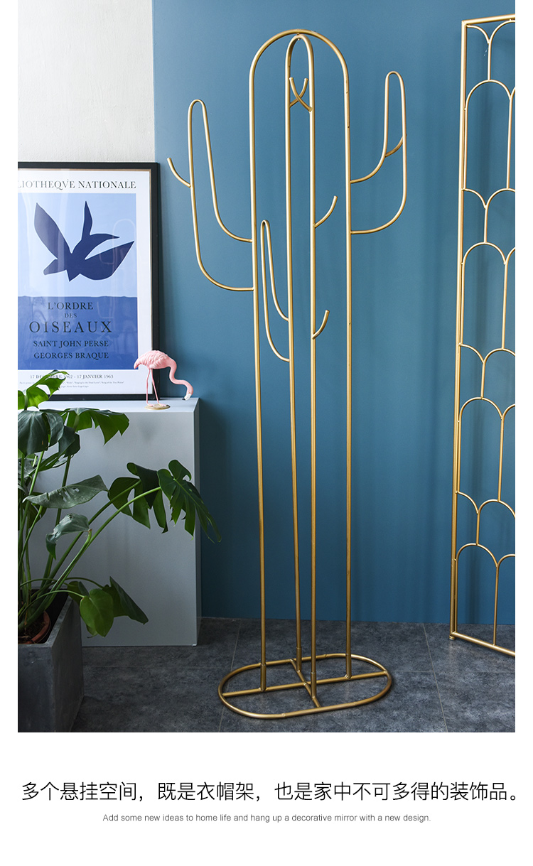 創意北歐簡約臥室客廳鐵藝仙人掌衣帽架落地置物收納多功能掛架1入