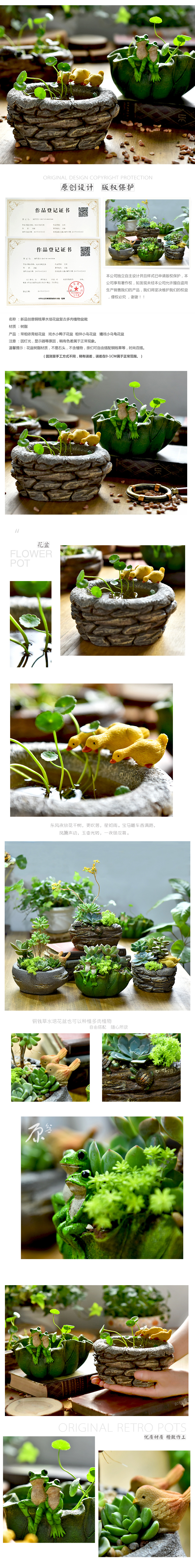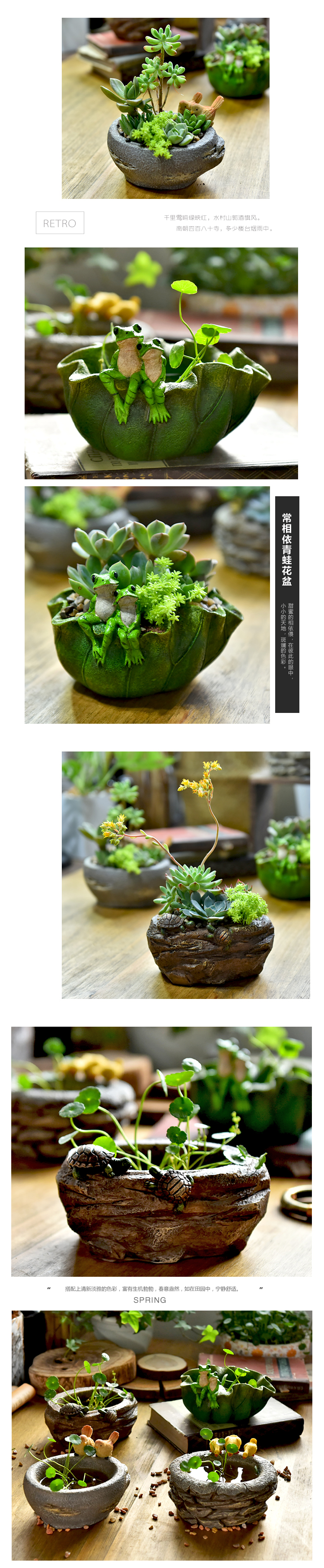 創意銅錢草水培動物樹脂花盆復古多肉植物盆栽景室內陽臺花園擺件1入