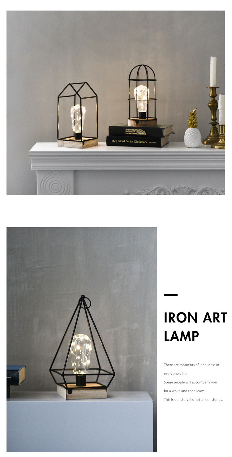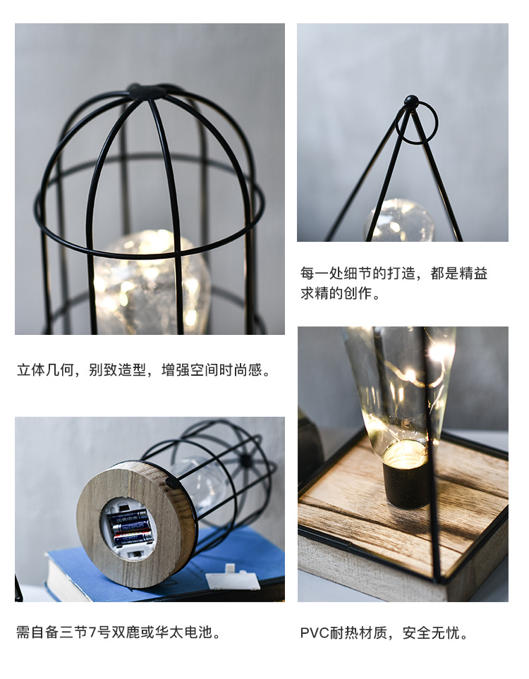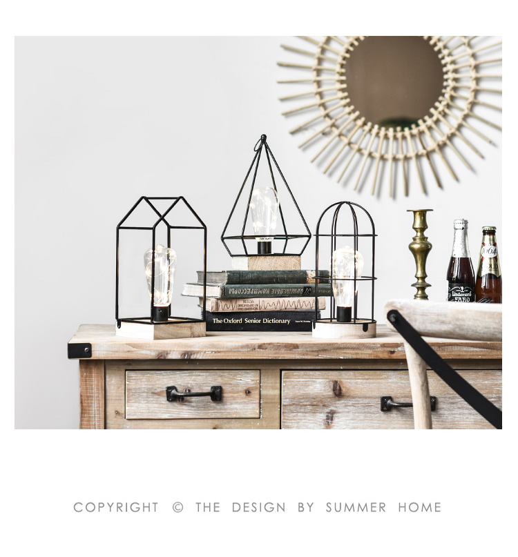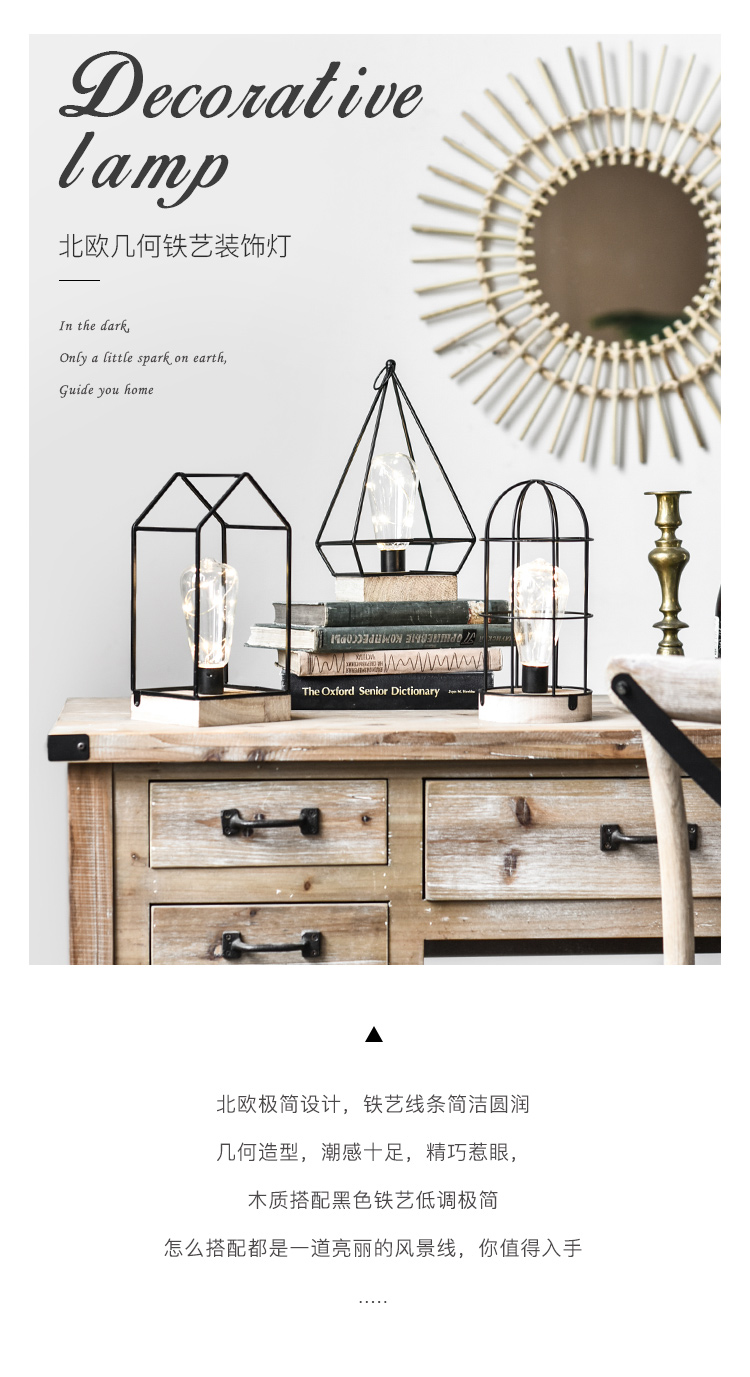 創意北歐鄉村簡約幾何鐵藝裝飾小夜燈書房客廳桌面酒柜裝飾擺件1入