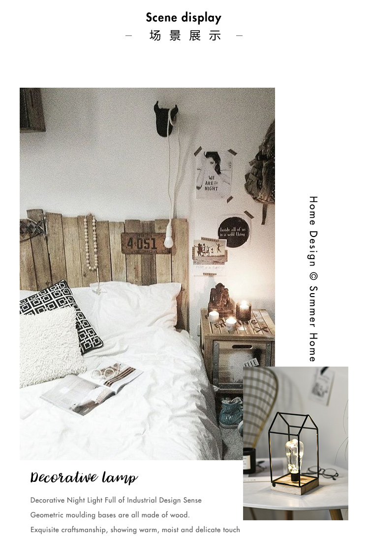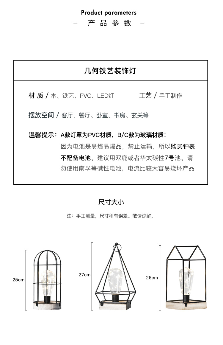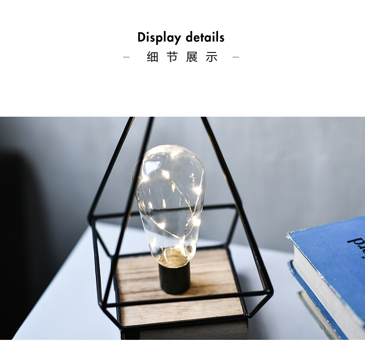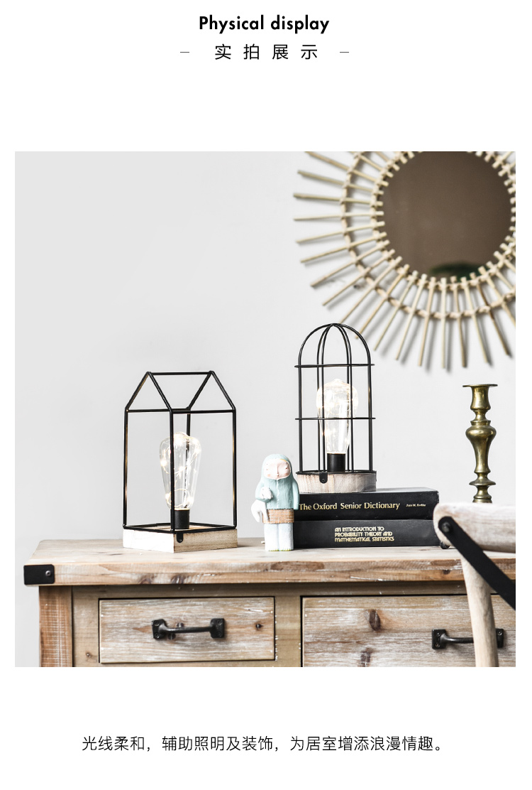 創意北歐鄉村簡約幾何鐵藝裝飾小夜燈書房客廳桌面酒柜裝飾擺件1入