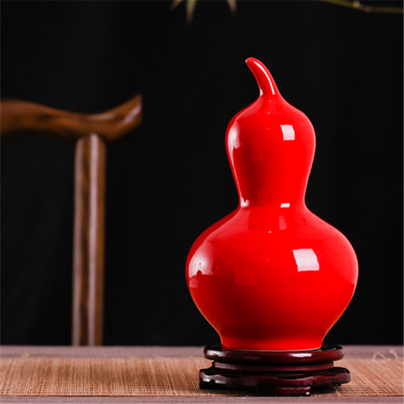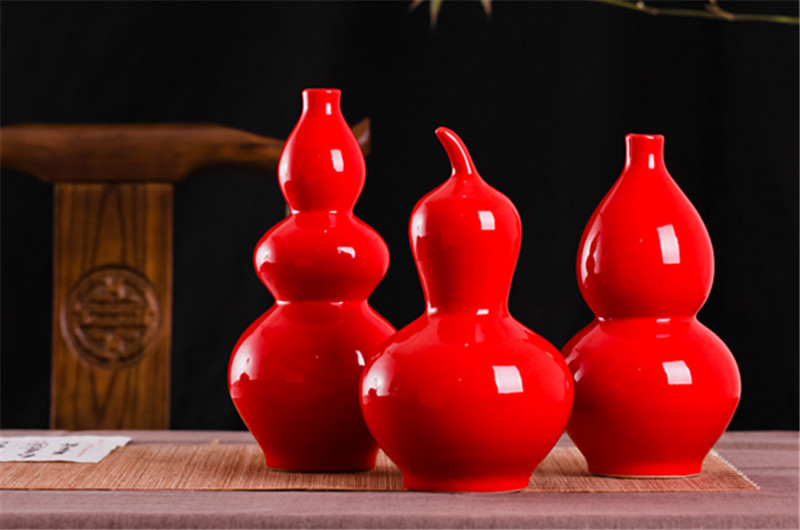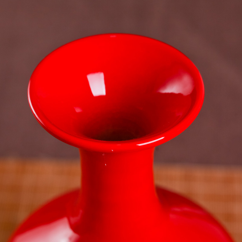 景德鎮陶瓷純紅色插花瓶手工復古擺件創意結婚禮品禮物喜慶裝飾品1入