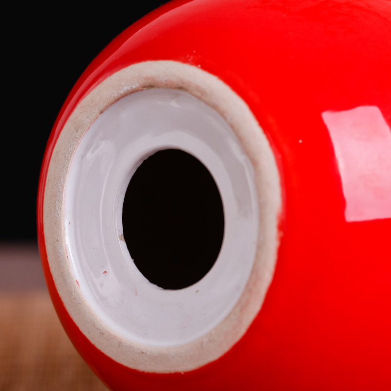 [2]景德鎮陶瓷純紅色插花瓶手工復古擺件創意結婚禮品禮物喜慶裝飾品1入
