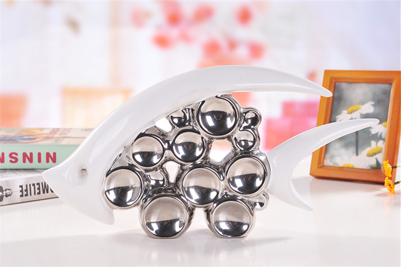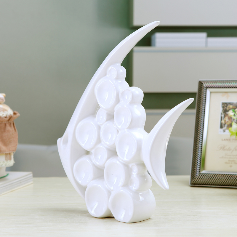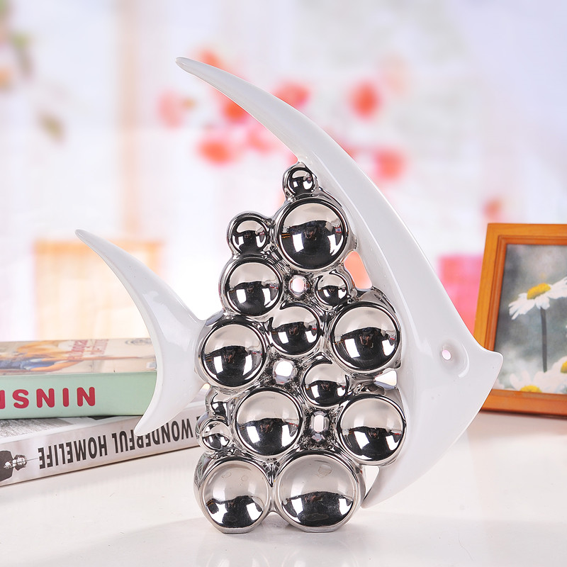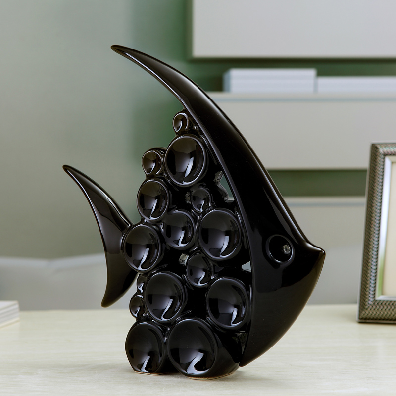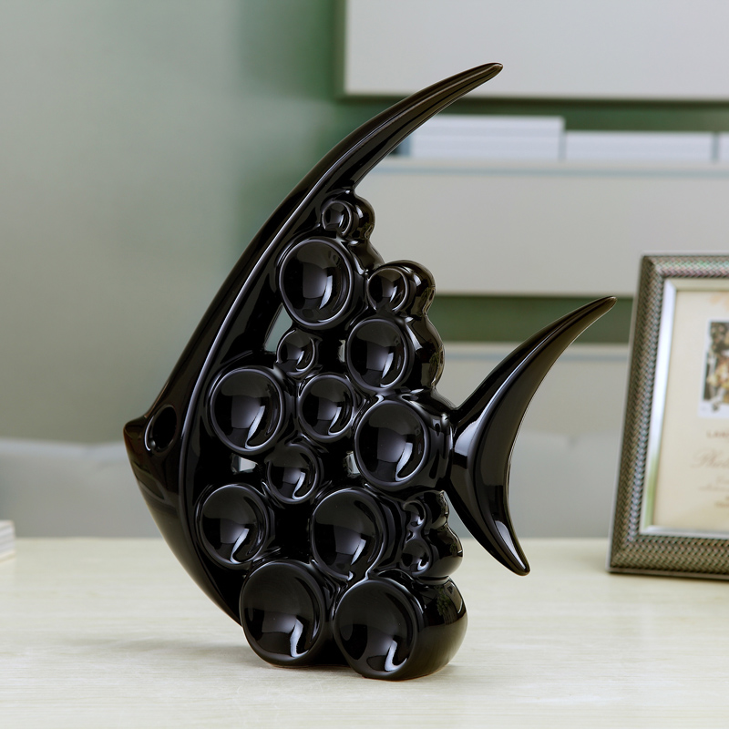 現代簡約家居電視柜酒柜裝飾品陶瓷工藝品情侶泡泡魚擺件結婚禮物1入