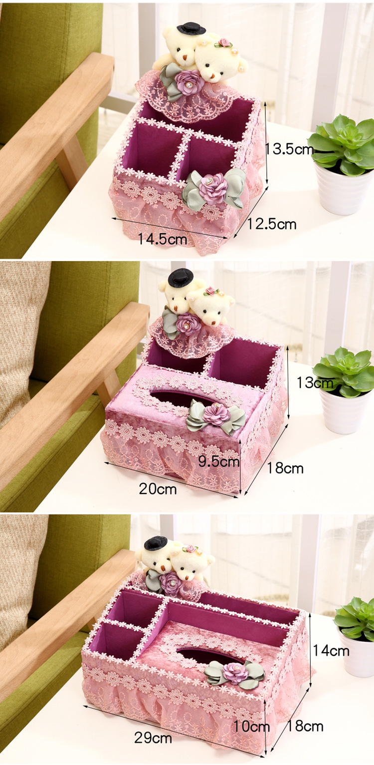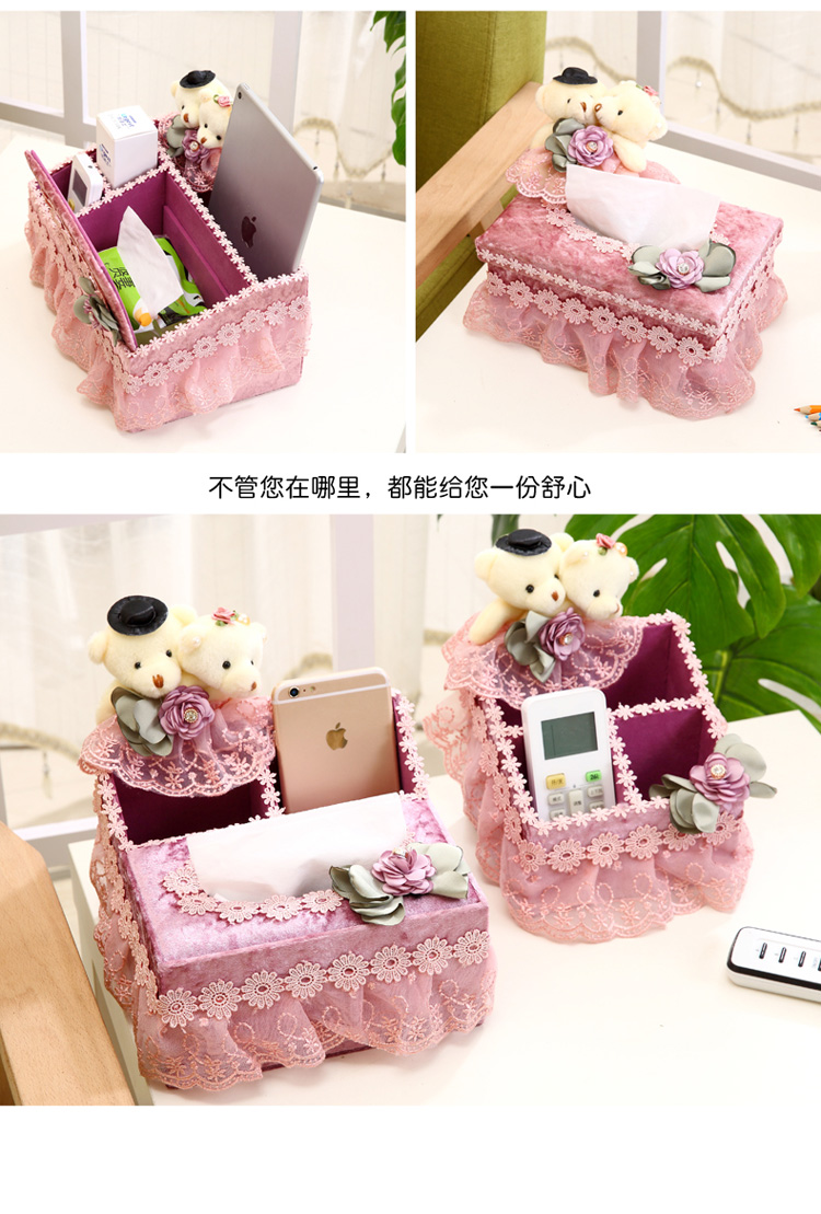 布藝多功能紙巾盒抽紙盒客廳歐式遙控器收納盒 可愛創意紙巾盒1入