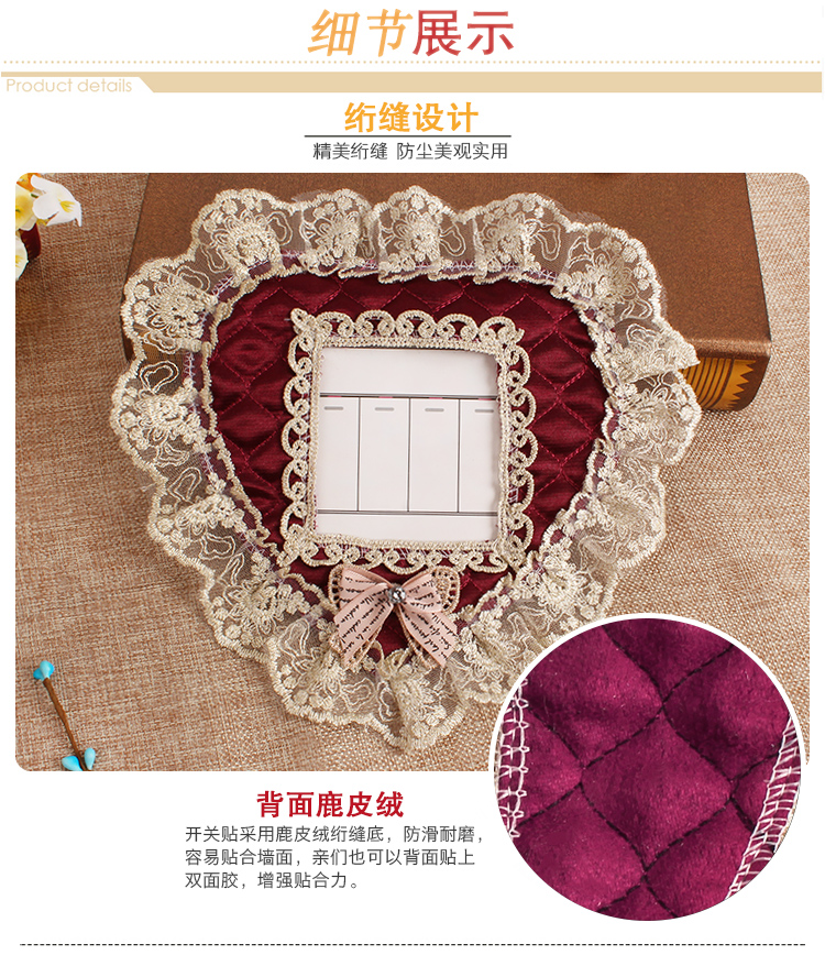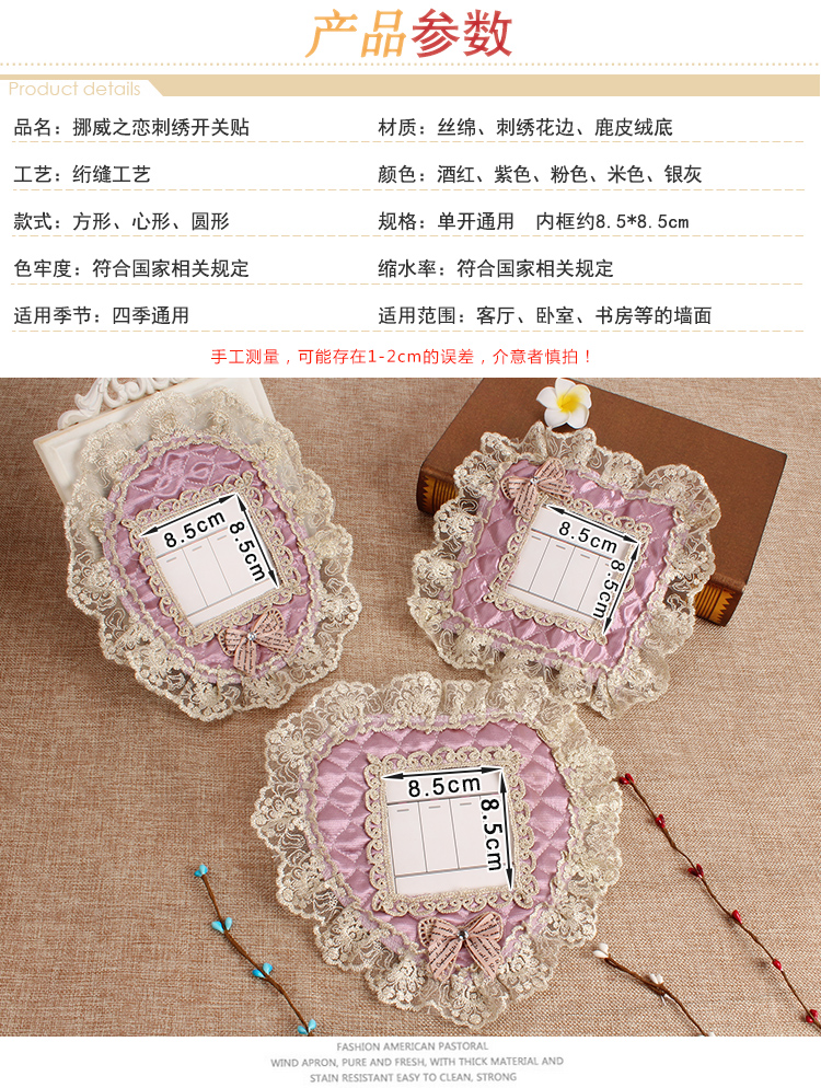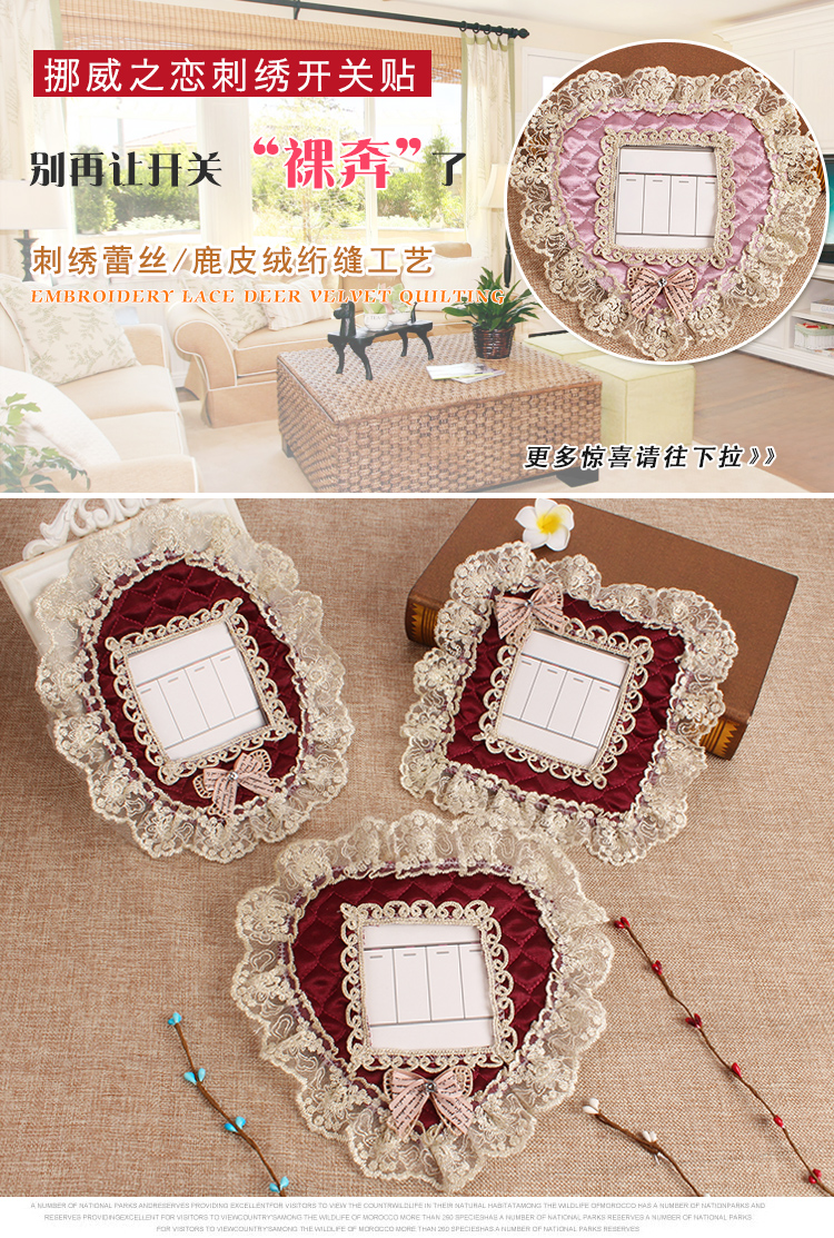 布藝開關貼墻貼雙開關套保護套客廳歐式創意燈開關插座裝飾貼蕾絲1入