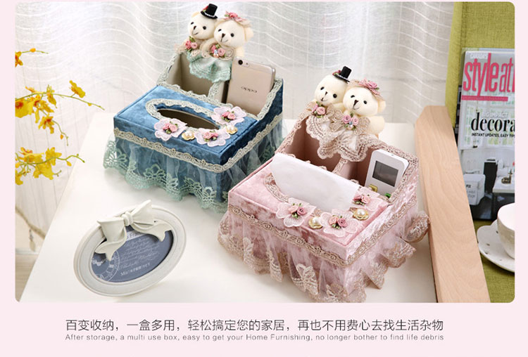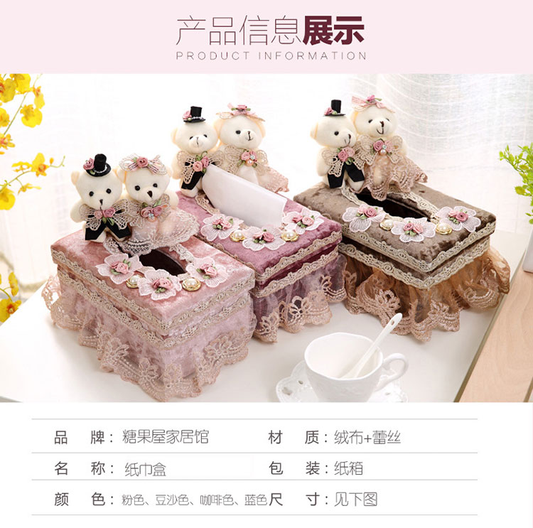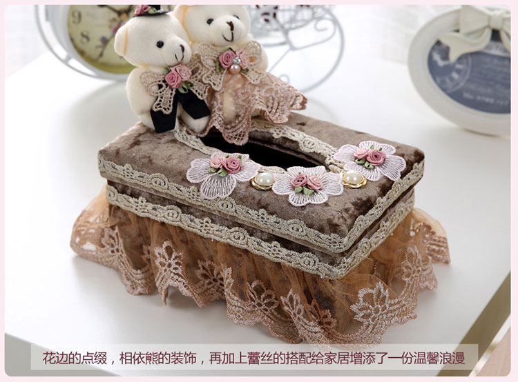 歐式創意客廳紙巾盒 家用抽紙盒 布藝蕾絲茶幾桌面餐巾紙抽盒1入