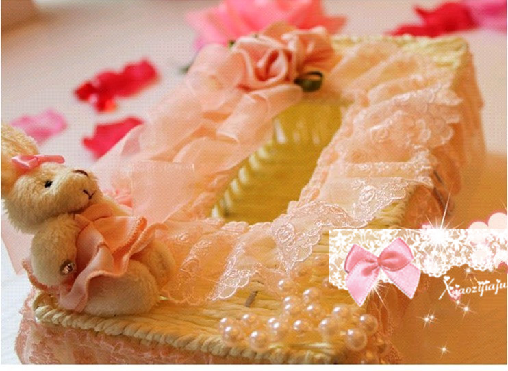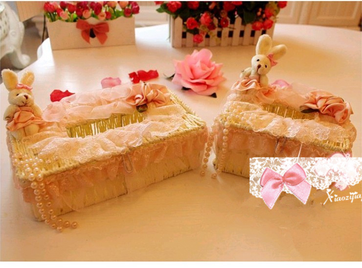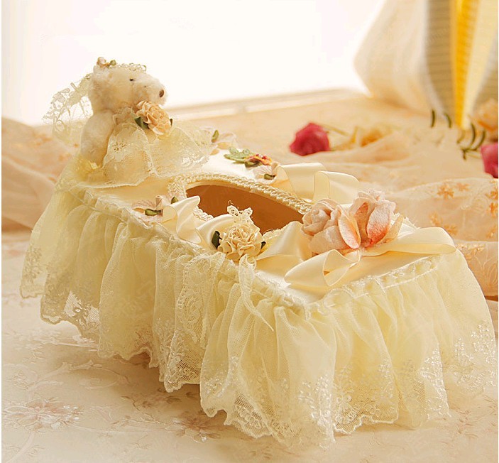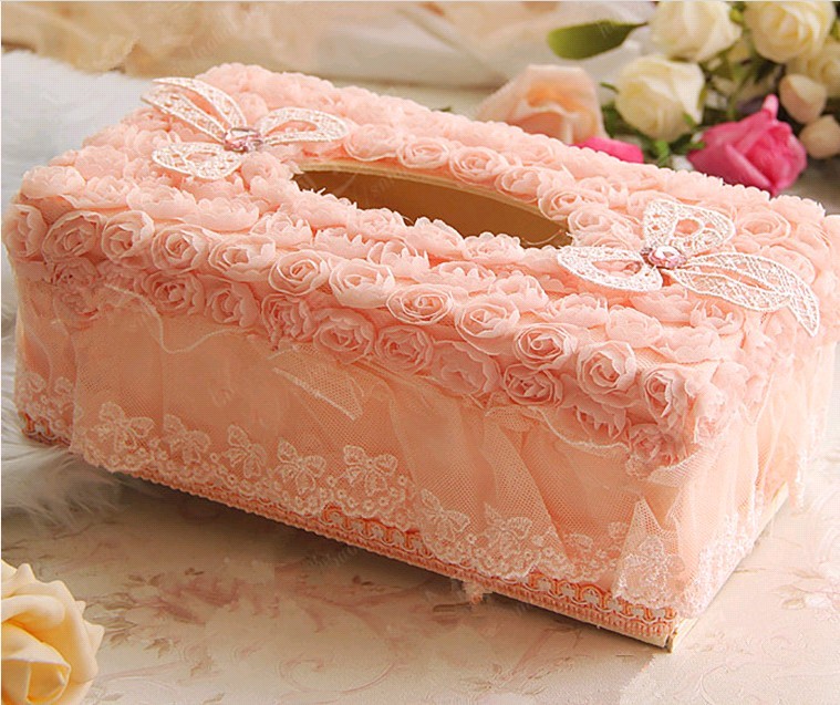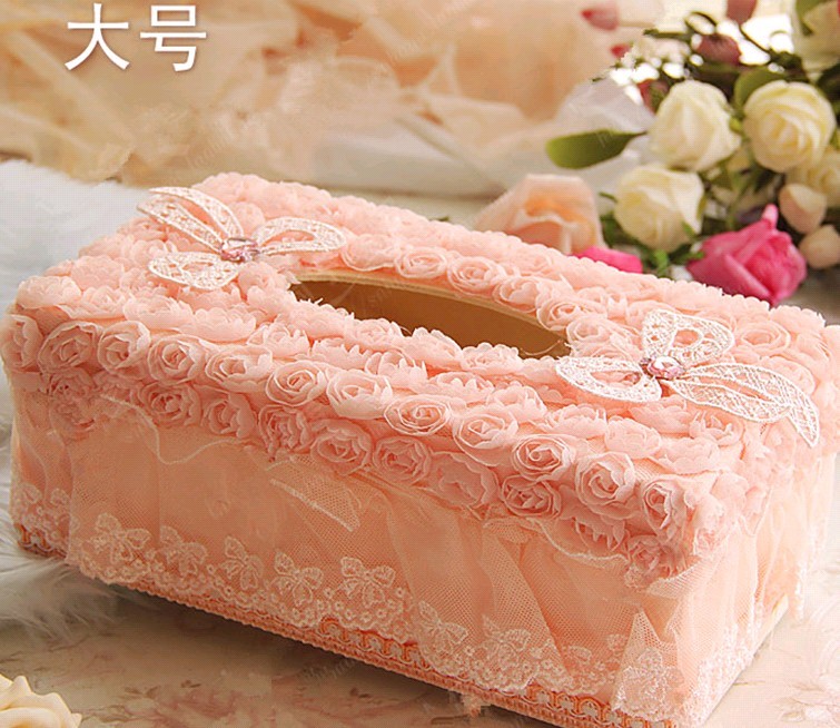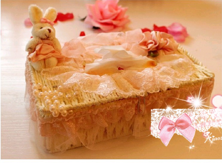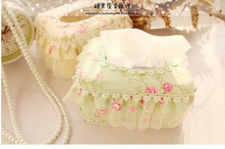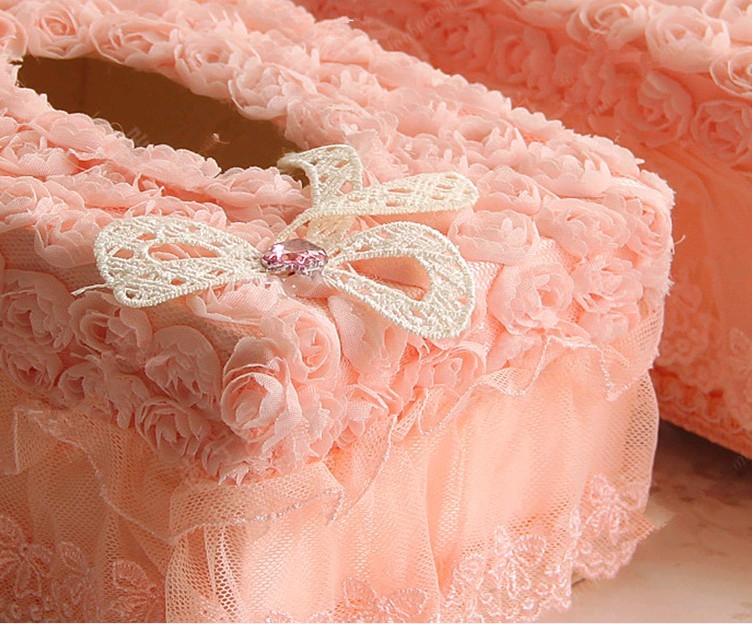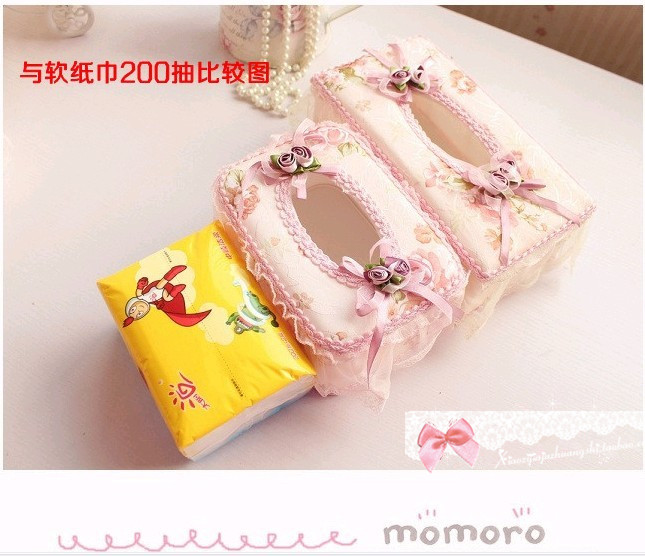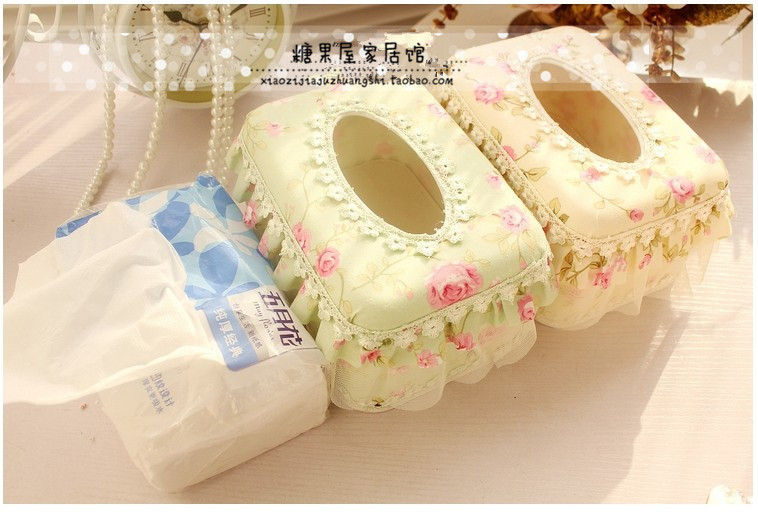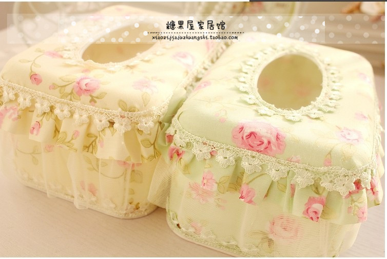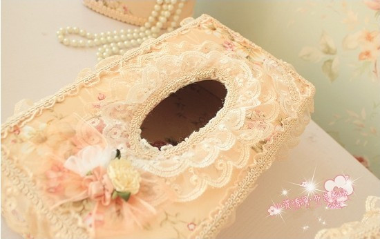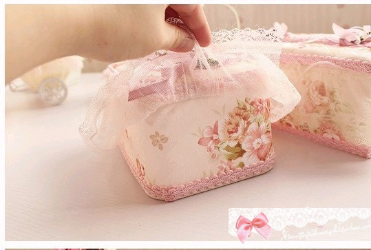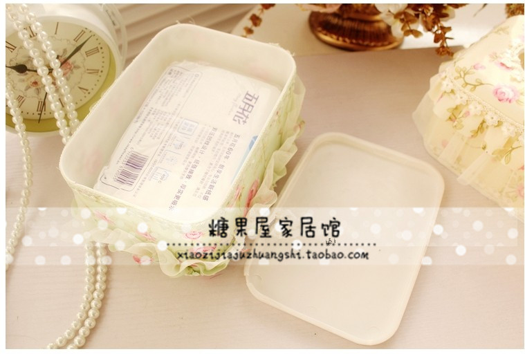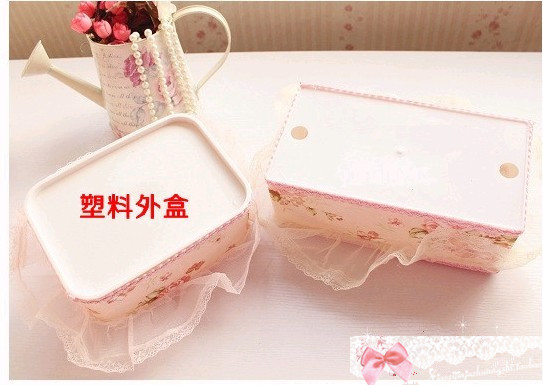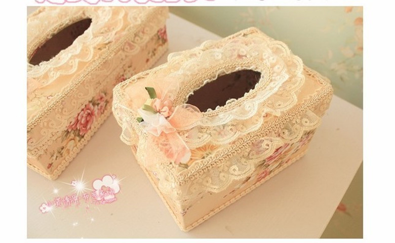 蕾絲布藝紙巾盒環保紙盒抽 抽紙盒 家居 車用田園風蕾絲邊1入