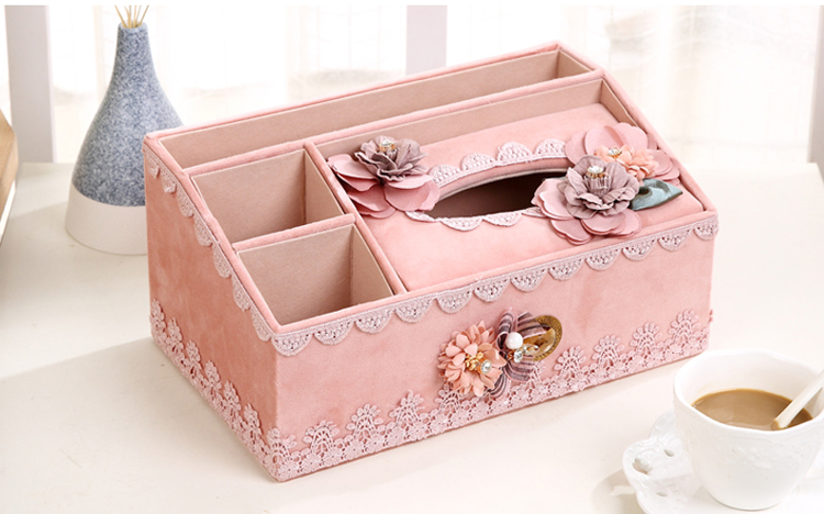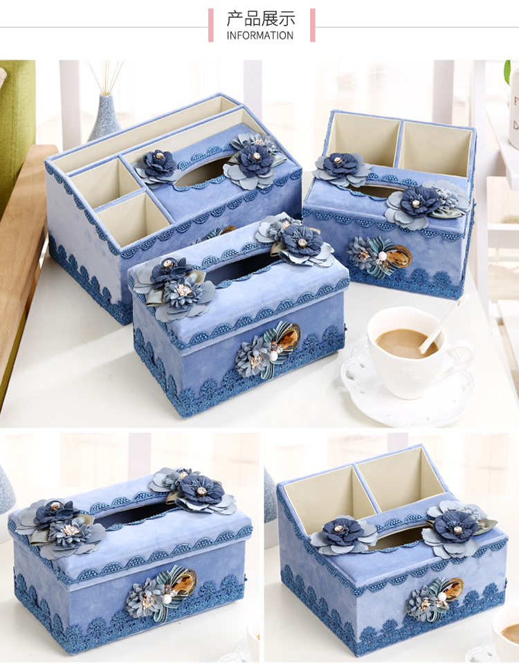 布藝多功能紙巾盒抽紙盒客廳茶幾歐式多用遙控器收納盒可愛紙抽盒1入