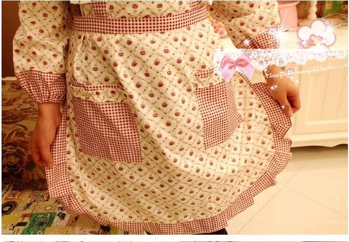 韓式純棉廚房圍裙 時尚可愛公主家居圍裙 雙層加厚圍裙罩衣1入