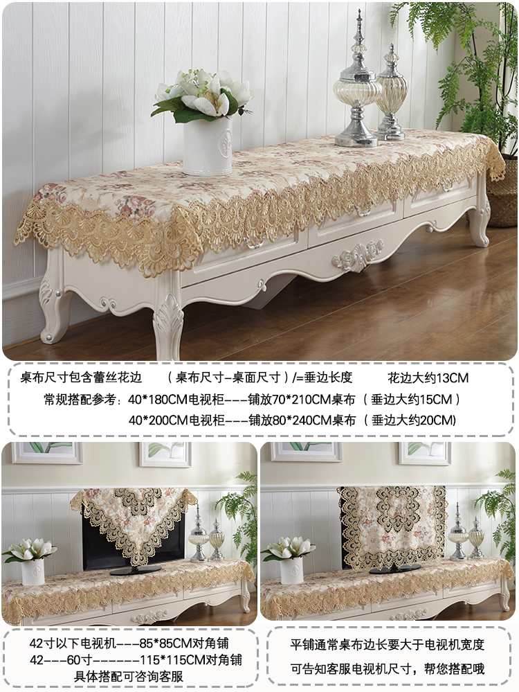 組合電視柜桌布布藝蕾絲長方形歐式電視機罩客廳家用茶幾布臺蓋布1入